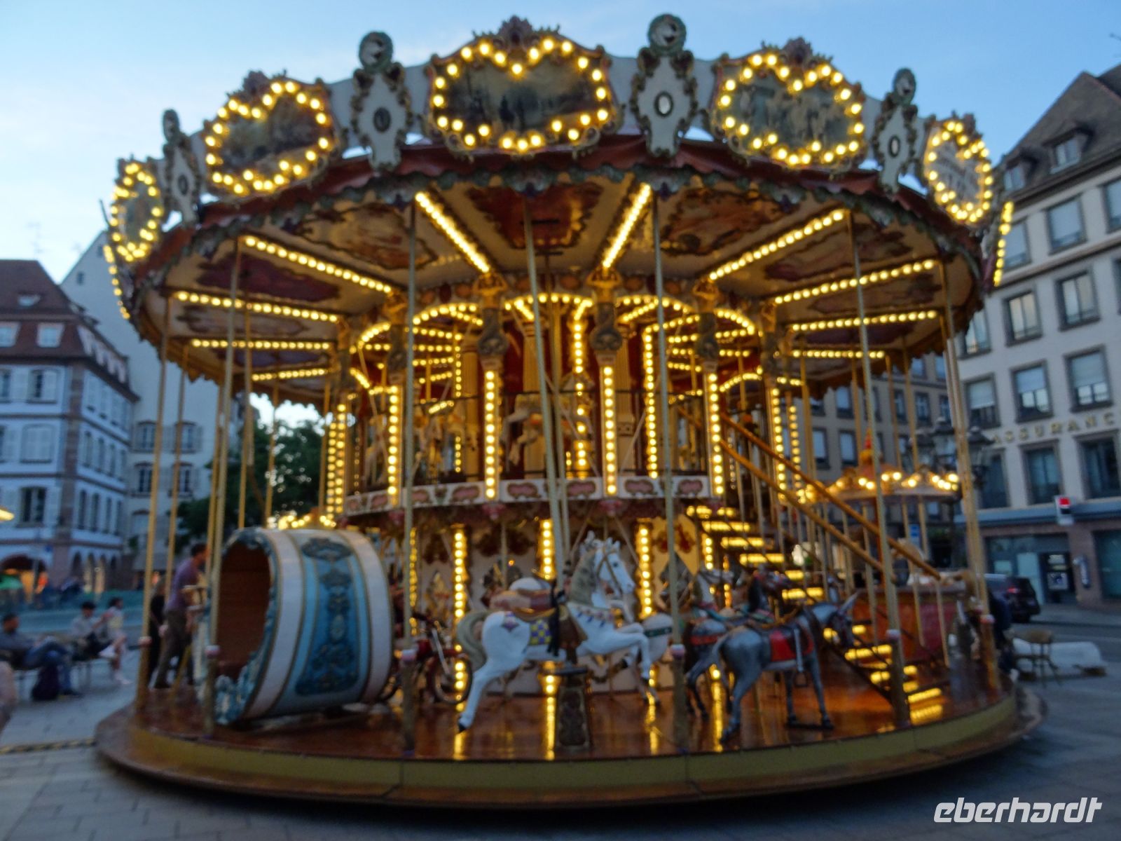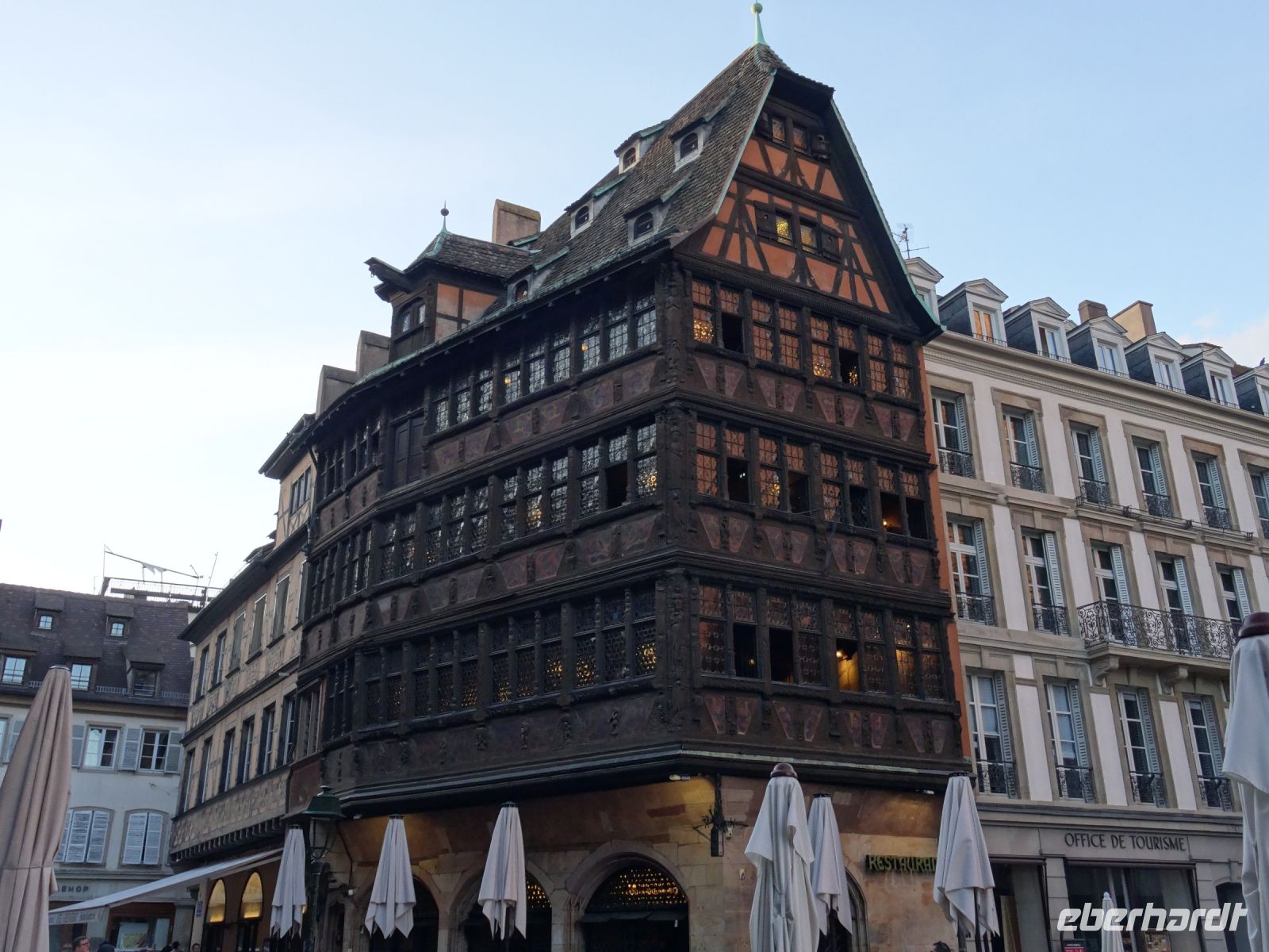 Nachdem wir uns auf den Zimmern frisch gemacht hatten, erwartete uns ein leckeres Drei-Gänge-Menü im Restaurant des Hotels. Um nach der langen Busfahrt sich noch etwas die "Füße zu vertreten", spazierten wir im Anschluss über den zentralen Kleberplatz, vorbei am Haus Kammerzell mit seiner verzückenden Schnitzkunst hin zum Münsterplatz mit dessen gigantischen Kathedrale sowie dem Palais Rohan.