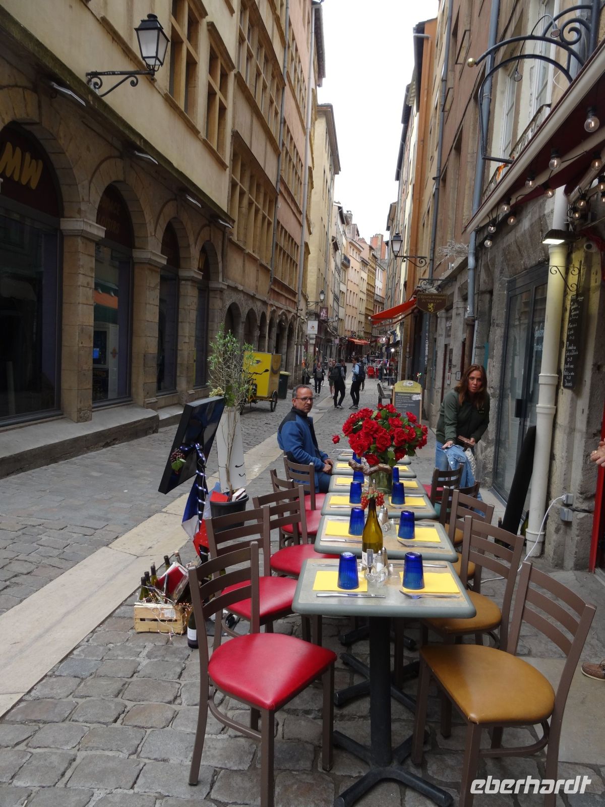 Im weiteren Verlauf gelangten wir zur Altstadt "Vieux-Lyon". In dieser ist ein Gang durch die "Traboules" ein "Muss". Diese Mischung des heutigen Alltages und der jahrhundertalten Architektur machen den Reiz dieser verwinkelten "Hausflure" aus. Sie verbinden gegenüberliegende Straßenzüge miteinander, teilweise auch über verschiedene Ebenen. Besonders sehenswert sind die tollen Treppenhauskonstruktionen. Früher waren sie die schnellsten Transportwege zwischen den einzelnen Seiden-Manufakturen und den Händlern. Um diese wunderschönen Flure zu besichtigen, benötigt man heute vielerorts einen Code. So schützen sich die Bewohner vor zu "lästigen Touristen".