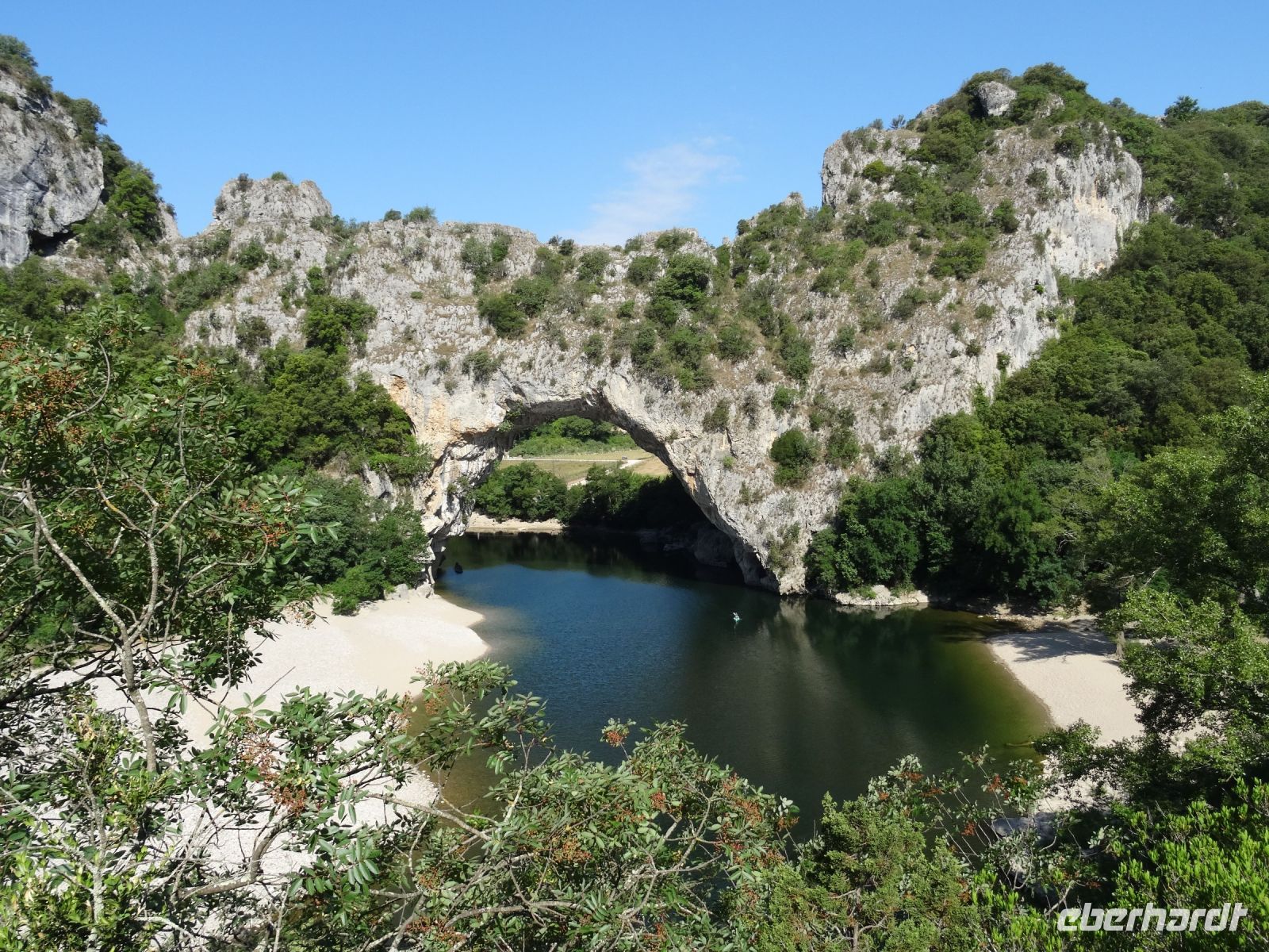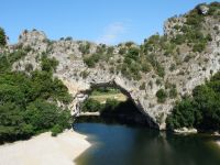 Auf der Panoramastraße fuhren wir dann an der Ardeche entlang mit traumhaften Ausblicken. Am Naturwunder, dem 32 Meter hohen natürlichem Brückenbogen "Pont d' Arc" hielten wir an. Einfach nur märchenhaft, was die Natur alles so schuf. Das Klicken der Kameras und Handys wollte kein Ende nehmen.