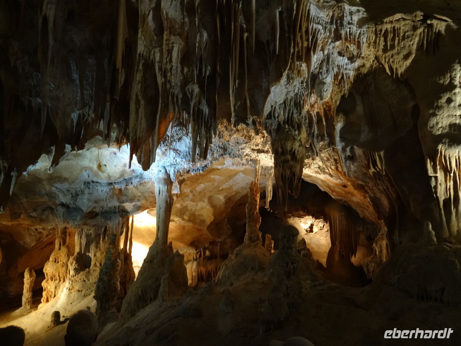 Weiter ging es zur "Grotte de la Madeleine". Mutig stiegen wir die 174 ungleichmäßigen Stufen bei hoher Luftfeuchtigkeit 40 Meter tief hinab ins Innere der Grotte und bekamen als Belohnung eine kleine Musik-und Lichtershow.