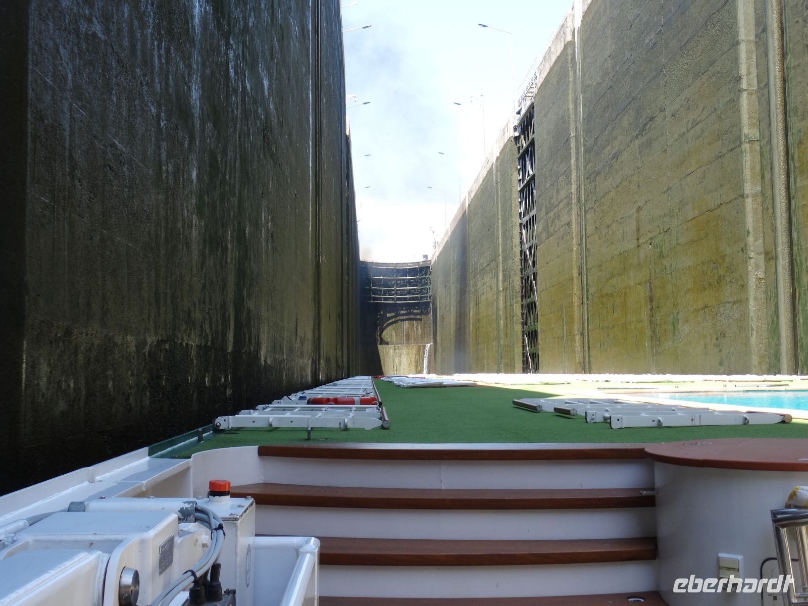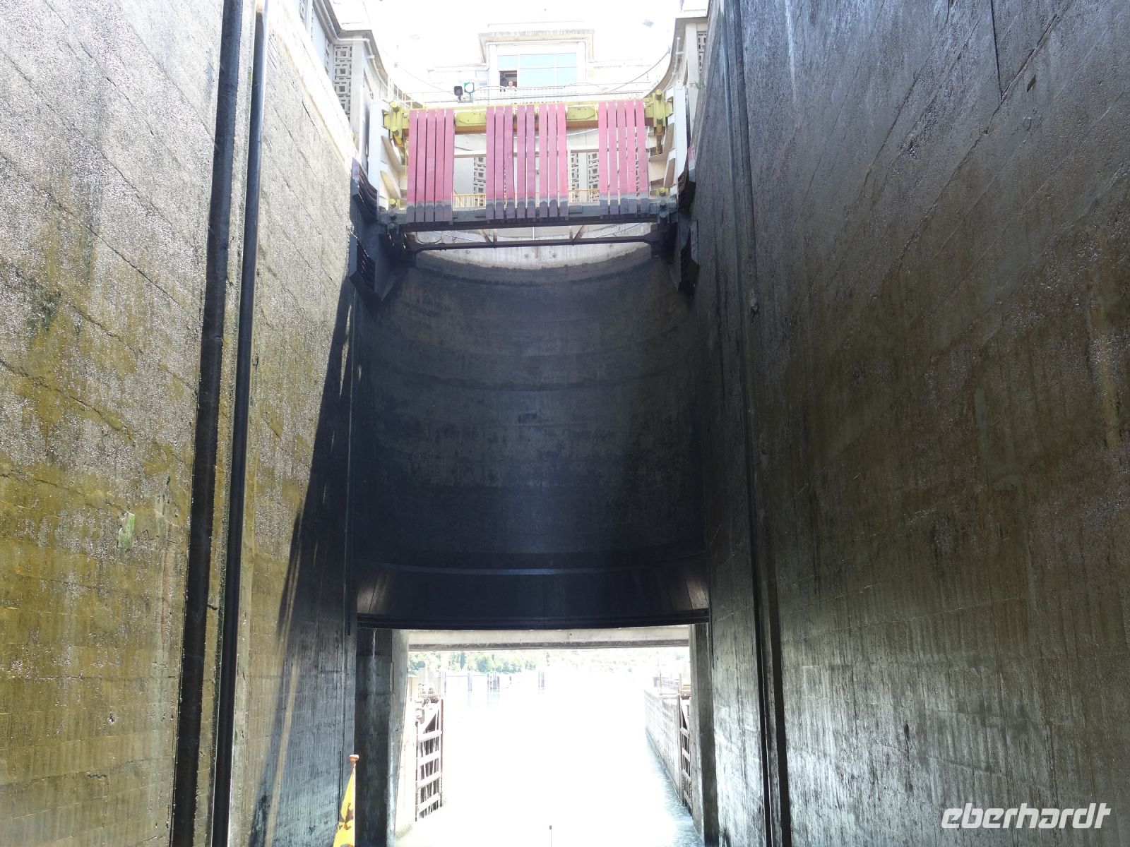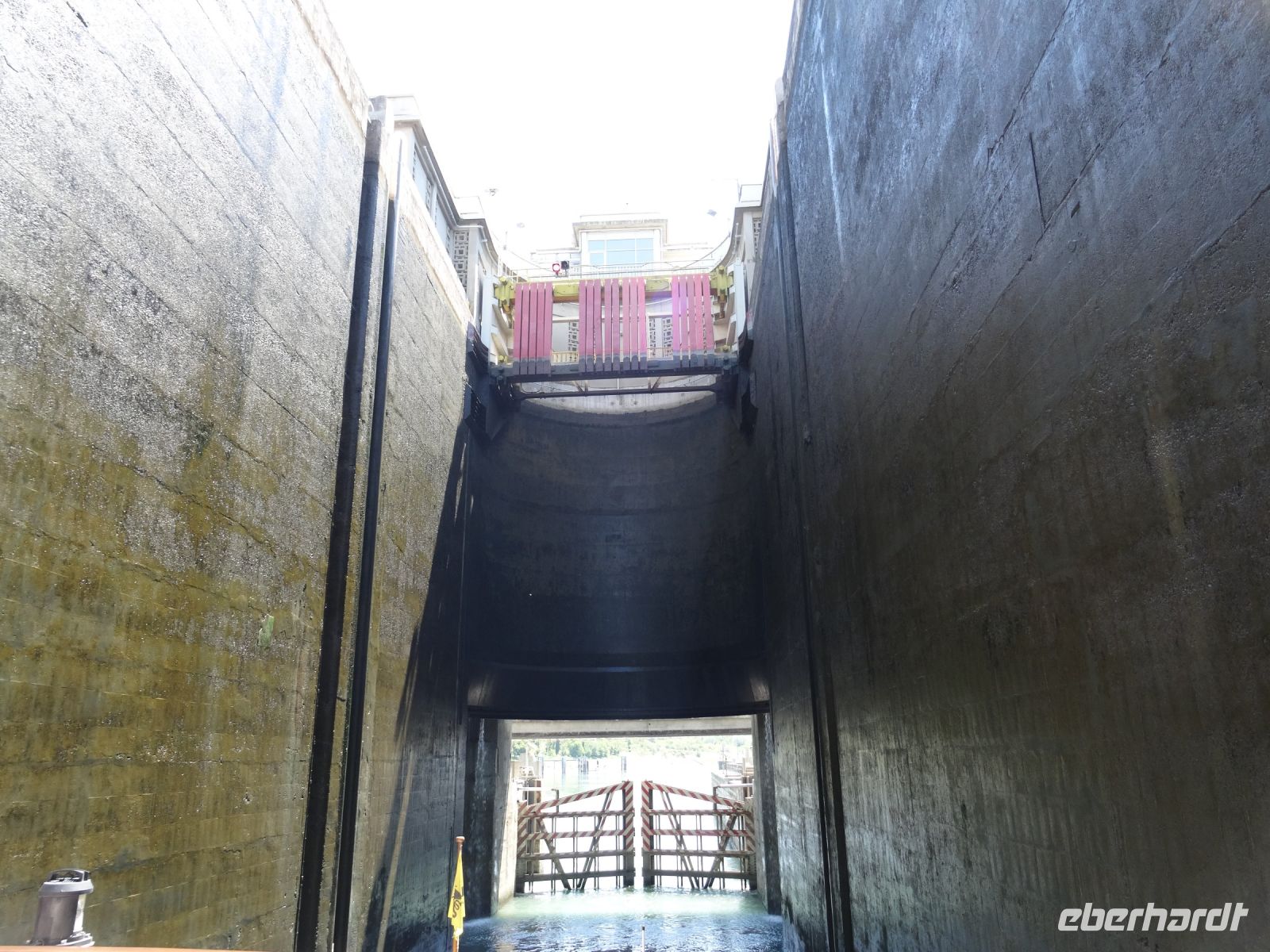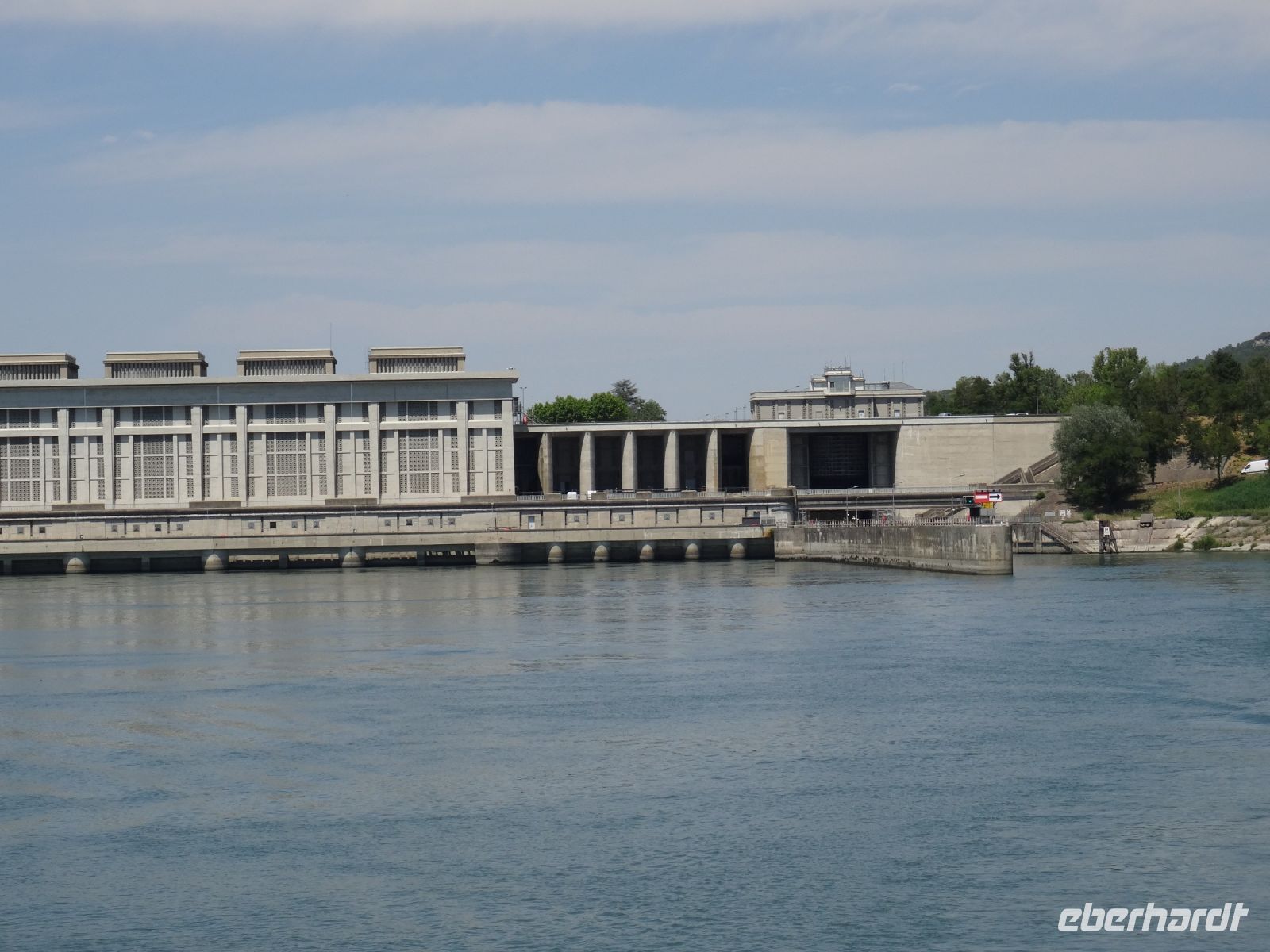 Am Stromkilometer 189 durchfuhren wir die Schleuse "Bollen" mit der größten Senktiefe von 23 Meter auf der Rhone.