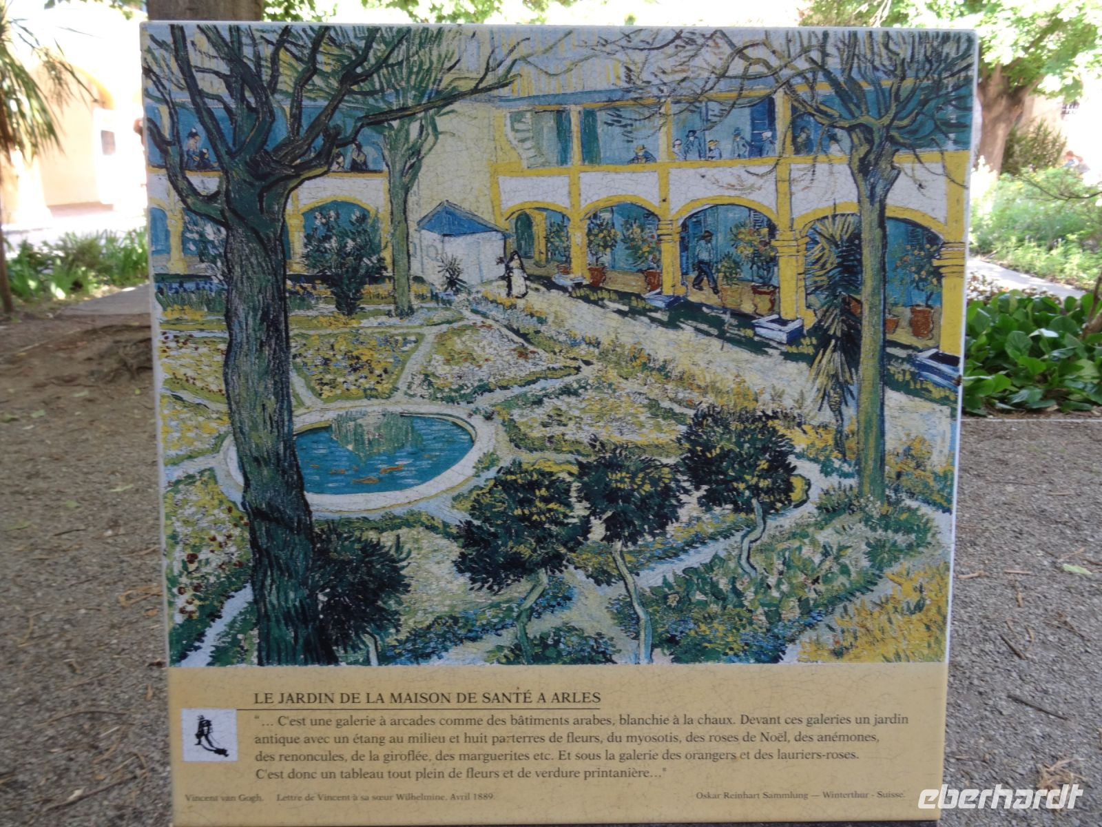 Nichts geht in Arles ohne Vincent van Gogh, welcher hier so eine Art zweite Heimat gefunden hatte. Die Stadt verehrt ihm u.a. damit, dass sie überall, wo der Maler seine Staffelei aufgestellt und gemalt hatte, Markierungen im Fußweg schuf.