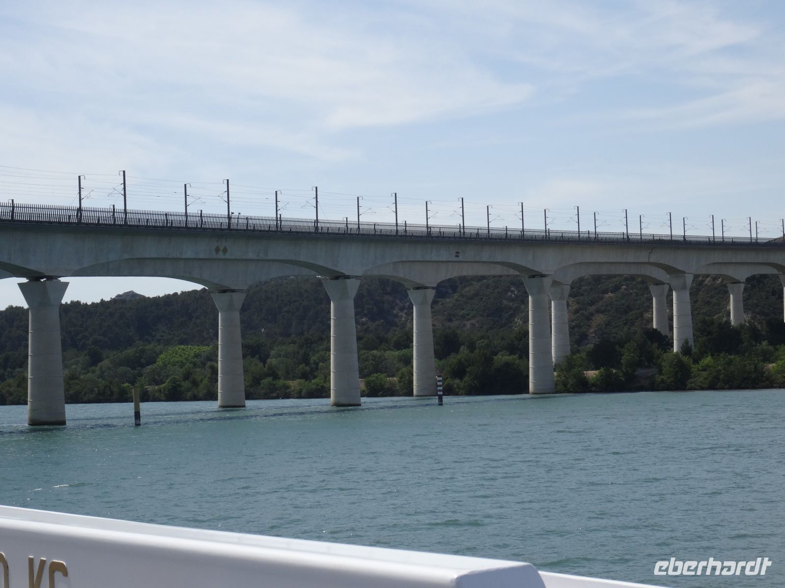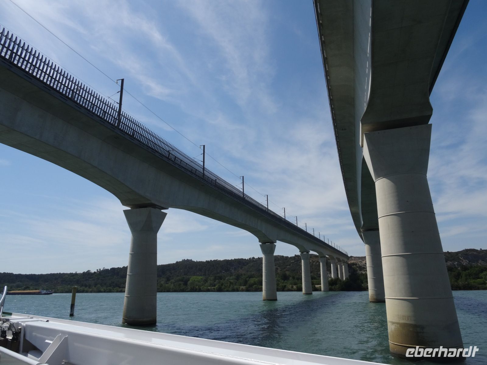 Den Reiz einer Flusskreuzfahrt -die langsam dahin fließenden Landschaften in aller Ruhe bei einem Glas Wein zu genießen- war ein wenig eingeschränkt. Das herrliche Kaiserwetter animierte den Mistral (der für die Region typische vorherrschende kalte Wind) mit hoher Geschwindigkeit durch das Rhone-Tal zu sausen und auch auf unseren Sonnendeck ein kleine Besuch abzustatten.