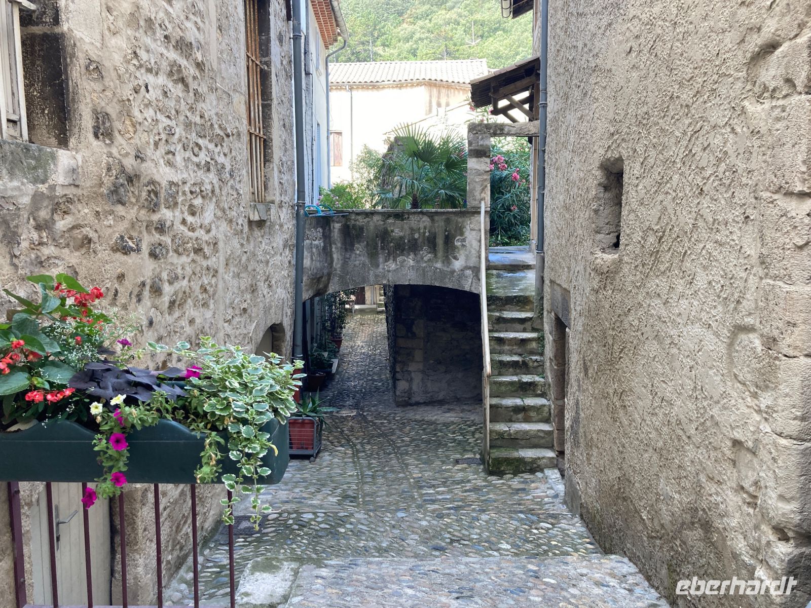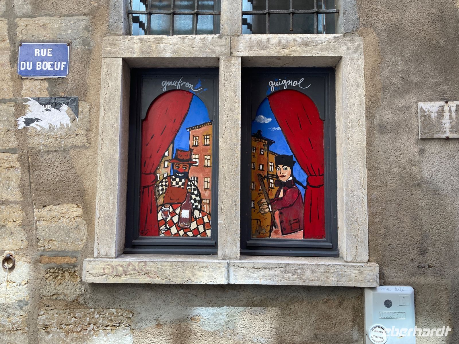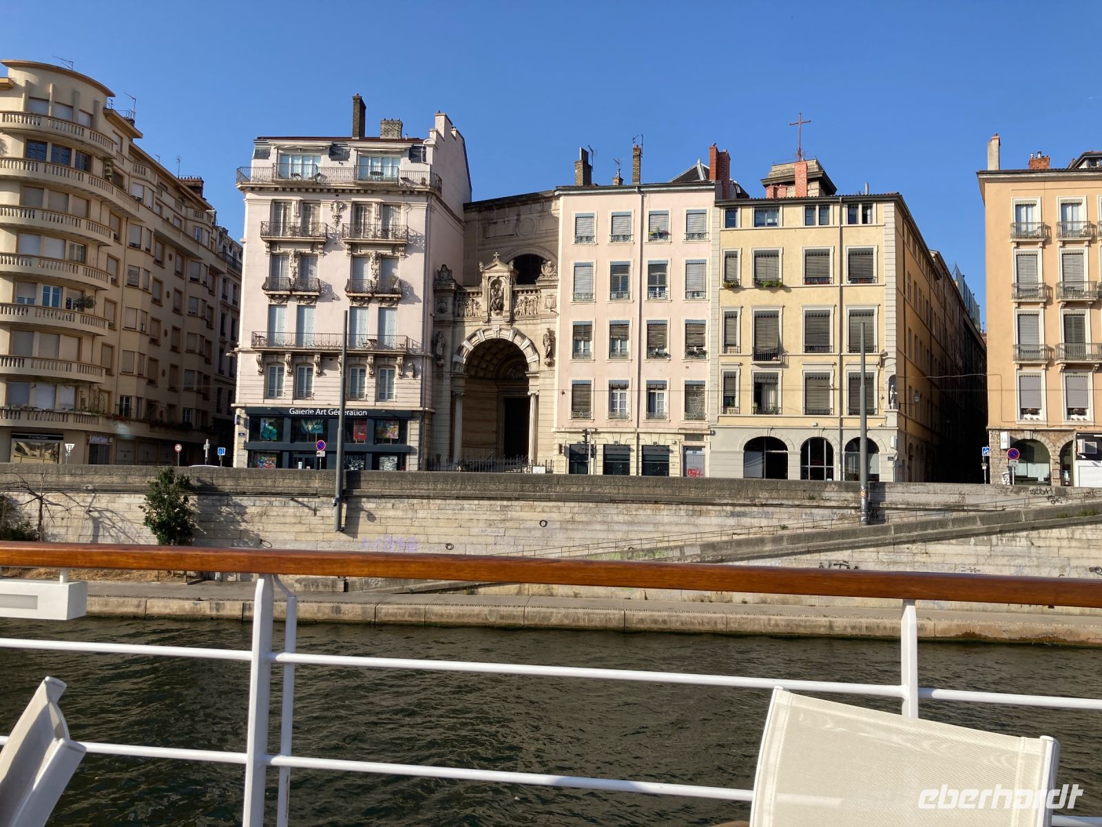 Zum Anschluss geht es nun noch zur Altstadt hinunter. Zahlreiche Restaurants warten hier auf ihre Gäste. Der Bouchon Lyonnais weist den Weg zu einer traditionellen Küche. Den Abschluss unseres Rundganges bildet eine Tür. Von außen ein Eingang zu einem Privathaus. Aber dieses Haus ist vielmehr. Es gehört zu jenen Häusern, die durch einen Verbund von Durchgängen verbunden sind, um so schnell einen regenfreien Weg vom Fluss zu den Händlern zu schaffen. Traboules heißen diese Durchgänge. In Lyon soll es 500 von diesen Durchgängen geben. Wir haben tatsächlich das Ufer erreicht, wo unser Bus wartet. Zurück geht es zum Schiff, das am Nachmittag Kurs in die Provence nimmt.