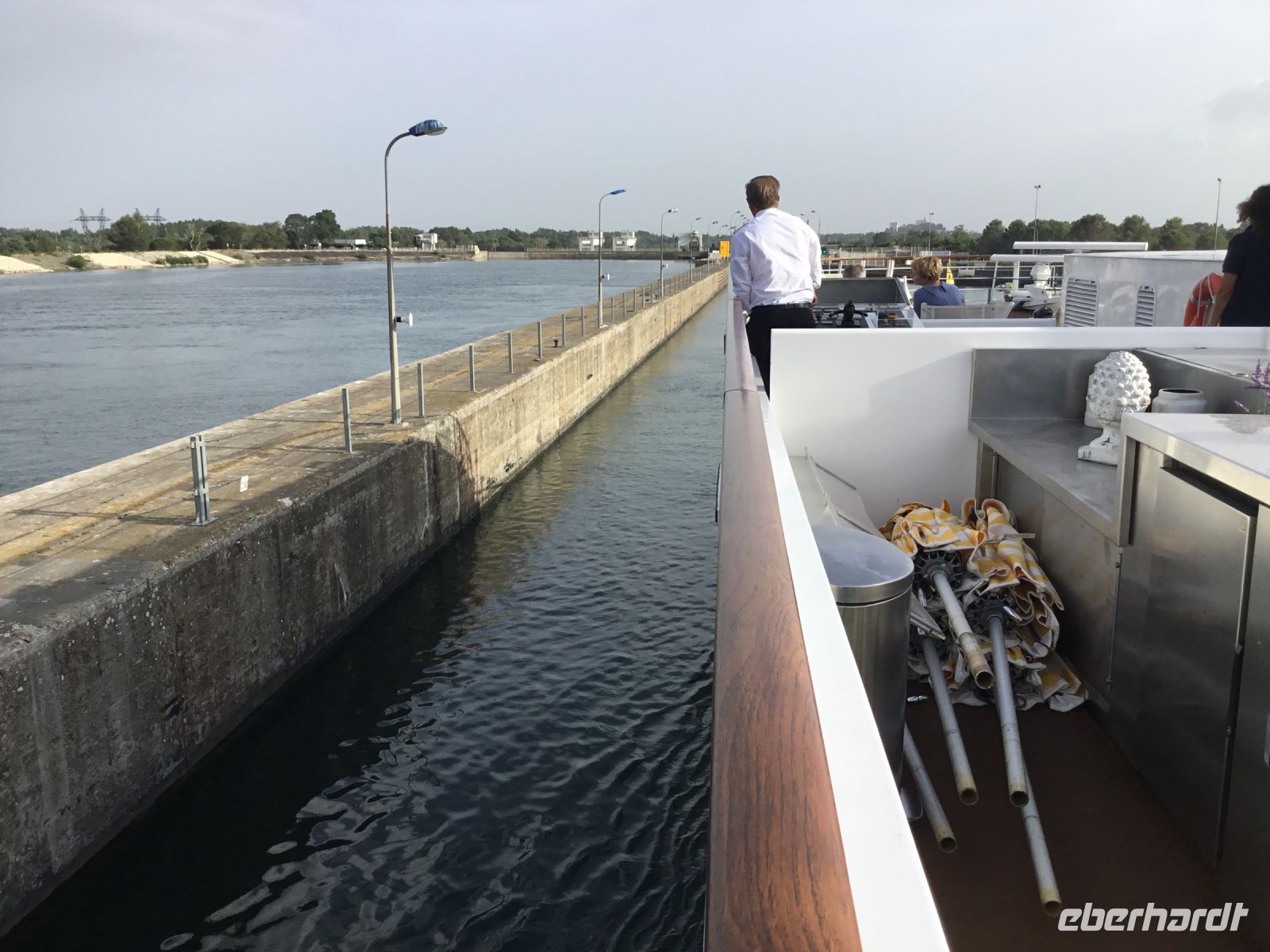 Es wird wieder ein heißer Tag! Um 8 Uhr werden wir Lyon in Richtung Norden verlassen. Wir reisen bis Straßburg, wo unsere geplante Nachmittagstour mit dem Boot leider wegen Verspätung auf den Abend verlegt werden muss. Immerhin, sie findet statt! Wir gehen zu Fuß an der Kathedrale vorbei und erreichen unser Restaurant, wo wir ein leckeres und üppiges Abendessen genießen. Mit wenigen Schritten erreichen wir dann unser Boot und erleben die Hauptstadt des Elsass von der Wasserseite aus. Damit wir nicht im Hinblick auf die Schleusen aus der Übung kommen, haben wir auch hier gleich zwei.
