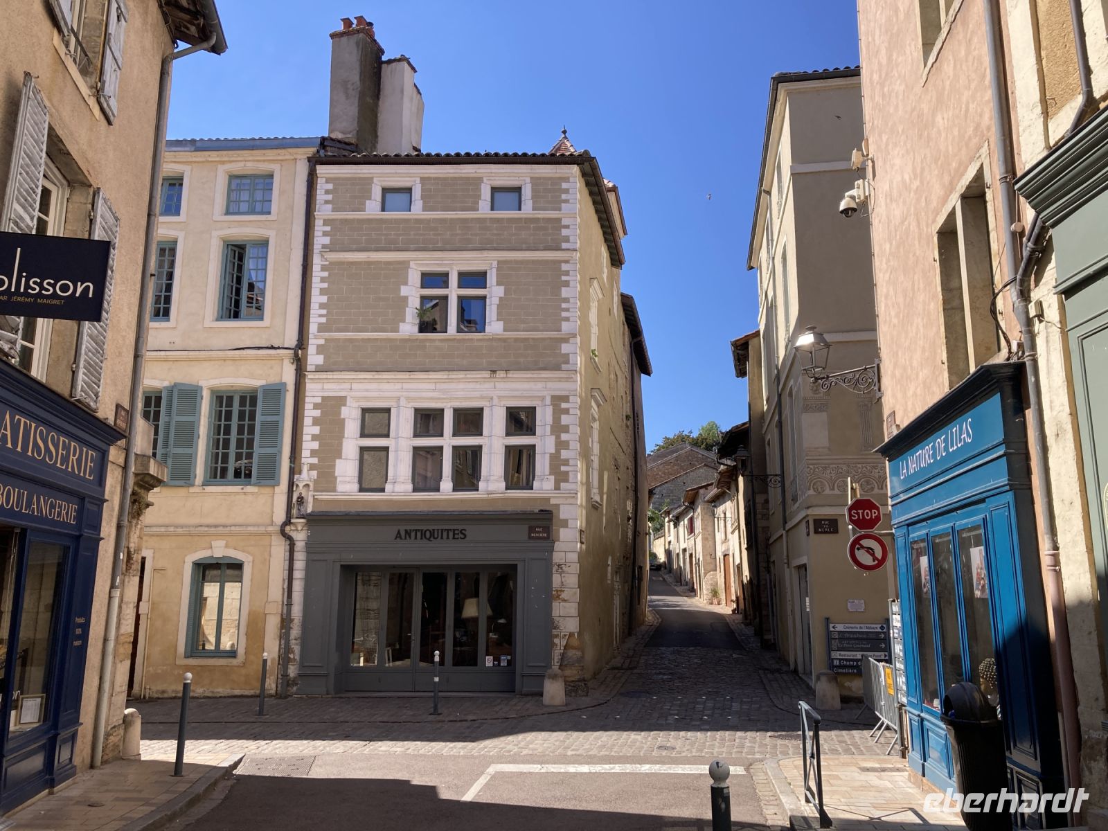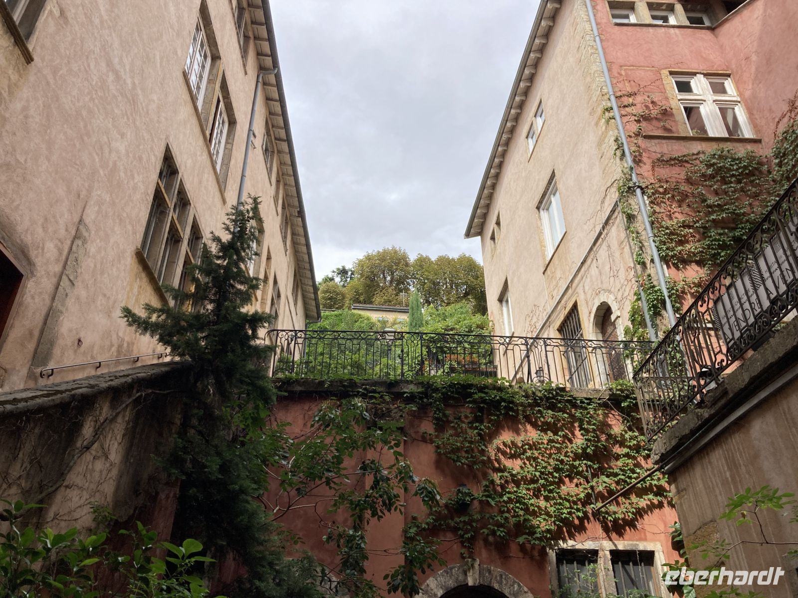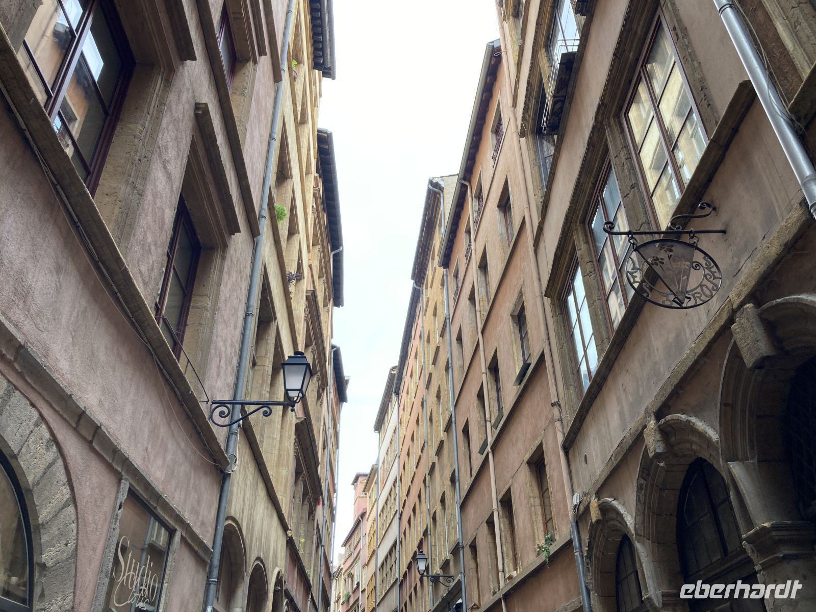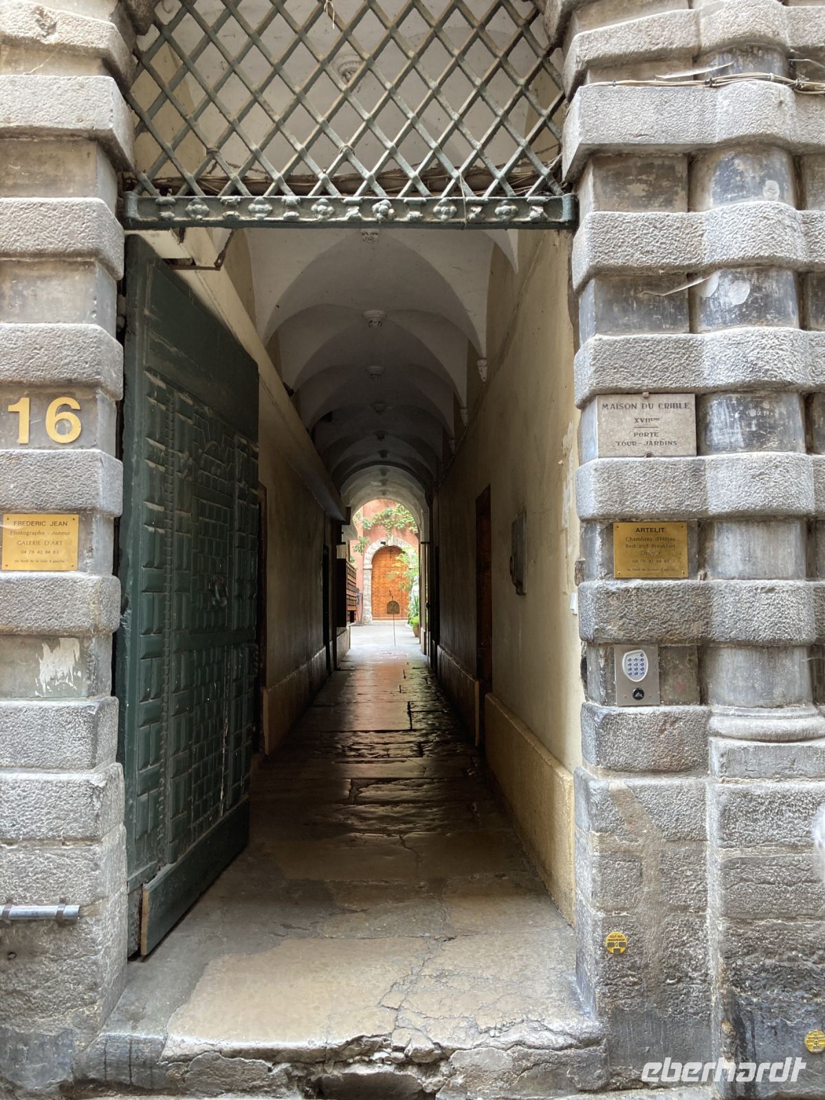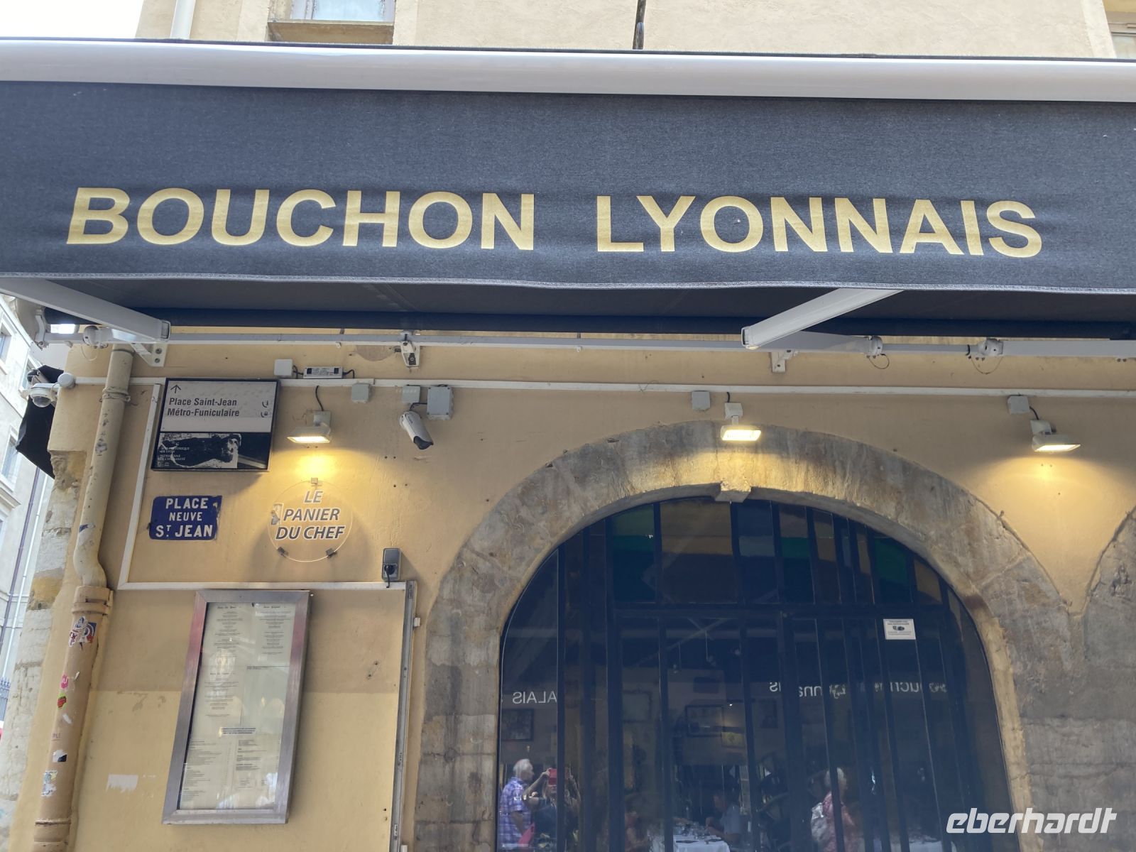 Zum Anschluss geht es noch zur Altstadt hinunter. Zahlreiche Restaurants warten hier auf ihre Gäste. Der Bouchon Lyonnais weist den Weg zu einer traditionellen Küche. Den Abschluss unseres Rundganges bildet eine Tür. Von außen ein Eingang zu einem Privathaus. Aber dieses Haus ist vielmehr. Es gehört zu jenen Häusern, die durch eine Vielzahl von Durchgängen verbunden sind, um so schnell einen regenfreien Weg vom Fluss zu den Händlern und Werkstätten zu schaffen. Traboules heißen diese Durchgänge. In Lyon soll es 500 von diesen Durchgängen geben. Wir haben tatsächlich das Ufer erreicht, wo unser Bus wartet. Zurück geht es zum Schiff. Mit unserem Mittagessen treten wir nun den Weg gen Süden an. Auf in die Provence!