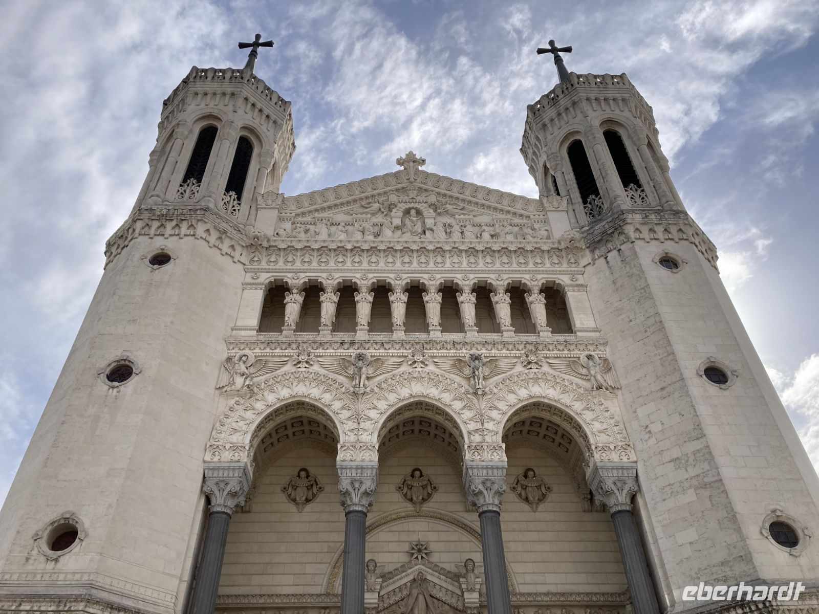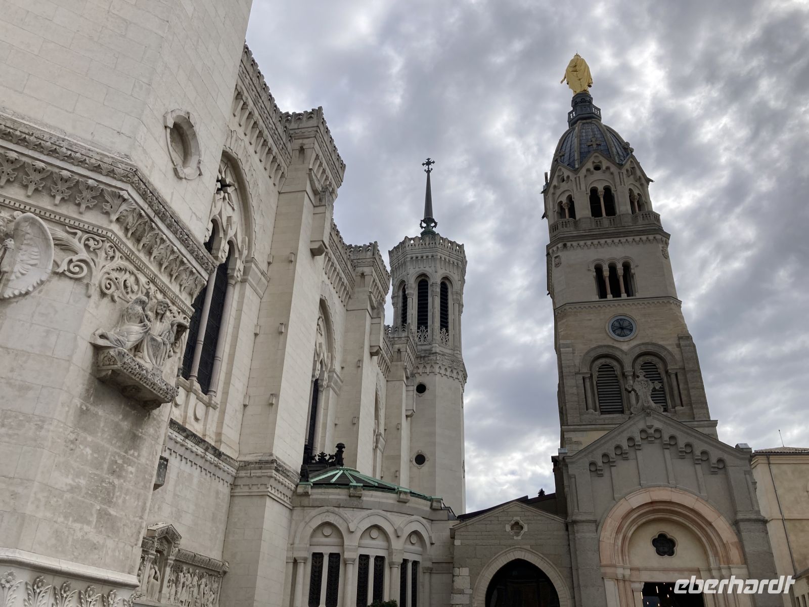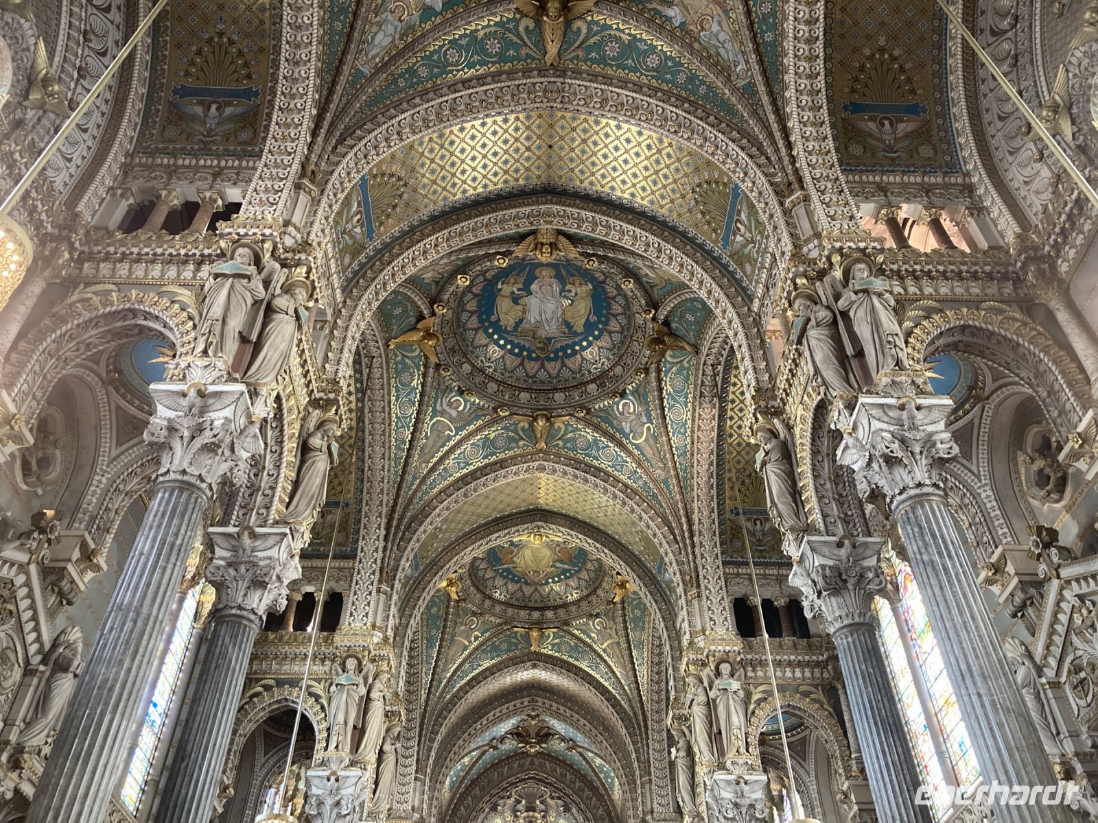 Am Morgen hat die Luna wieder Lyon Confluence angelegt und wir starten unsere Stadterkundung. Zunächst geht es im Bus zur Markthalle, die den Namen des großen Kochs und Sohnes der Stadt Paul Bocuse trägt. Zugegeben, das Warenangebot ist äußerst verlockend. Aber so kurz nach dem Frühstück schon wieder essen? Bekanntlich kommt der Appetit ja mit dem Essen und so werden die Proben der unterschiedlichen Hartwürste und Käsesorten doch gerne probiert. Natürlich darf auch ein Gläschen Roter nicht fehlen. Nach diesem Gaumenschmaus steht nun Stadthistorie auf dem Programm. Um sich einen besseren Überblick über Lyon zu verschaffen geht es hinauf zur Notre-Dame de Fourvière. Diese Wallfahrtskirche ist das Wahrzeichen von Lyon, obwohl sie noch gar nicht so alt ist. Erbaut wurde sie ab 1872, um schließlich 1896 geweiht zu werden. Trotz ihres kirchengeschichtlich jungen Alters, hat sie sogar den Besuch eines Papstes zu melden.