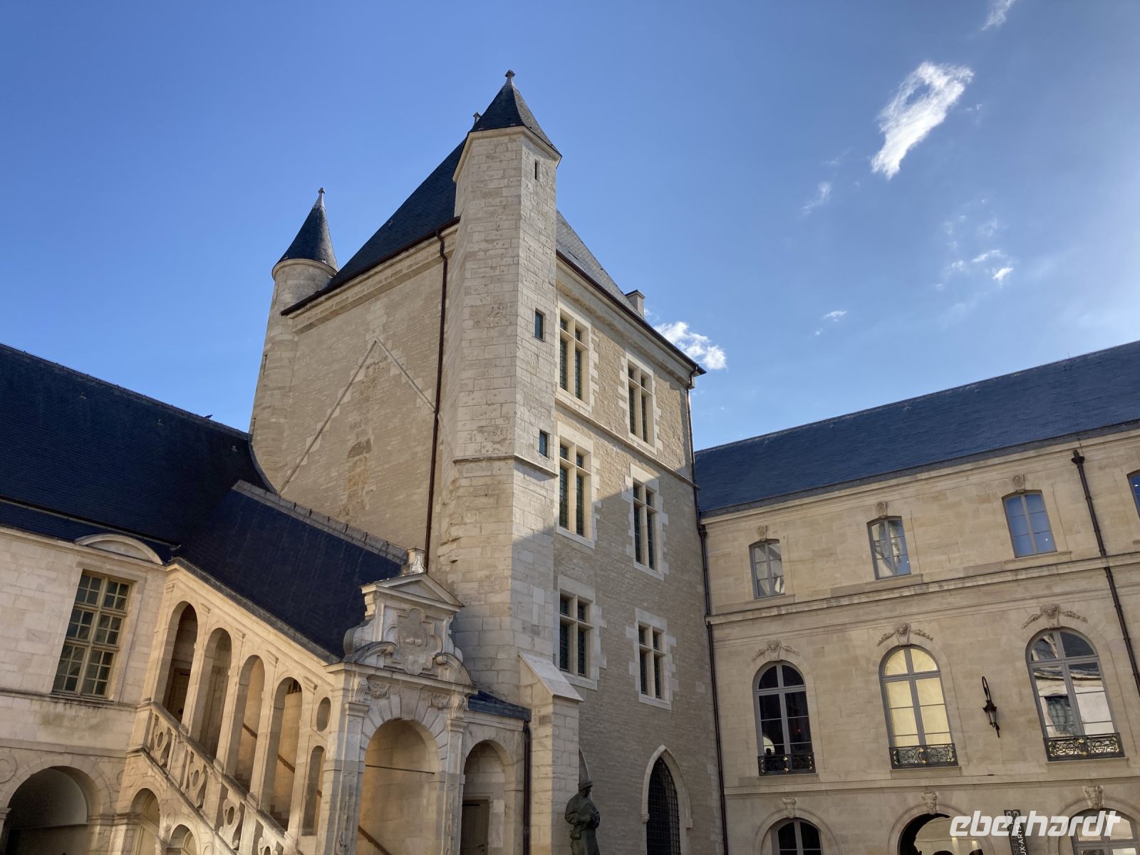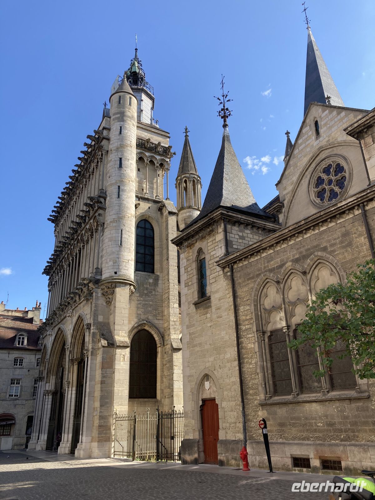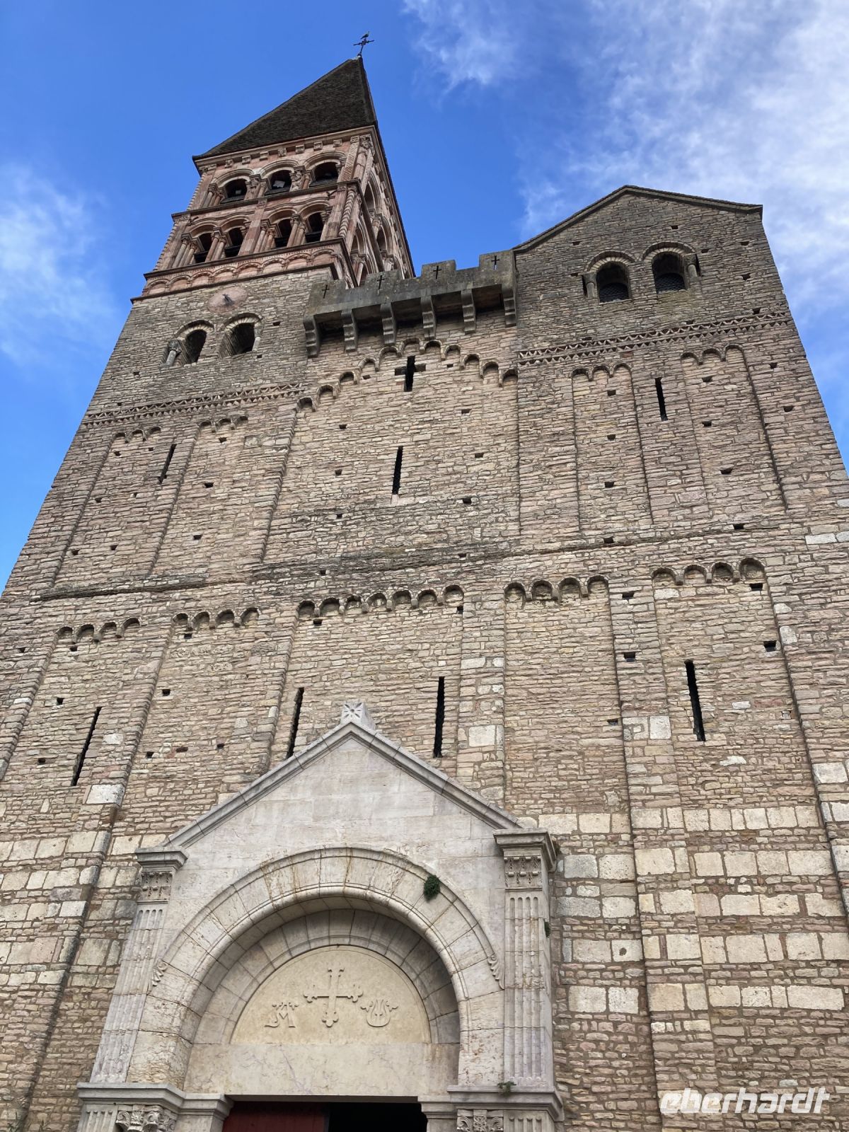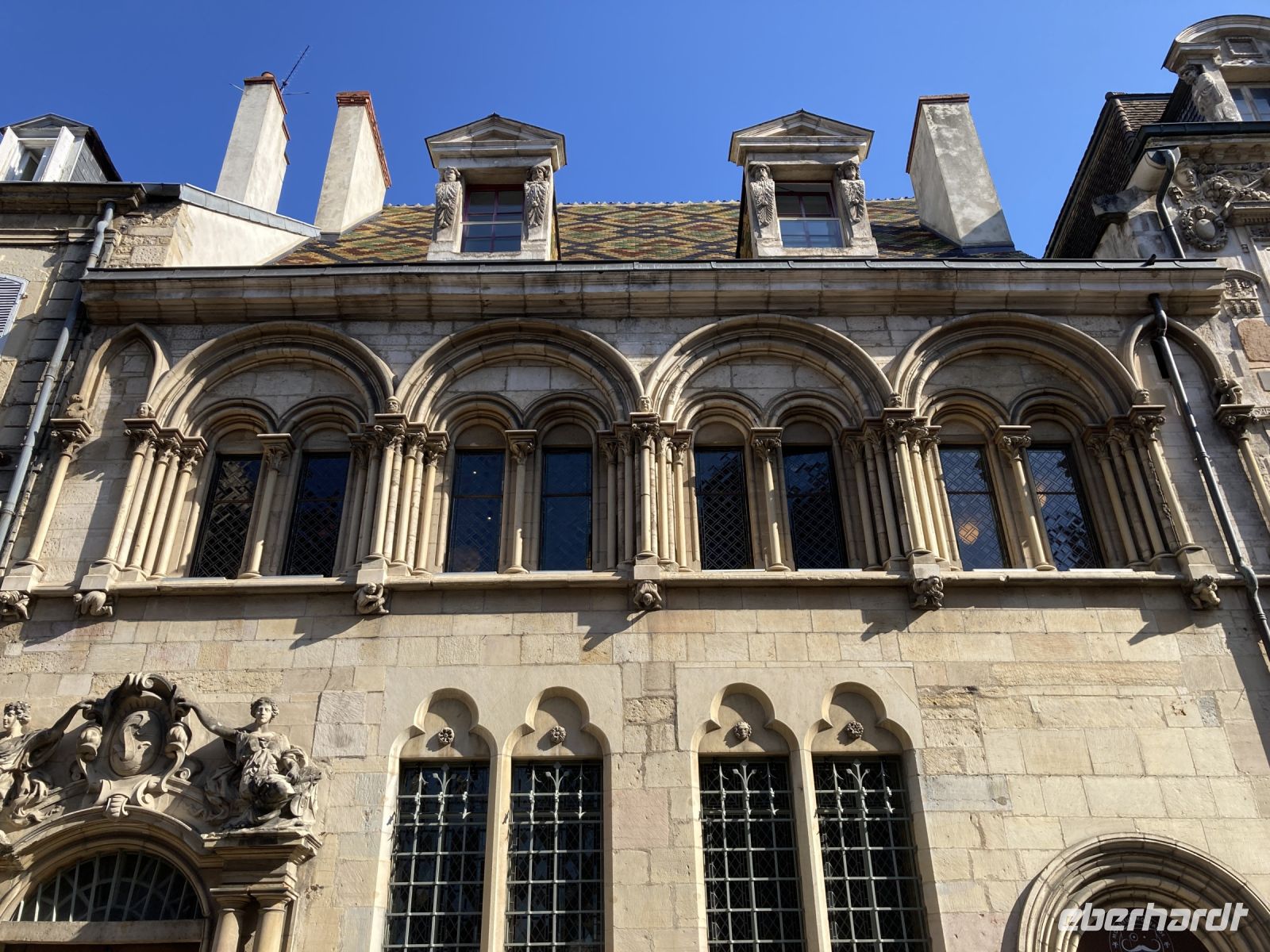 Eigentlich würde ein Rundgang durch diese Stadt auch lohnen. Immerhin wurde hier die Fotografie erfunden und die bunten Fachwerkhäuser sind eine Augenweide. Die meisten Gäste lockt jedoch die Hauptstadt des Burgunds: Dijon. Nach einer Stunde Busfahrt erreichen wir diese schöne Stadt, in der man eigentlich viel mehr Zeit haben möchte. Zumal heute am Montagvormittag auch noch die meisten Geschäfte geschlossen! Das diese Stadt einst zu den Machtzentren gehörte, zeigt sich in ihren Bauwerken. Einst lenkten hier die mächtigen Herzöge des Burgunds die Geschicke nicht nur dieser Region. Immerhin waren sie zeitweise reicher und damit eben auch mächtiger als die französische Krone. Am Nachmittag steht ein weiterer Höhepunkt auf dem Programm: Beaune. Hier lässt sich nicht nur in den zahlreichen Kellereien der herrliche Wein verkosten. Beaune bietet mit dem Hôtel-Dieu ein kulturelles Erbe ersten Ranges. Dieses Krankenhaus wurde im Jahre 1443 gegründet. Die Stifter Nicolas Rolin und seine Frau Guigone de Salins beschlossen für ihr eigenes Seelenheil etwas zu tun und ließen das Gebäude errichten. Doch damit nicht genug. Das Hospital wurde noch mit einer stattlichen jährlichen Rente versehen. Für die damalige Zeit war die Einrichtung visionär und heute erfreuen wir uns an der Architektur mit dem bunten Ziegeldach sowie an dem prachtvollen Flügelaltar von Rogier van der Weyden. In der Zwischenzeit verlässt das Schiff Chalons-sur Saône und fährt nun schon ein Stück flussabwärts bis Tournus, wo eine mächtige Benediktinerabtei thront. Da wir noch ein wenig Zeit haben, bis die Ausflügler zurückkehren, machen wir einen kleinen Rundgang durch den Ort. Gegen 18 Uhr kommen die Ausflügler wieder an Bord und wir setzen unsere Fahrt in Richtung Lyon fort.