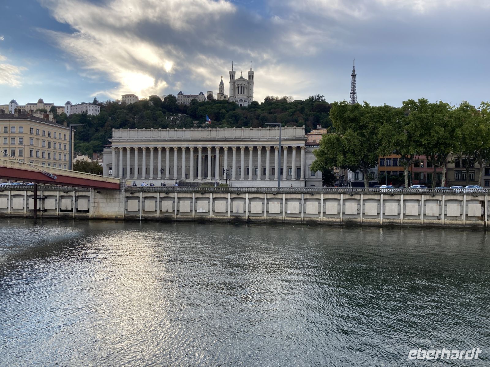 Wir verabschieden uns gegen acht Uhr zwar aus Strasbourg, aber tun es mit einem lachenden Auge. Schließlich kommen wir ja in einer Woche wieder. Wir nehmen Kurs gen Süden, passieren das kleinste Département Frankreichs Belfort, wo uns einer der ersten TGVs begrüßt und reisen durch die weniger bekannte Franche-Comté. Der Sommer macht eine kleine Pause und bringt heute den langersehnten Regen. Wir erreichen Lyon pünktlichst, müssen dann doch zum anderen Anleger und quälen uns durch den Verkehr der Großstadt. Wir erreichen das Schiff bei einem heftigen Regenguss. Die meisten Gäste dürften wohl gehofft haben, dies möge sich nicht die ganze Reise durchziehen. Nachdem alle Passagiere an Bord sind, mit uns werden noch Individualgäste reisen, die per Flugzeug ankommen, legen wir dann am späten Nachmittag ab. Wir fahren flussaufwärts auf der Saône. Vorbei an den Sehenswürdigkeiten des alten Lyon führt uns der Kurs in Richtung Norden, ins schöne Burgund.