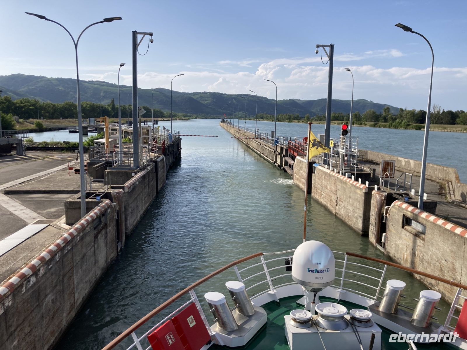 Am heutigen Vormittag ist es recht leer an Bord. Wo sind nur alle? Eine Erklärung ist schnell gefunden: Auf dem Wege zur Ardèche. Diese Region erfreut sich schon lange bei den Franzosen großer Beliebtheit. Die landschaftliche Schönheit und der Artenreichtum der Flora und Fauna konnten auch dadurch erhalten werden, dass dieses Gebiet als Naturreservoir klassifiziert wurde. Um diese Region zu erkunden zu können, wird ein Zwischenstopp in Viviers eingelegt. Unsere Ausflügler gehen von Bord und werden später wieder auf die Stella kommen, die ihre Fahrt in Richtung Lyon fortsetzt.