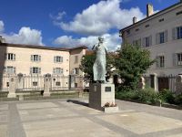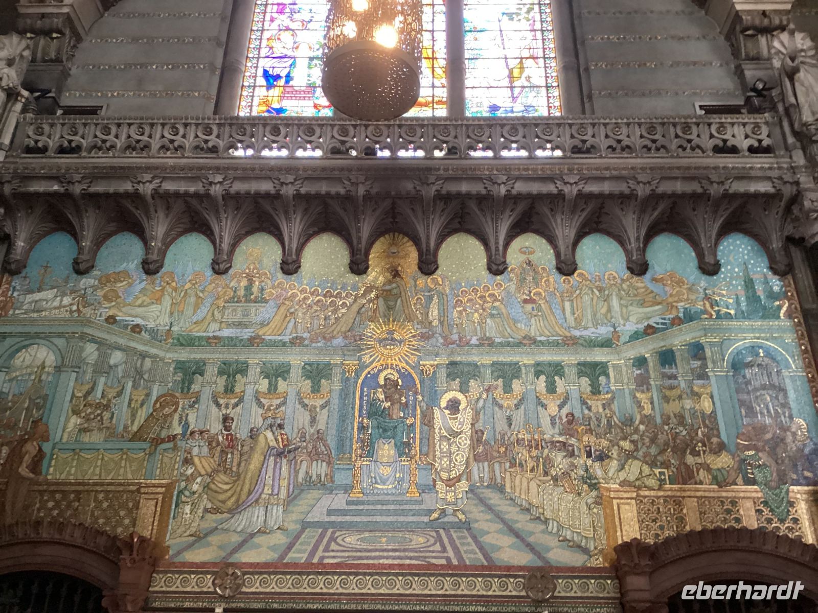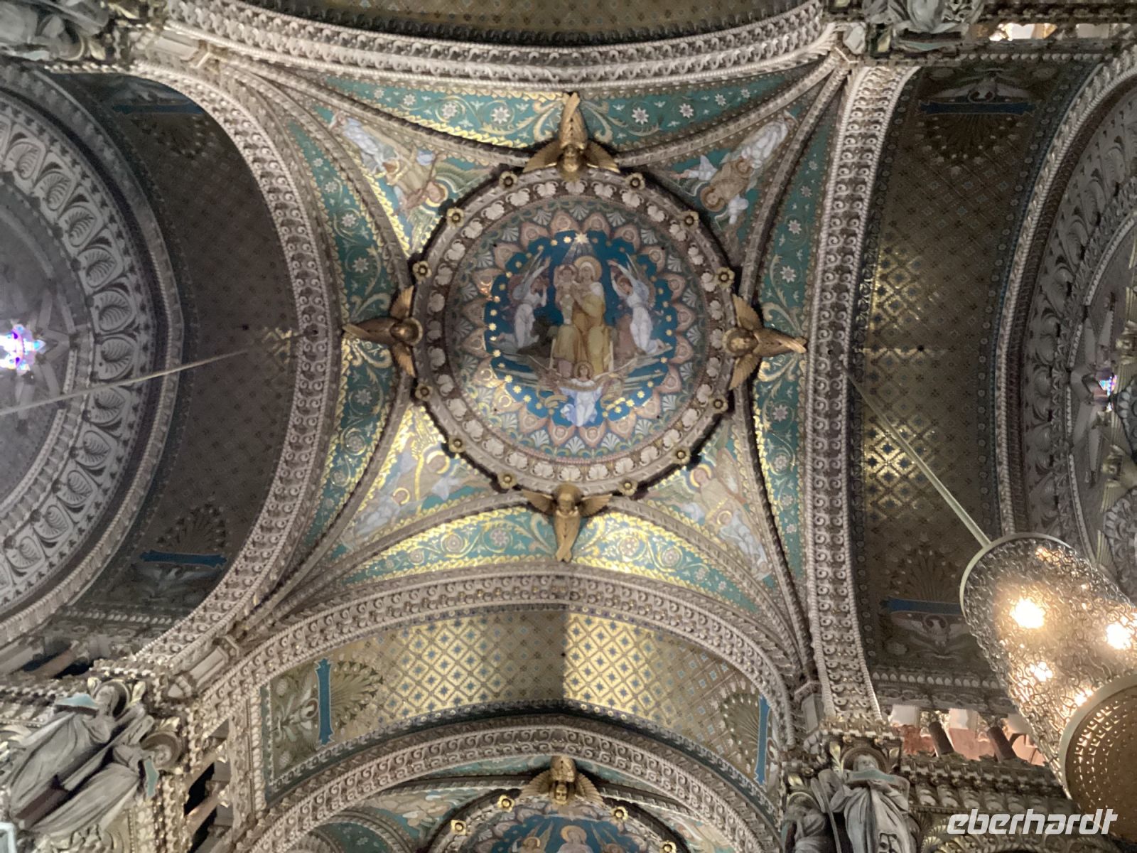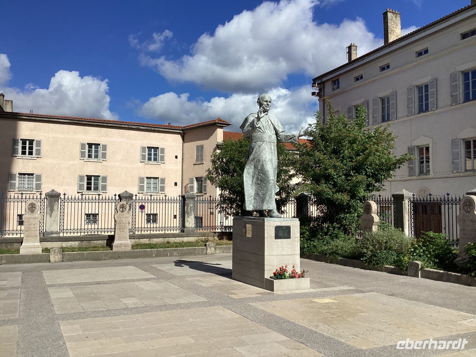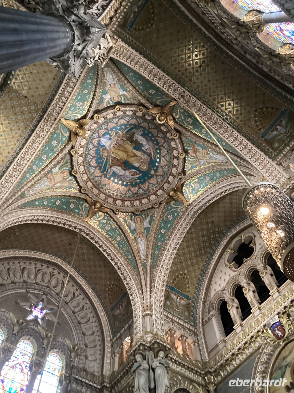 Nach dem Frühstück wollen wir Lyon erkunden. Mit Marseille ist Lyon im Wettstreit, wer nach Paris die meisten Einwohner hat. Tatsächlich führt noch die Marseille. Tatsache ist jedoch, dass auch Lyon zu den Städten in Frankreich zählt, die wachsen. Im Falle Lyons wundert es nicht. Gute Arbeitsplätze in der Medizintechnik und Pharmaindustrie, dazu viele Freizeitmöglichkeiten vom Skifahren bis zum Wassersport, sorgen für eine gute Lebensqualität. Und das in dieser Stadt Genuss großgeschrieben wird, ist nicht erst seit Paul Bocuse bekannt. Bevor wir uns jedoch dem Sohn dieser Stadt widmen, beschäftigen wir uns mit der Stadtgeschichte. Um sich einen besseren Überblick über Lyon zu verschaffen geht es hinauf zur Notre-Dame de Fourvière. Diese Wallfahrtskirche ist das Wahrzeichen von Lyon. Erbaut wurde sie ab 1872, um schließlich 1896 geweiht zu werden. Johannes Paul II. kam hierher und eine überlebensgroße Statue belegt dieses Ereignis.
