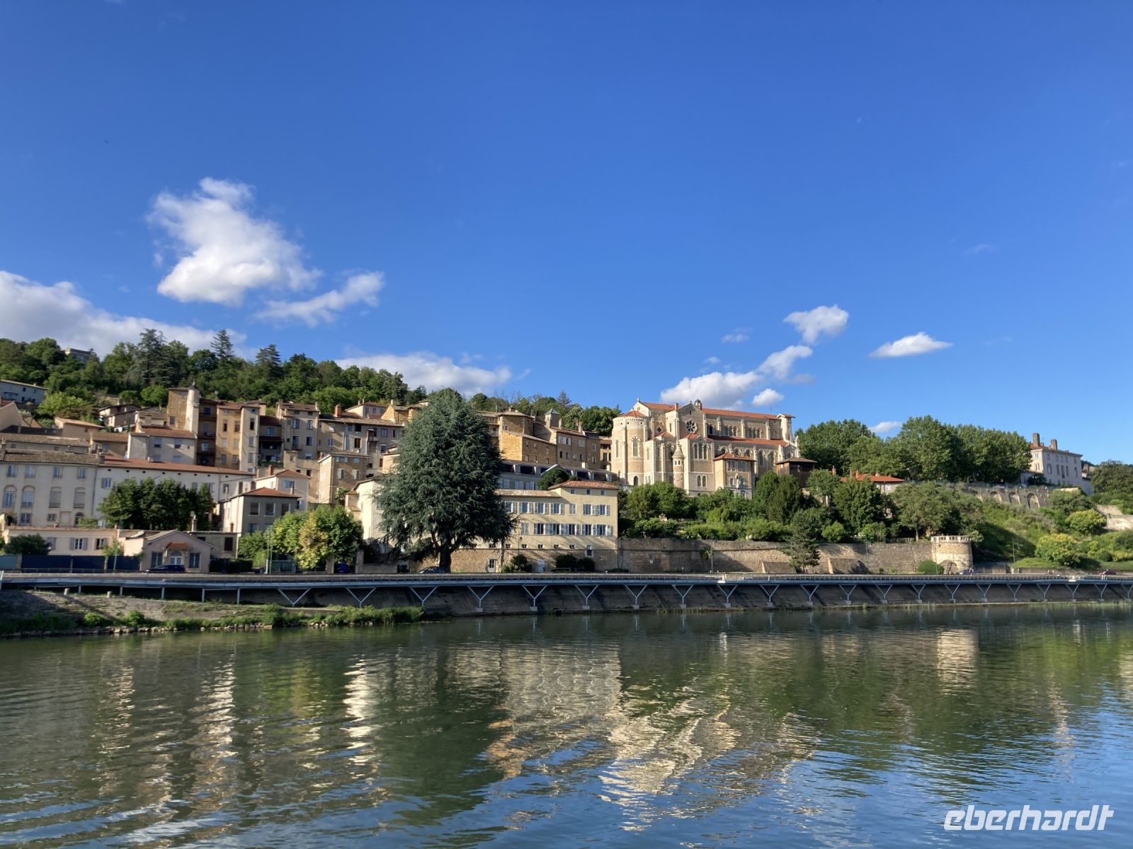 Für die Ausflügler steht steht der Vormittag im Zeichen der Abtei von Cluny. Bis zum Bau der Petersdom in Rom die größte Kirche der Christenheit. Heute können wir die Ausmaße dieses Bauwerkes nur noch erahnen. Ein 3-D-Film lässt jedoch das Gotteshaus vor unseren Augen wieder entstehen. Für den Nachmittag steht noch ein Ausflug in die Beaujolais-Region auf dem Programm. Für die an Bord verbleidenden Gäste geht es mit der Stella schon ein gutes Stück flussabwärts. In Trévoux kommen die Ausflügler vom Weinmuseum wieder auf das Schiff. Einige halten interessante Tüten in ihren Händen - der Beaujolais scheint Freundinnen und Freunde gefunden zu haben. Nun aber schnell weiter in Richtung Lyon, wo wir heute vor Anker gehen.
