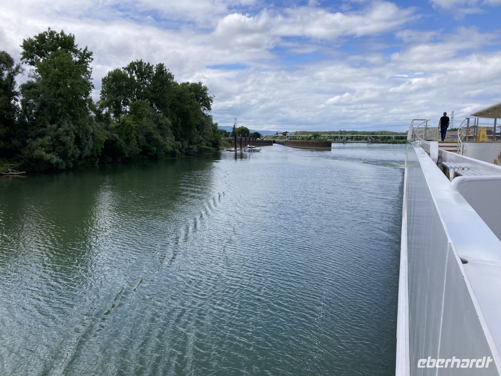Wir liegen wieder Quai Bernard und die Baustelle hat sich innerhalb der letzten Woche noch ausgeweitet. Unser Chauffeur Jörg hat pünktlich das Quai erreicht, kann jedoch nicht direkt vor das Schiff vorfahren. Also müssen wir einige Meter mit unseren Koffern zum Bus laufen. Jetzt kann es aber losgehen in Richtung Strasbourg, wo wir erneut im Novotel übernachten werden. Erfreulicherweise kommen wir dieses Mal ohne größeren Stau und ohne Polizeiabsperrung direkt zum Hotel. Nachdem alle ihre Zimmer bezogen haben, treffen wir uns für unser heutiges Programm. Gemeinsam laufen wir über die Place Kléber zur Kathedrale, der wir auch innen einen Besuch abstatten können. Die wunderbare Silbermann-Orgel und die Astronomische Uhr sind schließlich ein Augenschmaus. Dann geht es zum Anleger, nicht jedoch ohne einen Eis-Stopp einzulegen. Schließlich liegen die Temperaturen bei über 35 Grad. Eine gute Stunde sehen wir dann die Altstadt Strasbourgs vom Wasser aus, Schleusen und Drehbrücke inbegriffen. Wieder an Land geht unser Weg in eine typische Winstub, wo wir unsere Reise mit Flammkuchen und einem Gläschen ausklingen lassen.