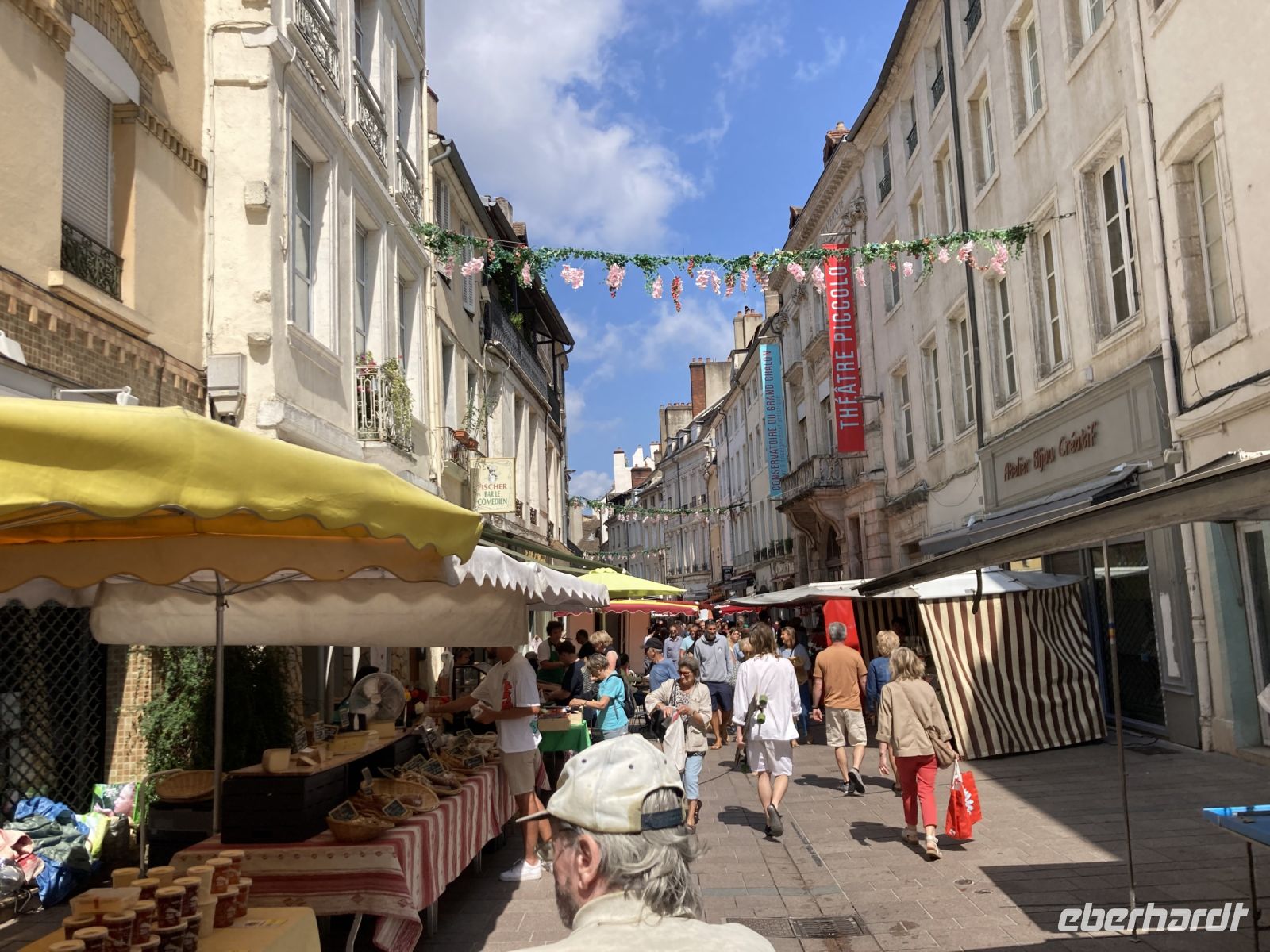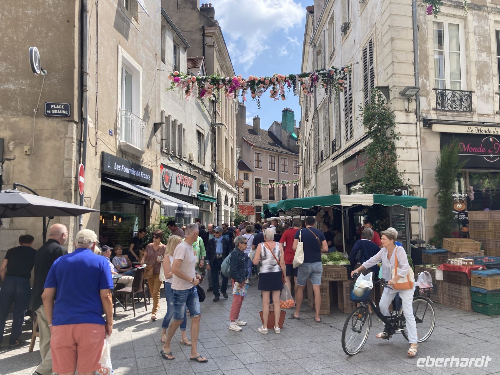 Für die Ausflügler steht heute schon ein Höhepunkt auf dem Programm. Schließlich lernen sie mit Dijon nicht nur die Hauptstadt des Burgunds kennen, sie tauchen auch tief in die Geschichte Frankreichs ein. Denn einst waren die Herzöge des Burgunds mächtiger als die französische Krone. Von dem Reichtum legt Dijon noch heute Zeugnis ab. Kulinarisch hat das Burgund auch einiges zu bieten: Senf, Wein, Schokolade und Cassis. Ein besonderes Vergnügen bietet jedoch auch Chalon an diesem Vormittag. Ein wunderbarer Markt erstreckt sich in der Altstadt und erlaubt schon einen Einblick in das Obst- und Gemüseangebot. Natürlich dürfen die vorzüglichen Käsesorten nicht fehlen. Würden wir nicht so gut auf dem Schiff versorgt werden, wäre dies eine hervorragende Gelegenheit sich für ein Picknick einzudecken. Für Fotografiebegeisterte hält Chalon mit dem Musée Nicéphore Niépce, dem Pionier der Fotografie, einen echten Augenschmaus parat. Neben zahlreichen Fotoapparaten mit denen die Geschichte der Fotografie anschaulich nacherzählt wird, werfen Sonderausstellung Schlaglichter auf die großen DokumentarfotografInnen und FotokünstlerInnen. Langsam nimmt der Sommer in Frankreich auf und so genießen die Gäste, die nicht am Ausflug teilnehmen, den Nachmittag an Bord, bevor das Schiff am Abend in Richtung Mâcon ablegt.