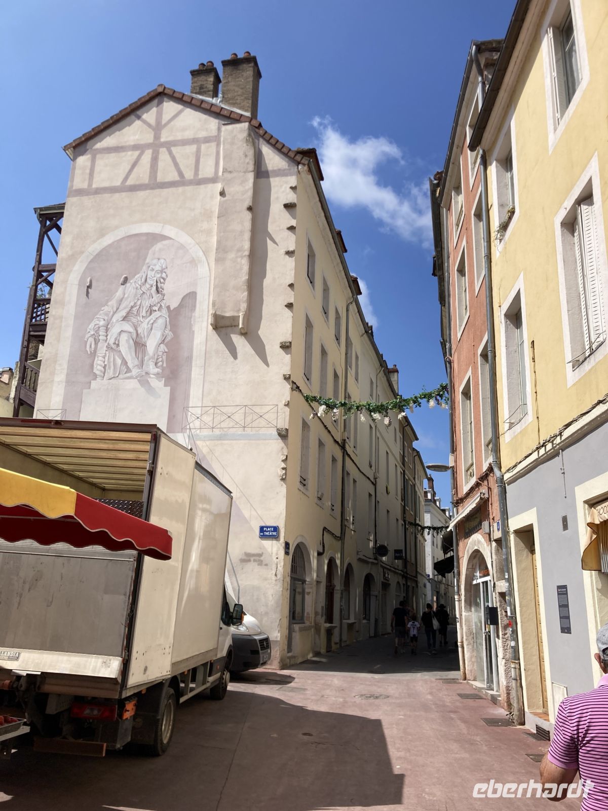 Sie spielte für den Warenhandel eine wichtige Rolle. Wie bedeutsam diese Stadt einst war, lässt sich leider nur noch an wenigen Gebäuden ablesen. Das wunderschöne Holzhaus ( Maison bois) mit seinen besonderen Schnitzereien, die nach damaliger Auffassung nicht für Augen der Damenwelt geeignet war, ist ein Beleg für diese Hochzeit der Stadt. Damen waren hier tatsächlich zu finden, immerhin gab es einen Sitz der Ursulinen, in deren einstigem Kloster heute das Museum der Stadt Einzug gehalten hat. Am Ende des Rundganges werfen wir noch einen Blick auf den Pont Saint-Laurent: Die steinerne Brücke überspannt die Saône. Noch heute erscheint sie im mittelalterlichen Antlitz und sie ist damit eine der wenigen Brücken, die nicht durch Kriege, vor allem aber im Zweiten Weltkrieg zerstört wurde. Eine unrühmliche Geschichte verbindet sich jedoch mit der Brücke. Während der Religionskriege fanden hier viele Hugenotten den Tod, als sie in den Fluss geworfen wurden.