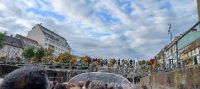 Ein ausgiebiges frühes Frühstück, dann verlassen wir das Schiff. Thomas, unser Fahrer, bringt uns nach Straßburg, wo wir nun noch einmal am Nachmittag ein Hotel außerhalb des Altstadtrings beziehen. 16:00 Uhr starten wir per Bus u. zu Fuß bis zum Münster u. haben Gelegenheit zu einer individuellen Innenbesichtigung. Unsere Reiseleiterin ortet in der Zwischenzeit den Schiffsanleger u. das Abendrestaurant, so dass wir mit gezielter Nautik als erste Gruppe das Boot besetzen u. eine wunderbare einstündige Fahrt auf der Ill u. ihren Nebenarmen durchführen. Wir passieren das Viertel "Petite France", die Festung, biegen über eine Schleusung in den Nebenarm, unterqueren zahlreiche kleine blumengeschmückte Brücken. Menschen säumen die Ufer, winken uns zu, ein Pärchen küsst sich innig auf der Brücke, wir klatschen Applaus. Wir sehen das "Deutsche Viertel", das in der Kaiserzeit errichtet wurde u. das moderne "Europa-Viertel" mit den Gebäuden wichtiger Europäischen Organisationen sowie die Sendezentrale des Senders "Arte". Eine wunderbare Architekturkombination hat Straßburg mit viel Grün.