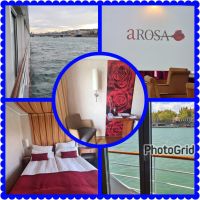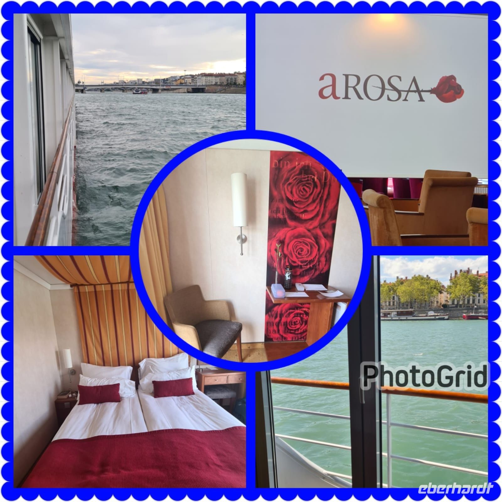 Die lange Reiseschlange am Schiff schreckt uns zunächst ab, jedoch klärt sich alles schnell. Die Schlange verschwindet in der A-Rosa LUNA, d.h. wir liegen mit der A-Rosa Stella im Doppelback hintereinander, was mehrmals auf unserer Reise sein wird. Wir organisieren den Check In schnell durch die Sammlung der Reisepässe durch unsere Reiseleitung. So können wir direkt die Kabinen beziehen, wo wir einen Willkommensbrief u. einige auch schon ihre Ausflugstickets in einem Umschlag vorfinden.