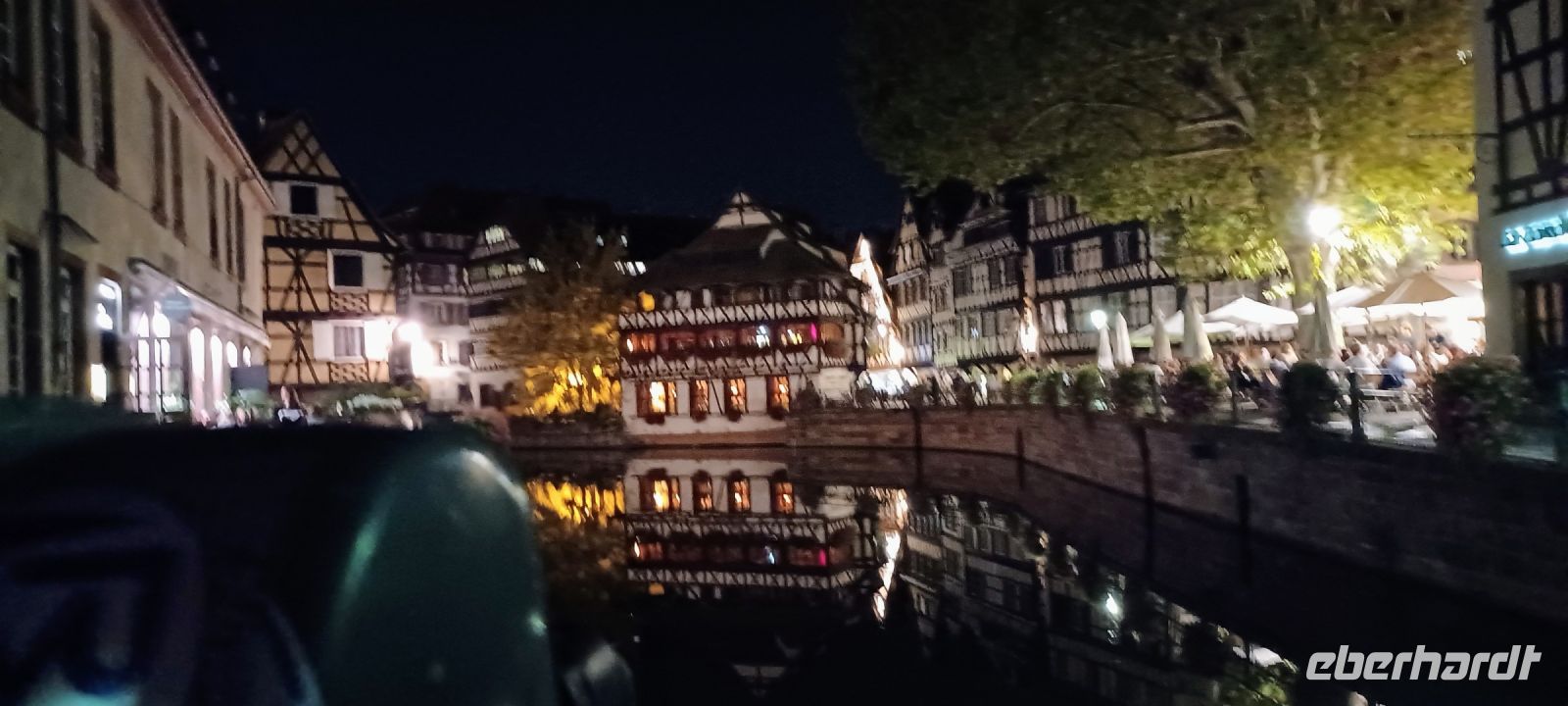 22 Reisegäste wählen die Anreise per Bus, vier weitere werden wir auf dem Schiff treffen. Sergey, unser Busfahrer, hat die Tour bereits im Mai begleitet u. kennt sich in den Anfahrtsdestinationen bestens aus. Gegen 18:00 Uhr erreichen wir unser Hotel direkt im Stadtzentrum u. von einigen Zimmern kann man bereits die Türme des berühmten Münsters sehen. Das Wetter verspricht einen lauen Spätsommerabend, so schließen sich viele Reisegäste nach dem Abendessen einem Erkundungsrundgang durch die beleuchtete Altstadt an: wir überqueren den Kléber-Platz, benannt nach dem in Straßburg geborenen General der französischen Revolutionsarmee, Jean-Baptiste Kléber, der in einer Gruft unter dem Denkmal ruht. Anschließend überqueren wir eine lebendige touristische Straße mit zahlreichen Restaurants, u. durch eine schmale Gasse leuchten uns die Türme des Münsters entgegen u. ziehen uns magisch an, bis wir erhaben vor dem angestrahlten Monument für einige Zeit verweilen. Dann laufen wir entlang der Ill bis zum ältesten Stadtquartier, Petite France, mit den herrlichen bunten Fachwerkhäuschen. Es ist Freitag abend u. die jungen Leute in der zweitgrößten Universitätsstadt Frankreichs sind z.T. bis in die frühen Morgenstunden unterwegs.