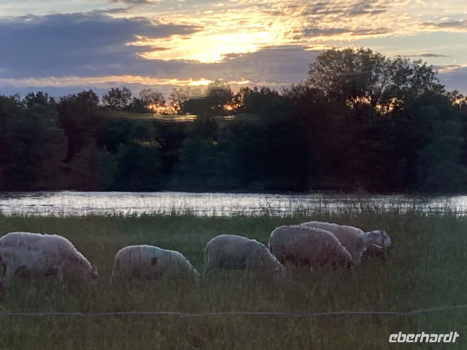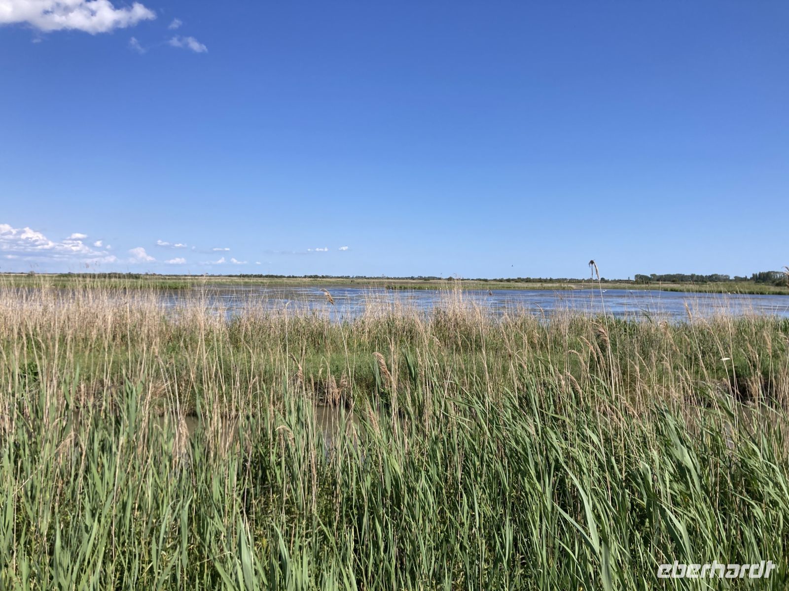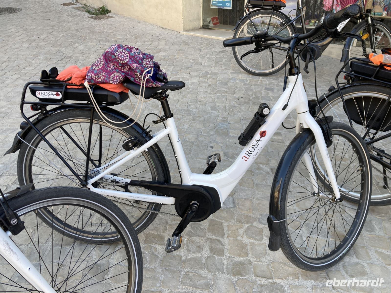 Immerhin, auf der Rundfahrt sind die Gäste Vincent auch nahe, denn die Camargue und Les-Saintes-Maries-de-la-Mer besuchte er auch. Einen kleinen Vorgeschmack bekommen die Besucher auch schon heute auf das ereignisreiche Wochenende in Les-Saintes-Maires-de-la-Mer. Das letzte Wochenende im Mai ist reserviert für die große Pilgerfahrt der Roma. Sie kommen hierher, um der heiligen Sarah zu huldigen. Nach Les-Saintes-Mairies-de-la-Mer geht es für die Radler heute nicht. Aber die Landschaft der Camargue bietet sich natürlich wunderbar an, um das Ganze per Muskelkraft zu entdecken. Wobei dank der E-Bikes von Arosa sich die Kraftanstrengung in Grenzen hält. Wir radeln gemütlich vorbei an den berühmten Reisfeldern, die auf Grund der Regenfälle ordentlich unter Wasser stehen. Natürlich sehen wir auch die schwarzen Stiere und die weißen Pferde. Und auch Flamingos lassen sich mit dem Fahrrad problemlos erblicken. Bei leichtem Wind und blauem Himmel ist das Ausflug ein wahres Vergnügen. Gute 42 Kilometer haben wir am Ende absolviert und wir konnten sogar noch einen Schlenker durch die Innenstadt von Arles machen. Leider verlassen wir am Abend schon wieder Arles. Und leider treten wir nun auch schon langsam die Rückfahrt auf dem Rhône an. Aber eine besondere Landschaft werden wir am nächsten Tag noch erleben dürfen.