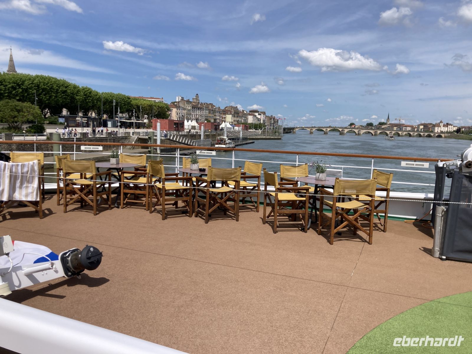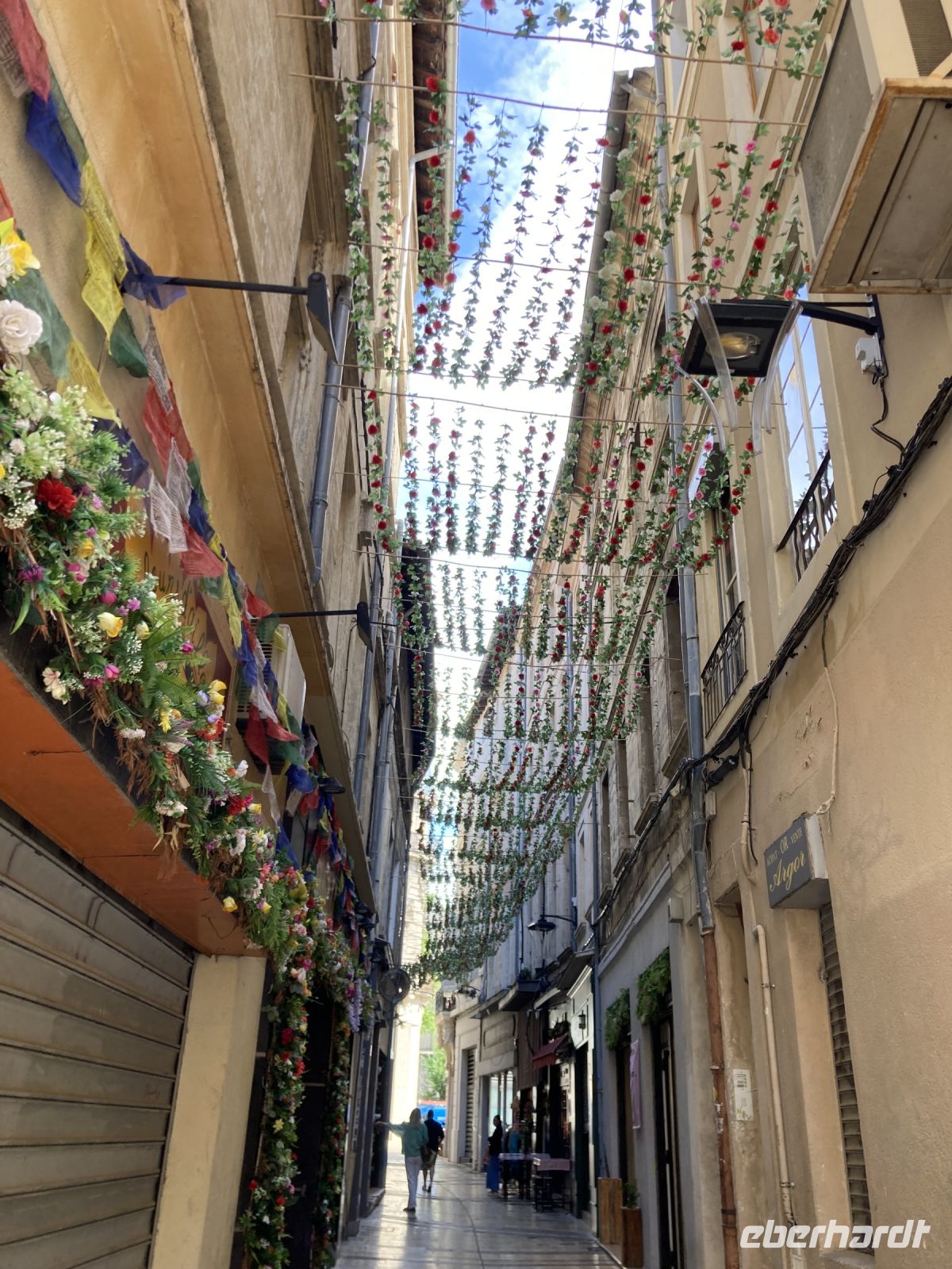 Unseren ersten Schritt auf südlichen Boden setzen wir in Avignon. Der große Teil der Gäste nimmt am inkludierten Arosa-Ausflug teil. Eine kleine Gruppe macht sich mit mir auf den Weg. Papstpalast und Ausblick auf den Pont Saint-Bénézet dürfen natürlich auch bei uns nicht fehlen. Heute ist die Brücke nur noch eine Ruine, doch schon diese zeugt davon, wie mächtig dieses Bauwerk einst war. Vier Meter Breite und Bögen, die 33 Meter breit und 13 Meter hoch sind, ließen die Brücke lange als die längste Europa gelten. Doch Hochwasser und politische Unruhen führten schließlich dazu, dass die Brücke 1660 aufgegeben wurde. Unweit der Brücke befindet sich der Papstpalast. Dieser ist heute nicht nur Museum, sondern auch Schauplatz des Avignoner Sommers: Zahlreiche Konzerte und Theateraufführungen finden hier statt. Und überhaupt: Wer mit offenen Augen durch Avignon läuft, entdeckt an einigen Fassaden Darstellungen von Theaterszenen und Fotos von bekannten Schauspielern und Schauspielerinnen, die in jungen Jahren hier auch im Sommer Theater spielten. An den Geschäften können wir auch schon die Plakate entdecken, die auf das diesjährige Festival hinweisen. Der Abend klingt dann für uns an Bord der Stella musikalisch aus. Flamencoklänge ertönen. Da es am Abend doch ziemlich frisch ist, heißt die Devise einfach: warm tanzen!