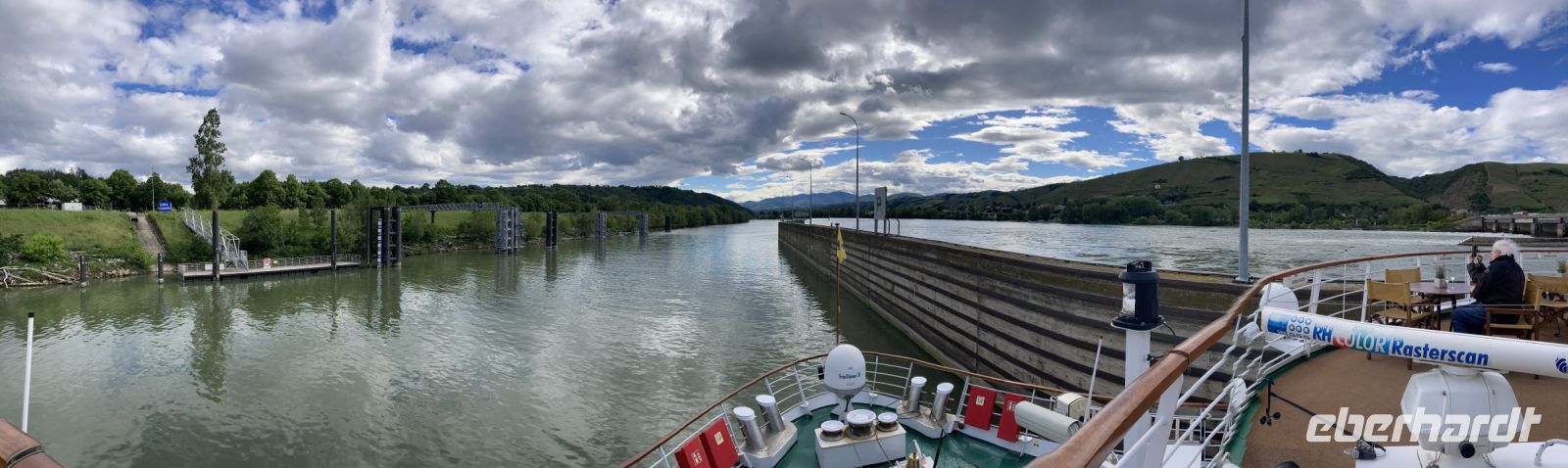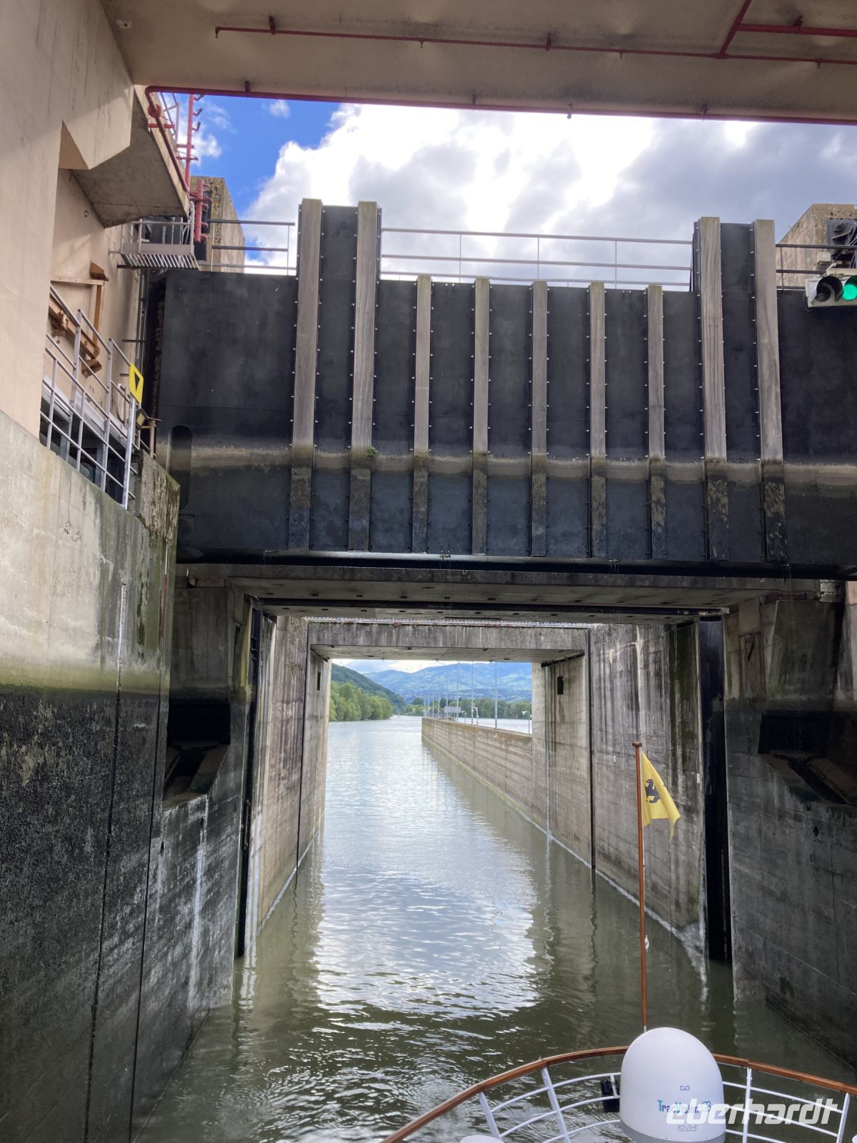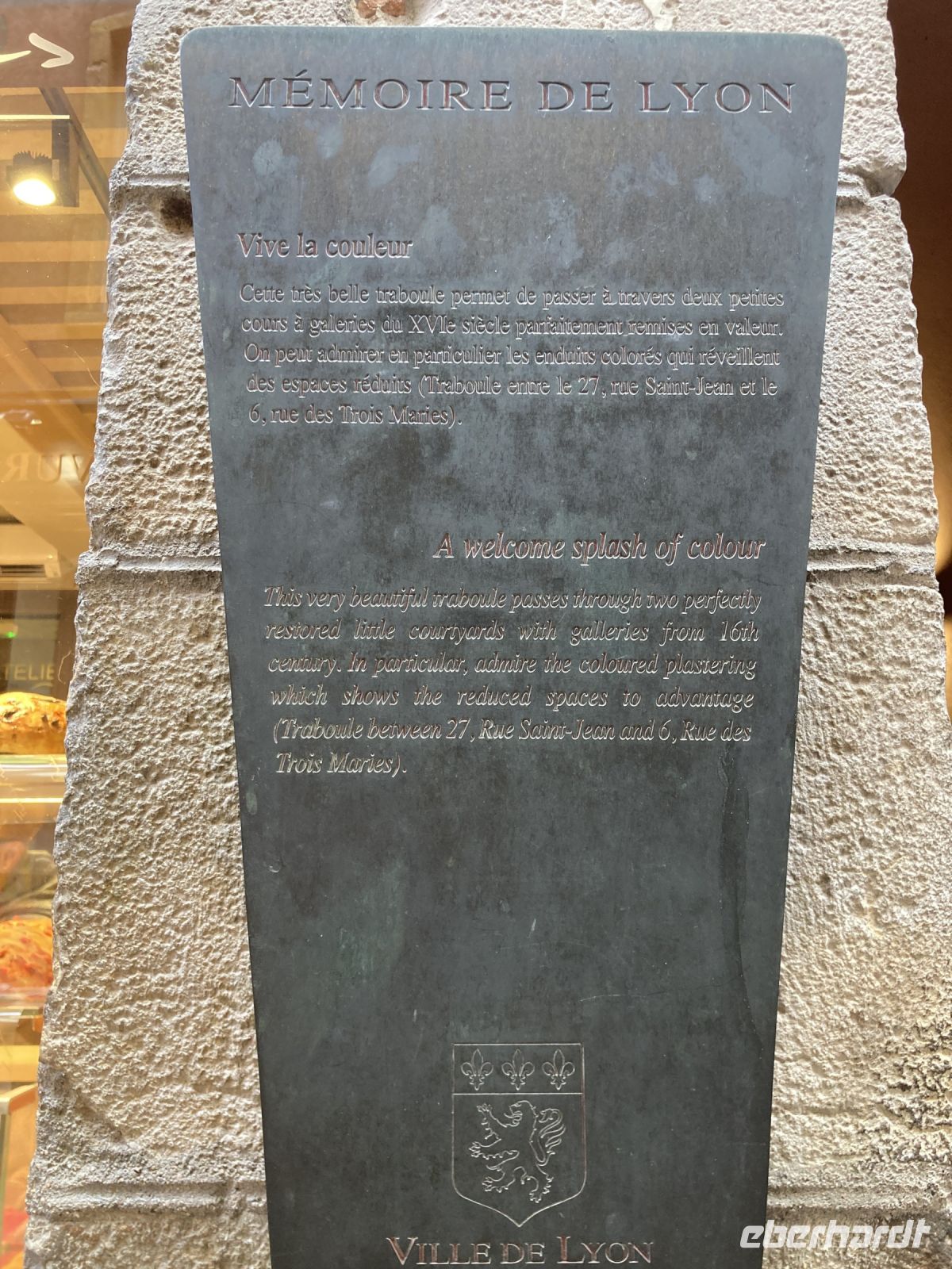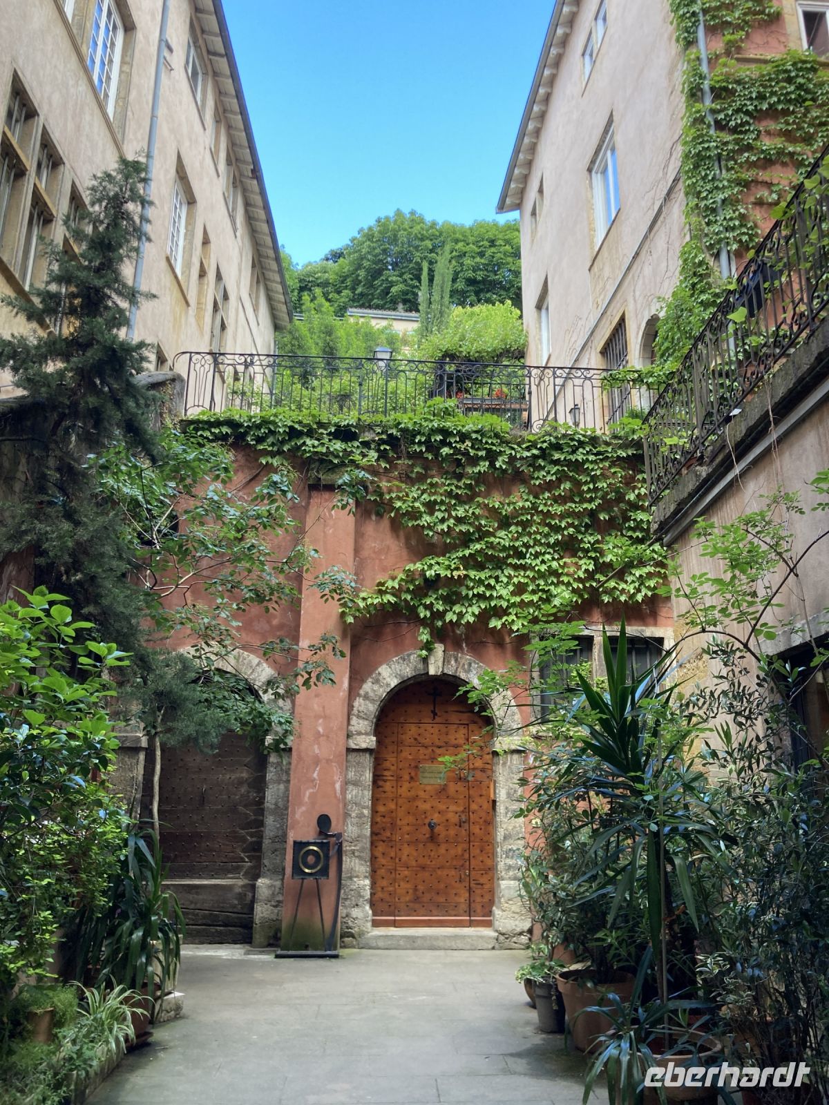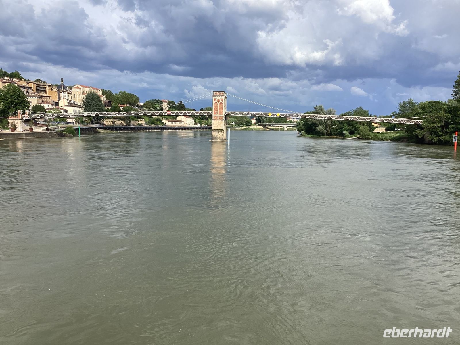 Wir wagen einen letzten Blick auf die sich unter uns ausbreitende Stadt. Im Anschluss geht es nun noch zur Altstadt hinunter. Zahlreiche Restaurants warten hier auf ihre Gäste. Der Bouchon Lyonnais weist den Weg zu einer traditionellen Küche und natürlich dürfen die Traboules nicht fehlen. Wir öffnen eine Tür. Von außen ein Eingang zu einem Privathaus. Aber dieses Haus ist vielmehr. Es gehört zu jenen Häusern, die durch eine Vielzahl von Durchgängen verbunden sind, um so schnell einen regenfreien Weg vom Fluss zu den Händlern und Werkstätten zu schaffen. In Lyon soll es 500 von diesen Durchgängen, den Traboules, geben. Wieder im Bus fahren wir nun zur Markthalle, die den Namen des großen Kochs und Sohnes der Stadt Paul Bocuse trägt. Zugegeben, das Warenangebot ist äußerst verlockend. Und tatsächlich müssten wir am besten einen eigenen Herd hier haben, um alles einmal auszuprobieren. Aber unserer Besuch bleibt keine Trockenübung. Bei einem Gläschen Wein probieren wir die gute Wurst aus Lyon und einen Ziegenkäse. Das macht auf jeden Fall Appetit auf das Mittagessen. Wir kehren zum Schiff zurück, wo schon alles für unsere Abfahrt vorbereitet ist. Wir nehmen nun südlichen Kurs.