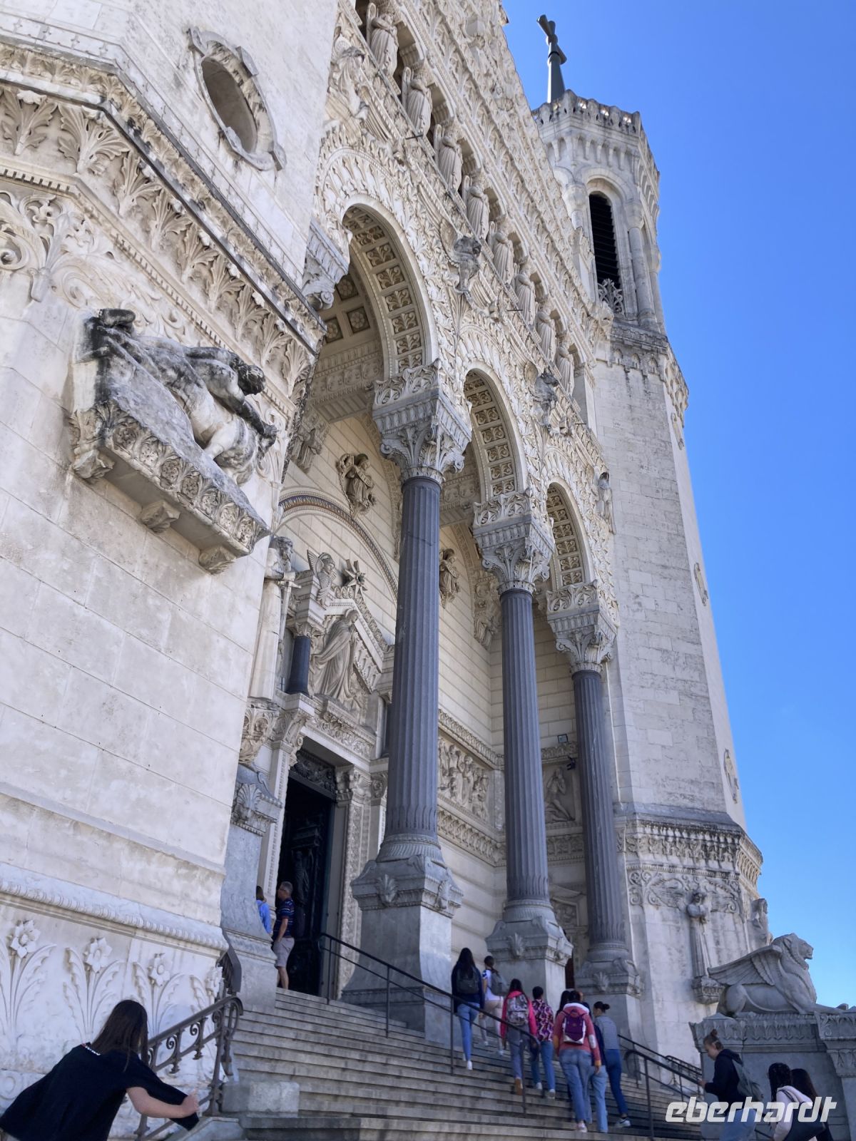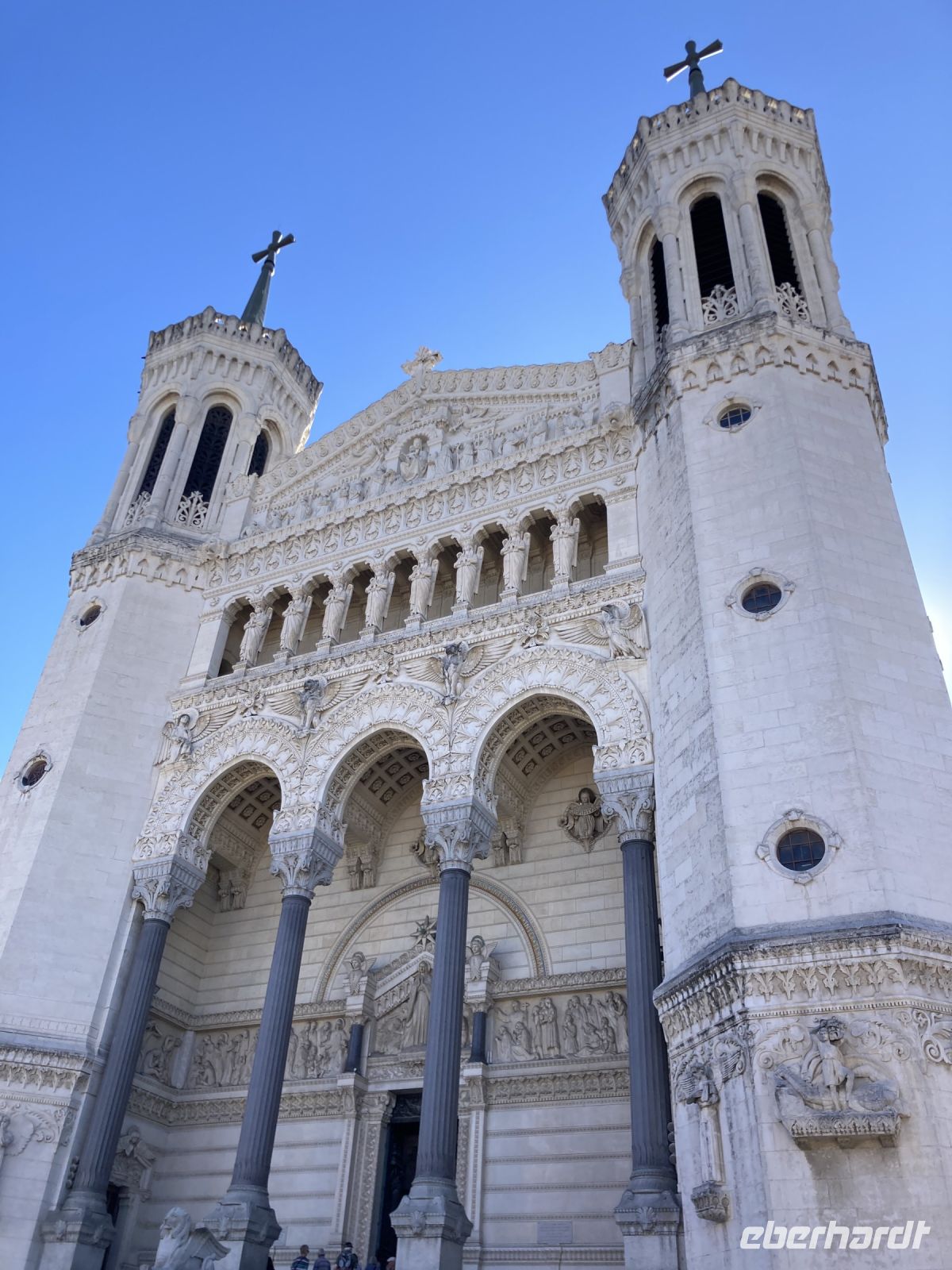 Wir erwachen wieder an dem Anlegepunkt, den wir schon von unserer Einschiffung kennen. Mit dem Bus geht es nun zur Stadterkundung. Um sich einen besseren Überblick über Lyon zu verschaffen geht es hinauf zur Notre-Dame de Fourvière. Diese Wallfahrtskirche ist das Wahrzeichen von Lyon, obwohl sie gar nicht so alt ist. Erbaut wurde sie ab 1872, um schließlich 1896 geweiht zu werden. Trotz ihres kirchengeschichtlich jungen Alters hat sie sogar den Besuch eines Papstes zu melden.