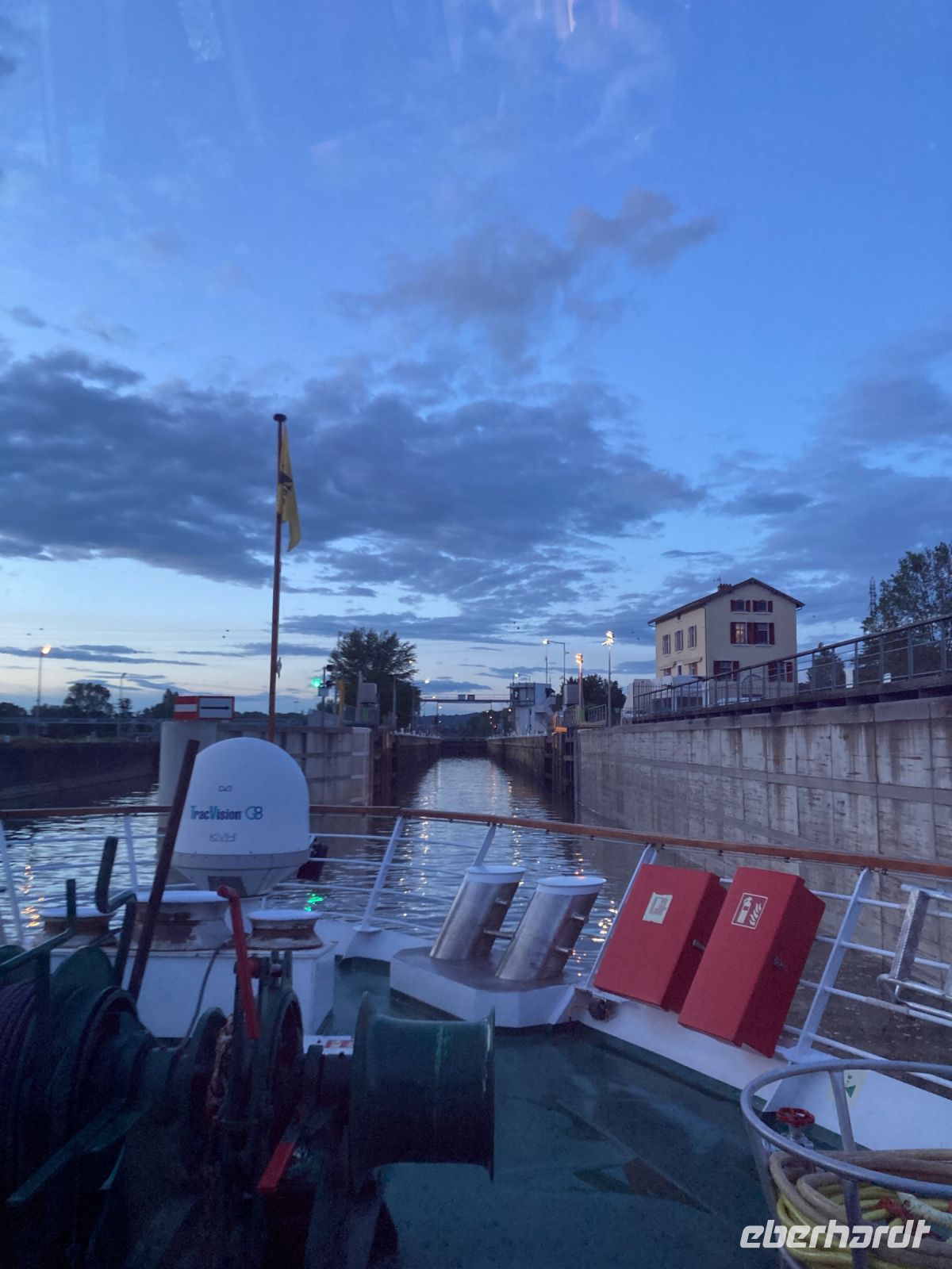 Wir verabschieden uns gegen acht Uhr zwar aus Strasbourg, aber der Abschiedsschmerz hält sich in Grenzen. Schließlich kommen wir in einer Woche wieder. Und haben dann Zeit uns der schönen Stadt zu widmen. Wir nehmen Kurs gen Süden und passieren dann das kleinste Département Frankreichs Belfort. Weiter geht es durch das weniger bekannte Département Franche-Comté. Leider nimmt nun das Schicksal seinen Lauf. Der erste große Stau ereilt uns. Die Elektronik an einer Mautstelle scheint ein Problem zu haben und lässt nun die Zahl der wartenden Verkehrsteilnehmer anwachsen. Doch damit nicht genug. Wenig später wird die Autobahn auf Grund eines Unfalles sogar voll gesperrt. Immerhin können wir noch abfahren und eine Umleitung fahren. Andere Reisegruppen für die Stella haben da deutlich weniger Glück. Nachdem wir diese Hürde genommen haben, verläuft die Weiterfahrt problemlos. Wir erreichen das Schiff zwar erst um 16:15. Sind damit aus Sicht der Rezeption geradezu überpünktlich, denn die anderen Reisegruppen treffen teilweise fast drei Stunden später ein. Unsere Abfahrt wird deshalb auch auf 19:30 verlegt. Wir erleben dies beim Abendessen. Nun also beginnt tatsächlich unsere Flusskreuzfahrt. Unser erster Kurs führt uns flussaufwärts auf der Saône. Vorbei an den Sehenswürdigkeiten des alten Lyon genießen wir den ersten Abend an Bord.