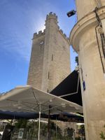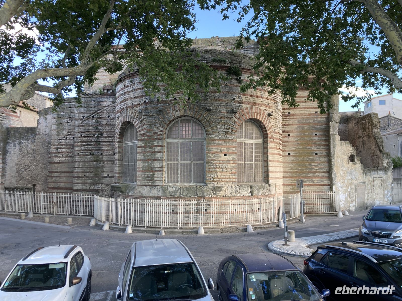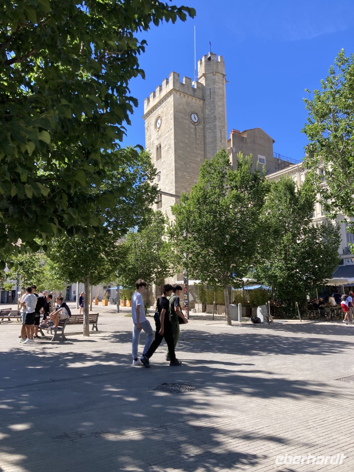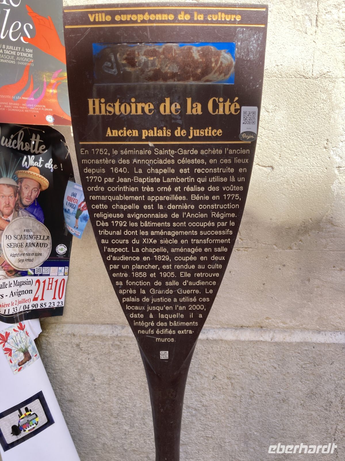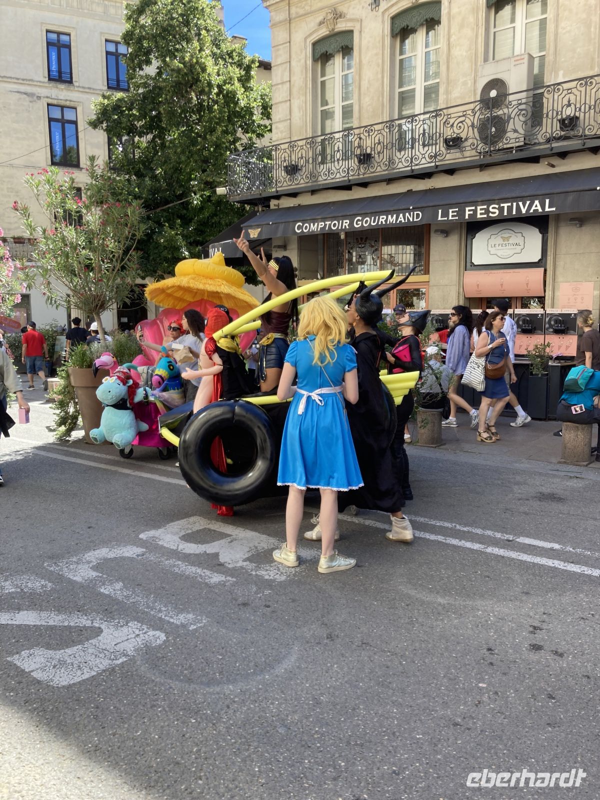 Unsere erste Begegnung mit dem Süden Frankreichs wird Avignon sein. Da wir dieses Mal sehr zeitig unterwegs sind, macht unser Kapitän noch eine Panoramafahrt bis zur berühmten Brücke. So können wir die Stadtansicht, vor allem aber den Pont Saint-Bénézet schon aus der Nähe betrachten. Heute ist die Brücke nur noch eine Ruine, doch schon diese zeugt davon, wie mächtig dieses Bauwerk einst war. Eine Breite von vier Meter und Bögen, die eine Weite von 33 Meter haben und 13 Meter hoch sind, ließen die Brücke lange als die längste Europa gelten. Doch Hochwasser und politische Unruhen führten schließlich dazu, dass die Brücke 1660 aufgegeben wurde. Unweit der Brücke befindet sich der Papstpalast. Dieser ist heute nicht nur Museum, sondern auch Schauplatz des Avignoner Sommer: Zahlreiche Konzerte und Theateraufführungen finden hier statt. Bei unserem Aufenthalt beginnt gerade der Theatersommer. In der Hauptstraße finden sich immer wieder Gruppen, die auf ihre Ausführung aufmerksam machen wollen, mal leise, mal mit großem Spektakel. Wer mit offenen Augen durch Avignon läuft, entdeckt an einigen Fassaden Darstellungen von Theaterszenen und Fotos von bekannten Schauspielern, die in jungen Jahren hier auch im Sommer an Inszenierungen teilnahmen oder mit Regisseuren diskutierten.