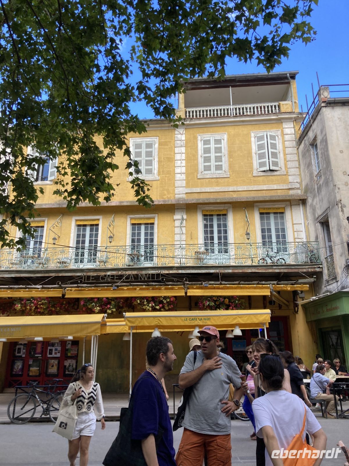 Im kommenden Jahr wird die Qual der Wahl dann wohl ein Ende haben, denn dann befahren wir nur den Rhône, was uns vielmehr Zeit lässt für die schöne Stadt Arles. Schließlich haben Künstler, allen voran Vincent van Gogh unser Bild von Arles geprägt. Van Gogh kam durch einen Zufall nach Arles. Besser gesagt er blieb hier hängen. Auf dem Wege nach Marseille musste der Zug im Februar 1888 in Arles länger halten. Vincent stieg aus und blieb - 15 Monate in der Stadt. Das Ergebnis: 300 Werke und eine tiefe Krise des Künstlers. Diese ließ ihn dann noch weitere Monate in der Region bleiben. Bei seinem Aufenthalt in der Klinik in Saint-Rémy-de-Provence blieb ein weiteres Jahr. Und auch hier malte und zeichnete er. Immerhin, auf der Rundfahrt sind die Gäste Vincent nahe, denn die Camargue und Saintes-Maries-de-la-Mer besuchte er auch. Nach Saintes-Mairies-de-la-Mer geht es für die Radler nicht. Aber die Landschaft der Camargue bietet sich natürlich wunderbar an, um das Ganze per Muskelkraft zu entdecken. Wobei E-Bikes von Arosa die Kraftanstrengung doch deutlich verringern. Wer radelt, sieht die Reisfeldern und die berühmten Stiere und Pferde natürlich noch etwas näher. Wer sich für die Vögel interessiert, sollte den Jeep wählen. Mit diesen etwas rustikaleren Fortbewegungsmittels kommen die Besucher auch in den Vogelschutzpark. Vier Gäste haben sich jedoch entschieden, Arles auf eigene Faust zu erkunden. Wir machen es gemütlich gemeinsam und bei unserem Rundgang lässt sich vielleicht auch erahnen, warum es bei aller Krise, Vincent hier so gut gefiel.