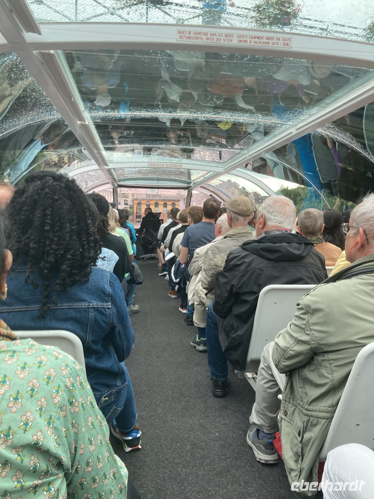 Wir liegen wieder am Quai Bernard und unser Bus steht pünktlich für unsere Abfahrt bereit. Um 8 Uhr verlassen wir Lyon in Richtung Norden. Kaum sind wir in Höhe des Flugplatzes macht der Himmel seine Schleusen auf. Starkregen fällt auf uns herab. Souverän lenkt unserer Fahrer Micha den Bus auch in dieser Situation. Wir reisen bis Straßburg, wo wir nun im Hilton übernachten. Da wir wegen des Regens und eines Staus später als geplant ankommen, ist unsere Bootsfahrt und das Abendessen schon umgeplant. Also, wir können es entspannt angehen. Zumal bei unserer Ankunft erneut ein Regenguss auf uns niedergeht. Gut, dass wir uns für ein geschlossenes Boot entschieden haben. Für eine Besichtigung der Kathedrale bleibt allerdings keine Zeit mehr, dafür gehen wir gemütlich zum Anleger, wobei wir natürlich noch einige Fotostopps einlegen. Den Abend lassen wir traditionell ausklingen, bei Flammkuchen, Wein oder Bier. Zu guter Letzt kommt nun noch eine Besonderheit. Der kleinere Teil der Gäste geht mit Micha zu Fuß zum Hotel. Ein Verdauungsspaziergang von 2,5 Kilometern. Die anderen nehmen gemeinsam mit mir die Tram.