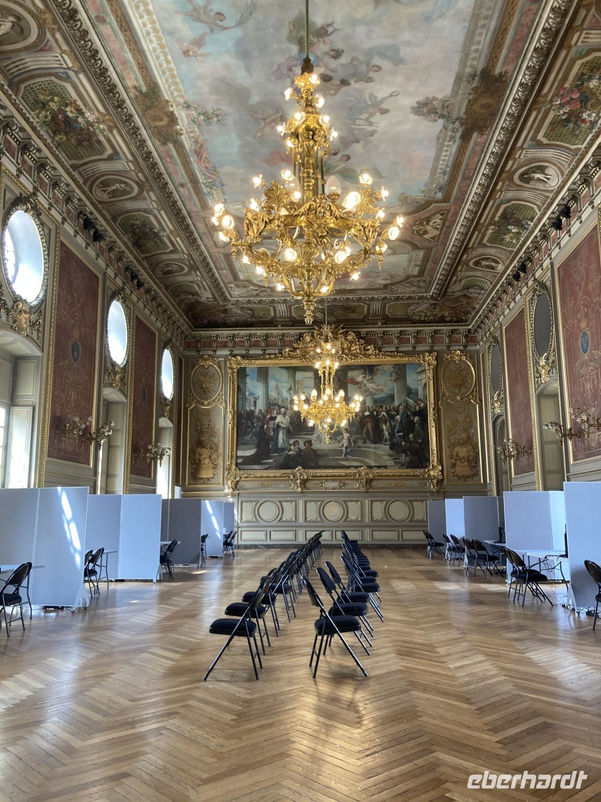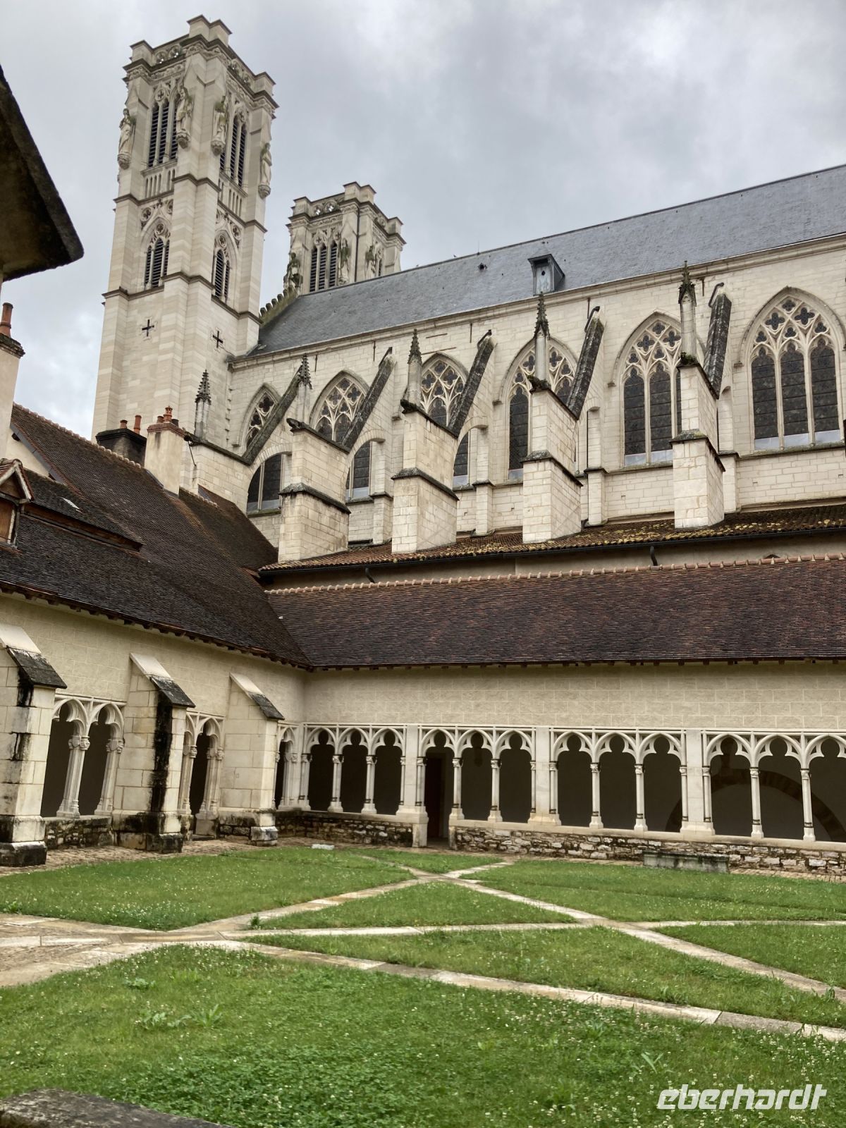 Dieser Sommer ist ein wenig befremdlich. Viel Regen und Hochwasser begleitet auch Frankreich. Doch nun legt der Regen eine Verschnaufpause ein, auch wenn wir zur Sicherheit den Schirm mitnehmen. Einige Gäste wollen gerne das charmante Städtchen mit einer örtlichen Führerin kennenlernen. Für die andere bietet sich auf jeden Fall ein Besuch auf dem Markt an, der jeden Sonntag die Einheimischen zum Einkauf lockt. Wir brechen also gemeineinsam auf, machen einen kleinen Abstecher zum Kreuzgang und schlendern dann gemütlich über den Markt. Nach dem Genuss des Mittagessens geht es für die meisten Gäste in die Hauptstadt des Burgunds, nach Dijon. Nach einer guten Stunde Busfahrt vorbei an den Weinbergen, die das Burgund auch berühmt machten, erreichen wir diese schöne Stadt, für die die Besucher eigentlich viel mehr Zeit benötigen, soviel gibt es hier zu entdecken. Da heute die vom Präsidenten angesetzte Wahl stattfindet, haben tatsächlich auch einige Geschäfte geöffnet. Wobei die Spezialitäten allem voran der Senf natürlich auch am Sonntag erhältlich ist. Dass diese Stadt einst zu den Machtzentren gehörte, zeigt sich in ihren Bauwerken. Hier lenkten die mächtigen Herzöge des Burgunds die Geschicke nicht nur dieser Region. Immerhin waren sie zeitweise reicher und damit eben auch mächtiger als die französische Krone und ihr Territorium reichte bis nach Flandern. Heute lässt sich das in den Straßen, aber auch im Museumskomplex der Stadt erkennen. Hier residierten einst die Herzöge. Heute können wir durch das Gebäude schlendern und dabei Kunst betrachten und genießen - und dies bei freiem Eintritt. Leider ist die Zeit in Dijon schon wieder vorbei und wir fahren zum Schiff. Wieder zurück an Bord, legen wir auch schon ab. Die fehlenden 30 Gäste sind übrigens nicht an Bord gekommen. Ihr Flug wurde erneut storniert und sie werden wohl ihre Reise zu einem anderen Termin antreten. Unsere Eberhardt-Gruppe genießt die Abfahrt flussabwärts in Richtung Mâcon.