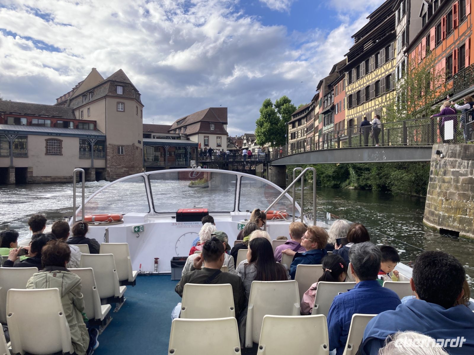 Unser Bus steht für unsere Abfahrt bereit und um 8:30 Uhr verlassen wir Lyon in Richtung Norden. Im Hotel eingecheckt, geht es nun für uns zu Fuß in Richtung Kathedrale und Bootsanleger. Eine gute Stunde schippern wir nun durch die Altstadt von Strasbourg, aber auch das Europaviertel ist gut von der Ill sichtbar. Wie immer lassen wir nun den Abend traditionell ausklingen. Das heißt: Flammkuchen, Wein oder Bier. Gemeinsam geht es dann wieder zu Fuß zum Hotel. Bonne nuit - heißt es nun ein letztes Mal für diese Reise in Frankreich.