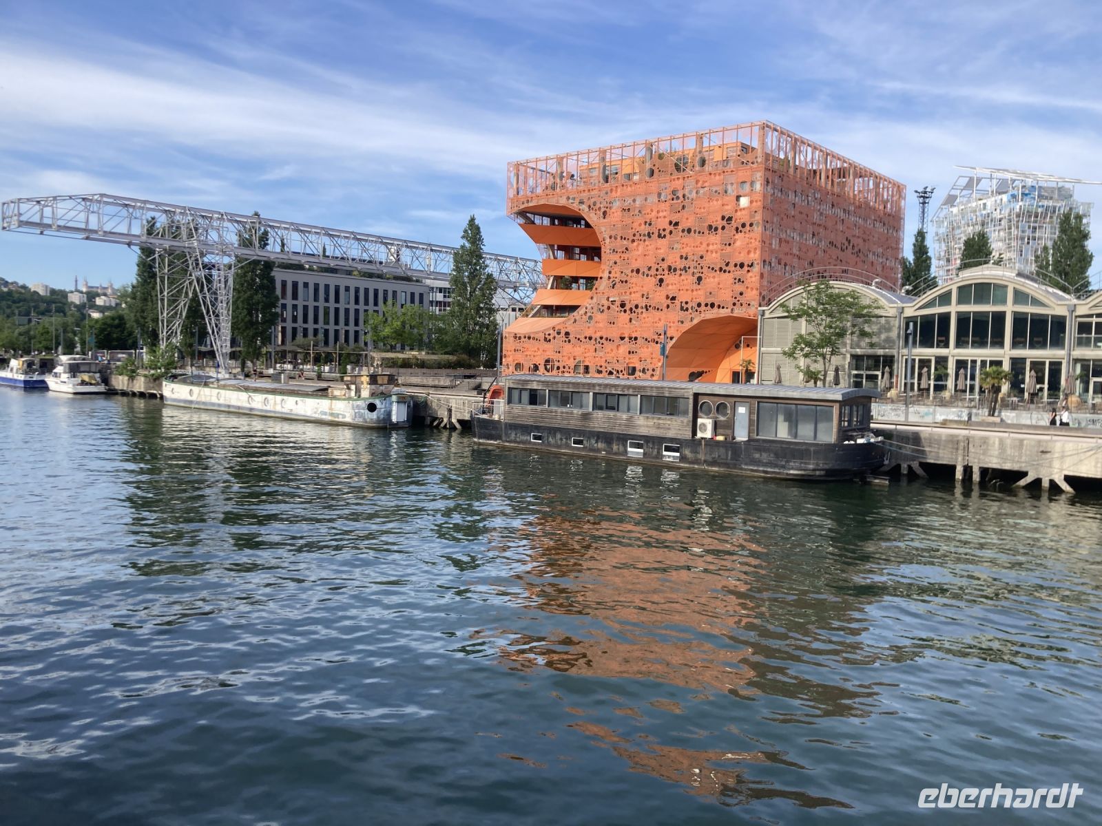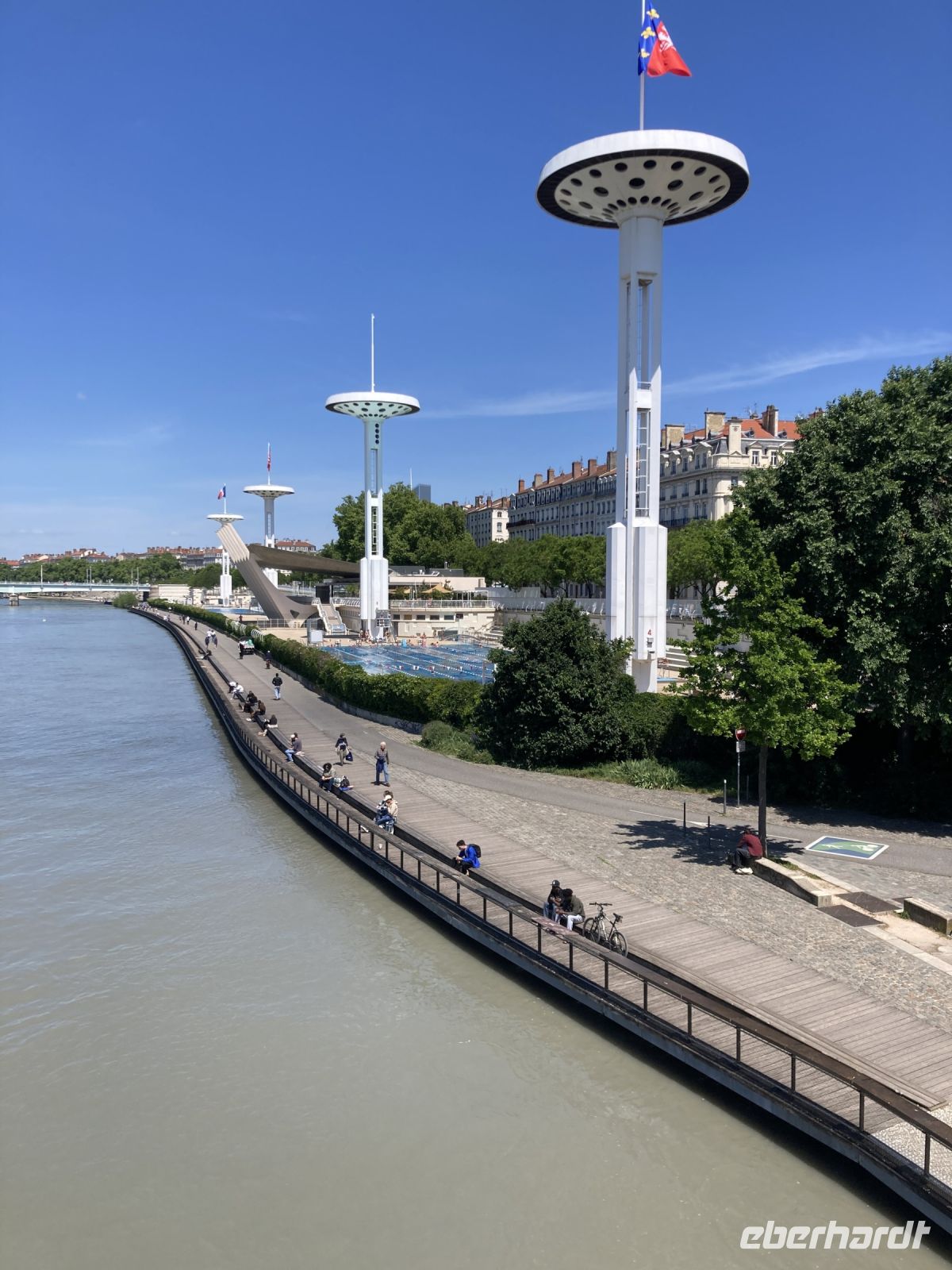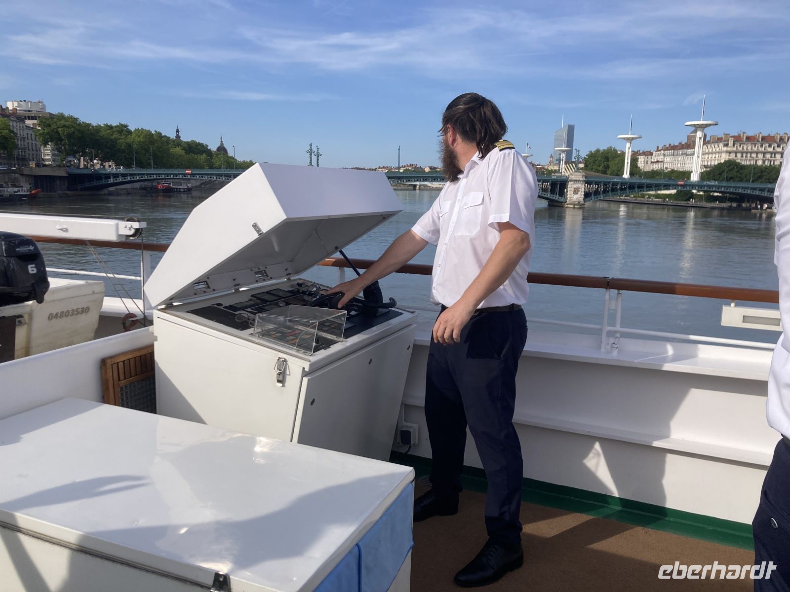 Keine Ferien und zudem noch ein Sonntag, das sind die Zutaten für eine gute Busfahrt ohne Stau. Auf unserer Fahrt nach Lyon durchfahren wir mehrere Départements, darunter auch das kleinste kleinste Frankreichs: Belfort. Aus dem Bus lässt sich die Festungsanlage sehen, die der Baumeister Vauban, der Spezialist für Militäranlagen unter Ludwig, XIV, plante. An Belfort schließt sich das weniger bekannte Département Franche-Comté an. Einmal mehr wird auf unserer Anreise deutlich, wie wichtig die Landwirtschaft für Frankreich ist. Kurz nach 15 Uhr erreichen wir Lyon und den Anleger. Mit ihren Ausweisdokumenten können die Gäste an der Rezeption einchecken, um gleich darauf ihre Kabine zu beziehen, Eine kleine Stärkung erwartet die Gäste im Restaurant. Die einzige Veranstaltung, die verpflichtend ist, ist die Sicherheitseinweisung. Der krönende Tagesabschluss ist eine Panoramafahrt auf der Saône, so dass wir auch schon die Altstadt von Lyon vom Sonnendeck an uns vorbeiziehen lassen können.