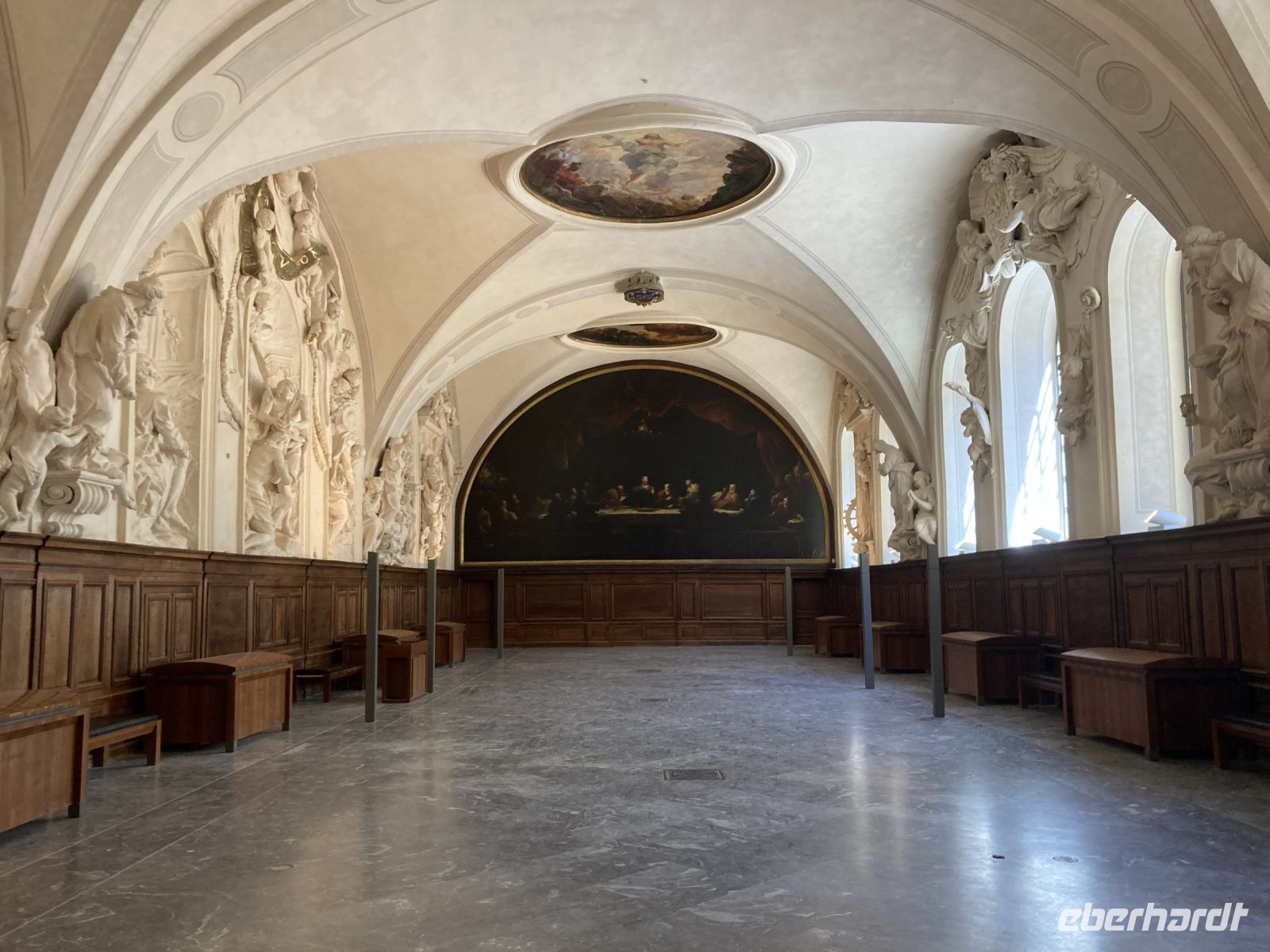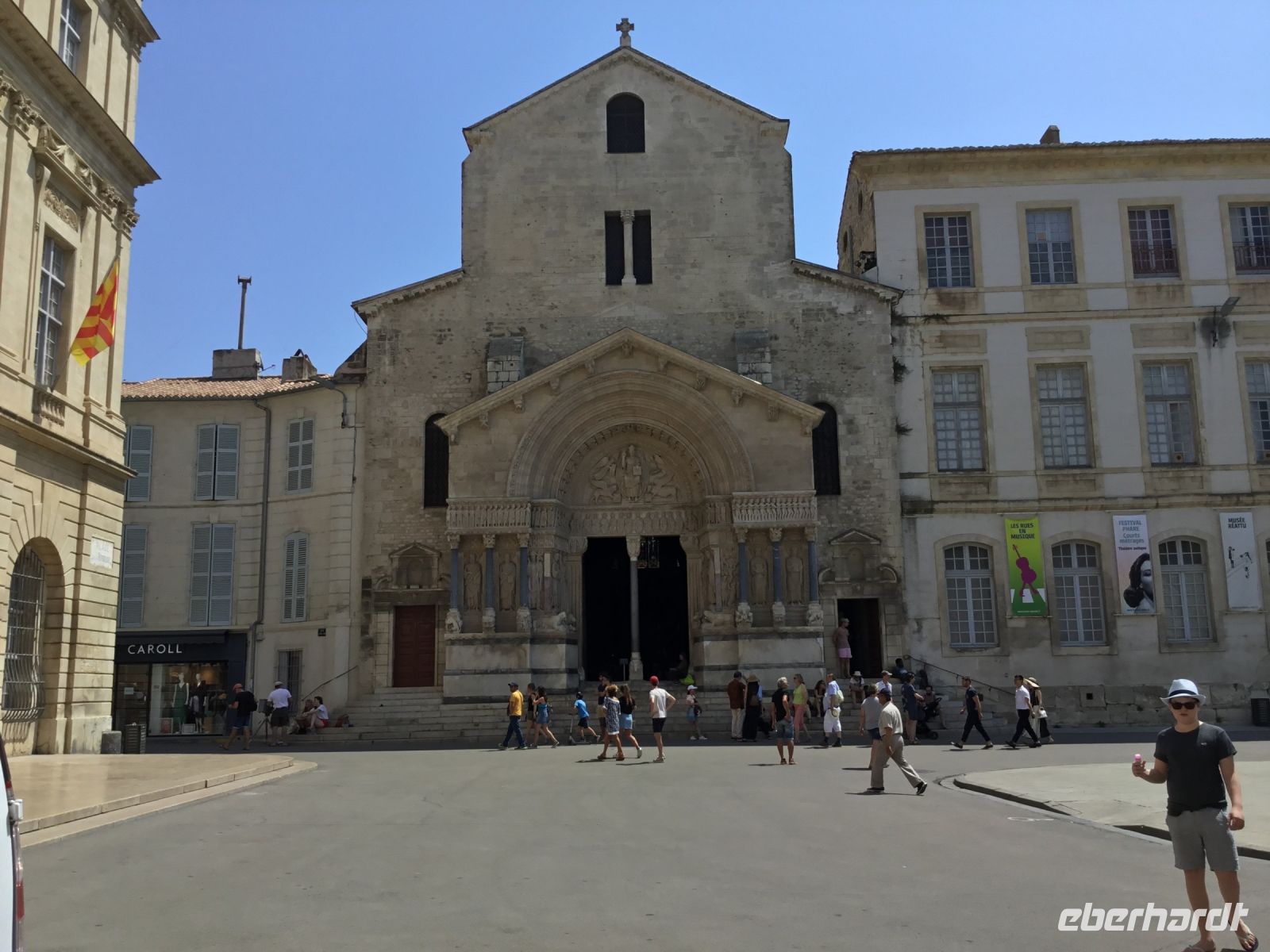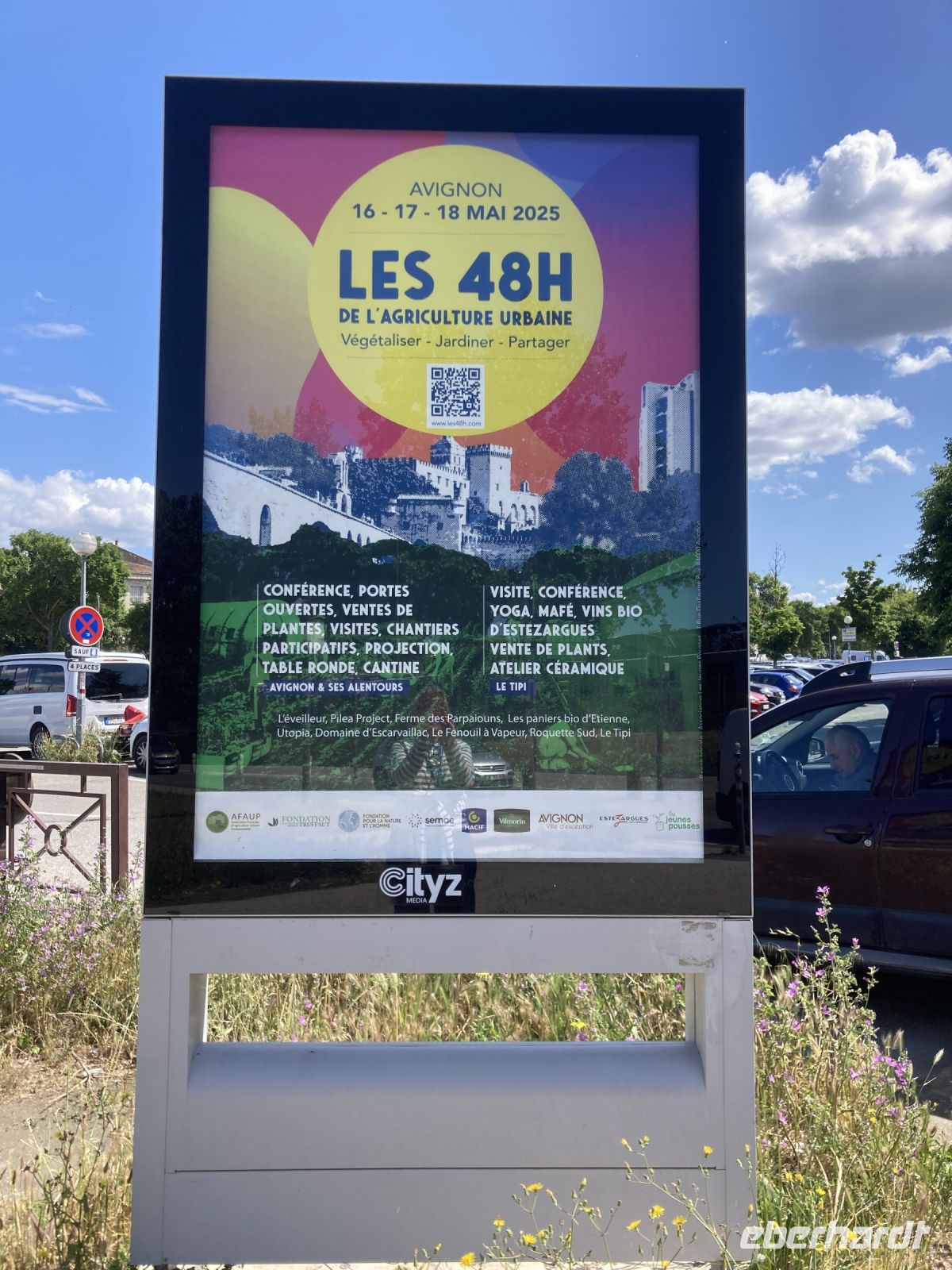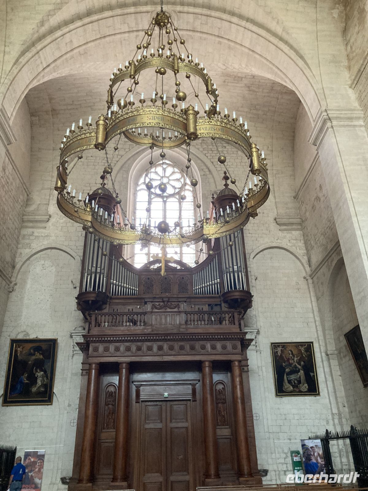 Ein voller Tag steht uns in Avignon zur Verfügung und diese Zeit lässt sich spielend in dieser besonderen Stadt verbringen. Der Vormittag ist dem Stadtrundgang gewidmet, der natürlich in Richtung Papstpalast führt. Die Gäste haben Gelegenheit den Palast auch von innen zu besichtigen. Allerdings hat die Saison schon begonnen und wir sind wahrlich nicht die einzigen Besucher in Avignon. Der Papstpalast ist heute nicht nur Museum, sondern auch Schauplatz des Avignoner Sommer: Zahlreiche Konzerte und Theateraufführungen finden hier statt, weshalb im Innenhof auch die Tribunen mit den Sitzplätzen aufgebaut sind. Noch hat der Theatersommer nicht begonnen und dennoch ist ein Teil des Palastes gesperrt. Louis Vuitton wir hier eine Modenschau präsentieren, weshalb schon die technischen Aufbauten vorgenommen werden. Wer mit offenen Augen durch Avignon läuft, entdeckt an einigen Fassaden Darstellungen von Theaterszenen und Fotos von bekannten Schauspielerinnen und Schauspielern, die in jungen Jahren hier im Sommer an Inszenierungen teilnahmen oder mit Regiegrößen diskutierten.