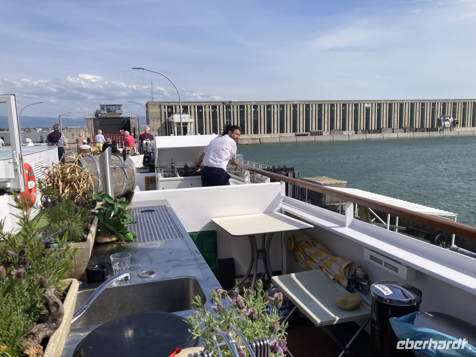 Johannes Paul II. kam hierher. Eine überlebensgroße Statue belegt dieses Ereignis. Wer in Lyon ist, kommt um gutes Essen nicht herum. In der unterliegenden Altstadt warten zahlreiche Restaurants auf ihre Gäste. Der Bouchon Lyonnais weist den Weg zu einer traditionellen Küche und natürlich dürfen die Traboules nicht fehlen. Was von außen wie der Eingang zu einem Privathaus aussieht, ist ein Wahrheit ein Labyrinth aus Durchgängen. Keine Angst, verlaufen können wir uns hier nicht. Doch eine Vielzahl von Häusern ist durch diese Durchgänge verbunden, um schnell trockenen Fußes Stoffballen sowie Waren vom Fluss zu den Händlern und Werkstätten zu schaffen. In Lyon sollen es 500 dieser Traboules, geben. Krönender Abschluss des Vormittages ist ein Besuch der Markthalle, die nach Paul Bocuse benannt ist. Eine historische Markthalle erwartet uns hier nicht, aber sie ist vom Warenangebot ein Ort, der selbst in Frankreich seinesgleichen sucht. Da der Anblick natürlich Appetit macht, geht es nun zum Mittagessen wieder an Bord. Wir bleiben nun in Lyon und haben noch Zeit, die Stadt individuell zu erkunden. Am Abend verabschiedet sich die Crew bei uns und bei guter Musik wird auch noch das Tanzbein geschwungen.