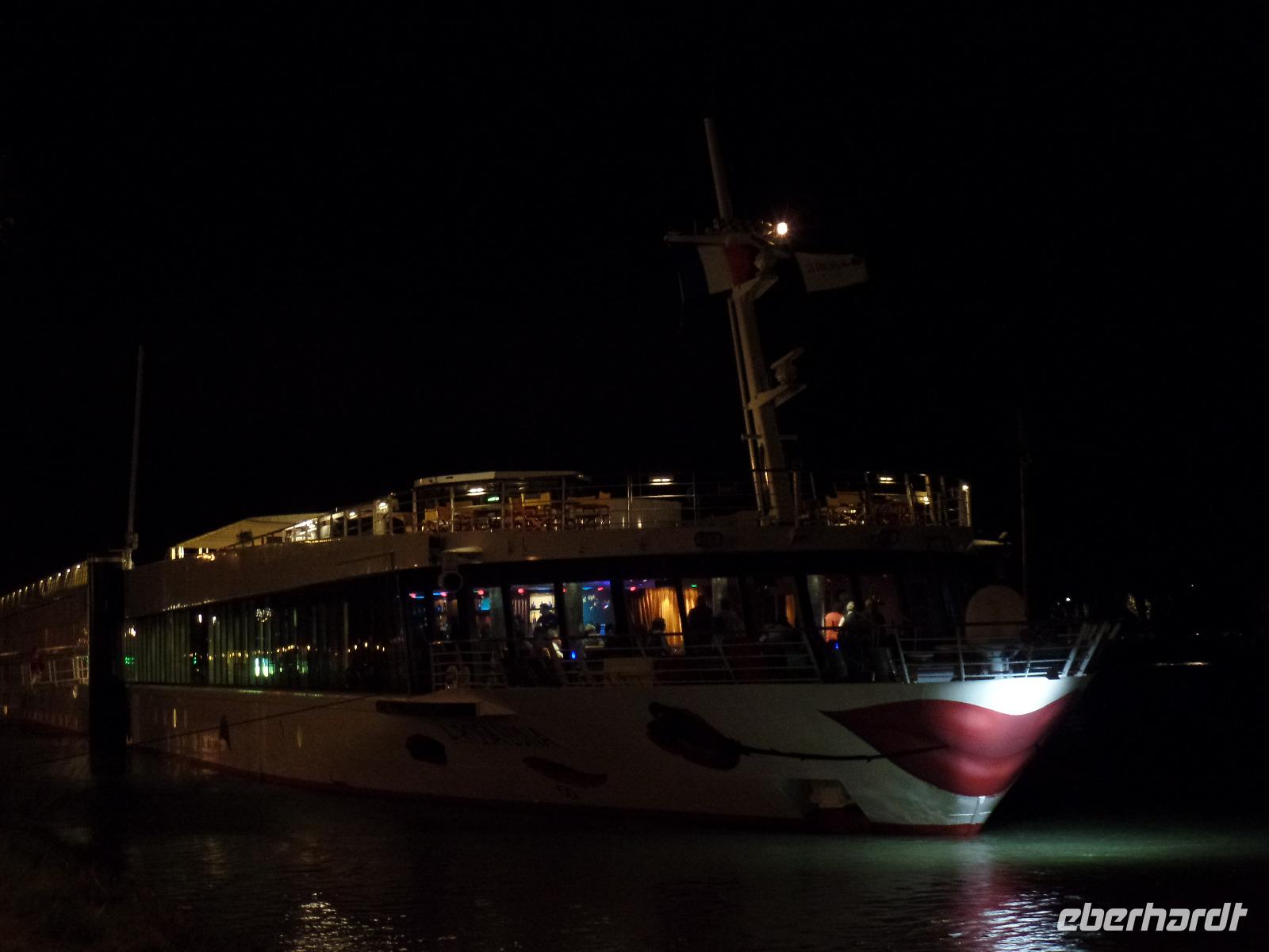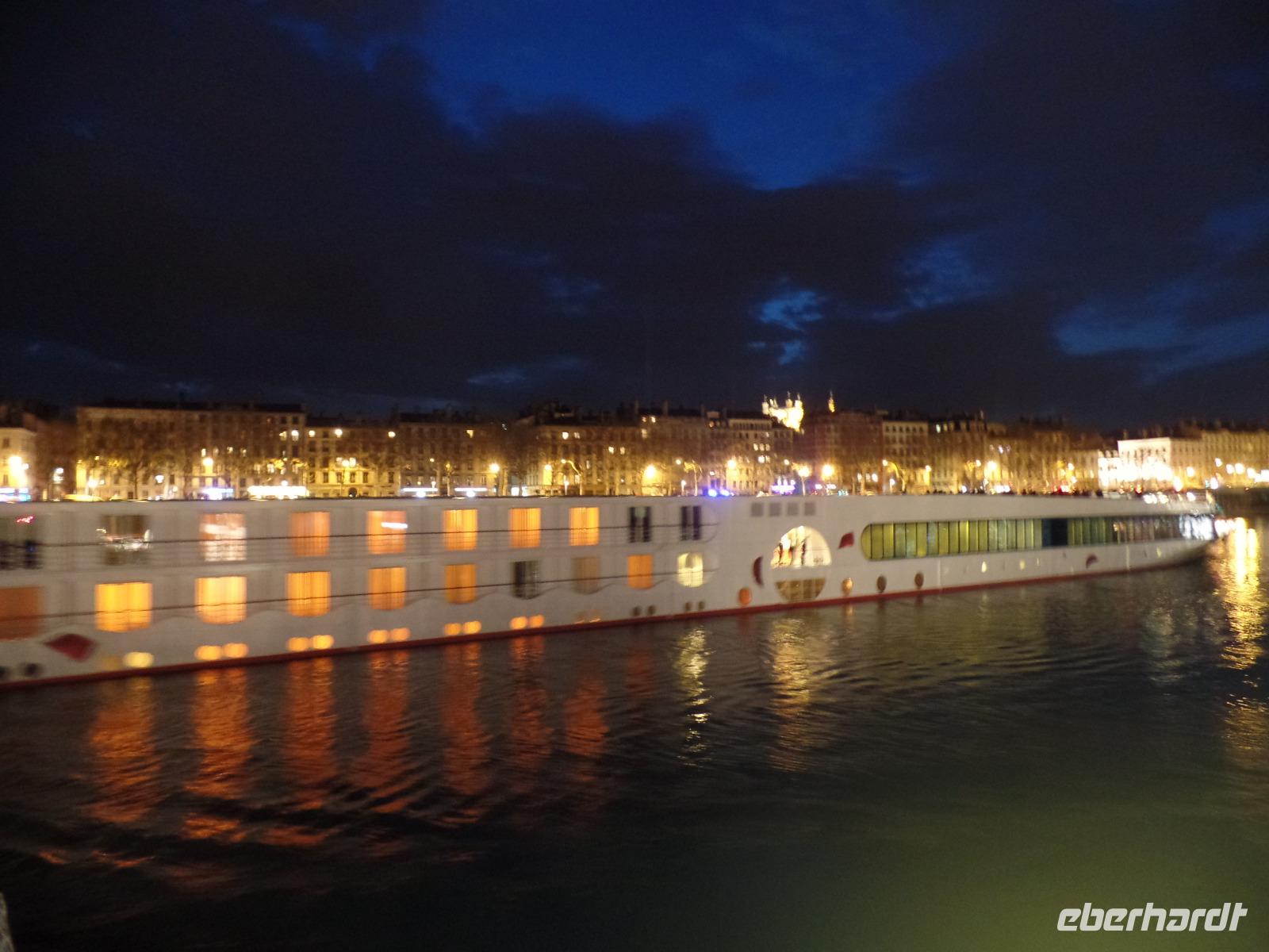 An Bord der AROSA LUNA wurden wir schon erwartet und herzlich mit einer Roten Rose begrüßt. Wir bezogen unsere Kabine und im Restaurant stand schon Kaffee und Kuchen bereit. Anschließend trafen wir uns an Deck und gemeinsam mit der Hotelmanager Herr Braun und Monika der Kreuzfahrtmanagerin um gemeinsam auf unsere Reise anzustoßen. Anschließend erfolgte ein Film über die Sicherheitsbestimmungen und das Leben an Bord. Die Ausflüge für die ersten 3 Tage wurden vorgestellt und einige Gäste buchten noch einige an der Rezeption. Nach dem ausreichenden Abendbuffet hieß es Leinen los. Die Arosa Luna verließ Lyon und in der Bar wurden wir mit Willkommens-Sekt an Bord begrüßt und die Offiziere wurden vorgestellt. Wir freuten uns auf eine schöne Kreuzfahrt.