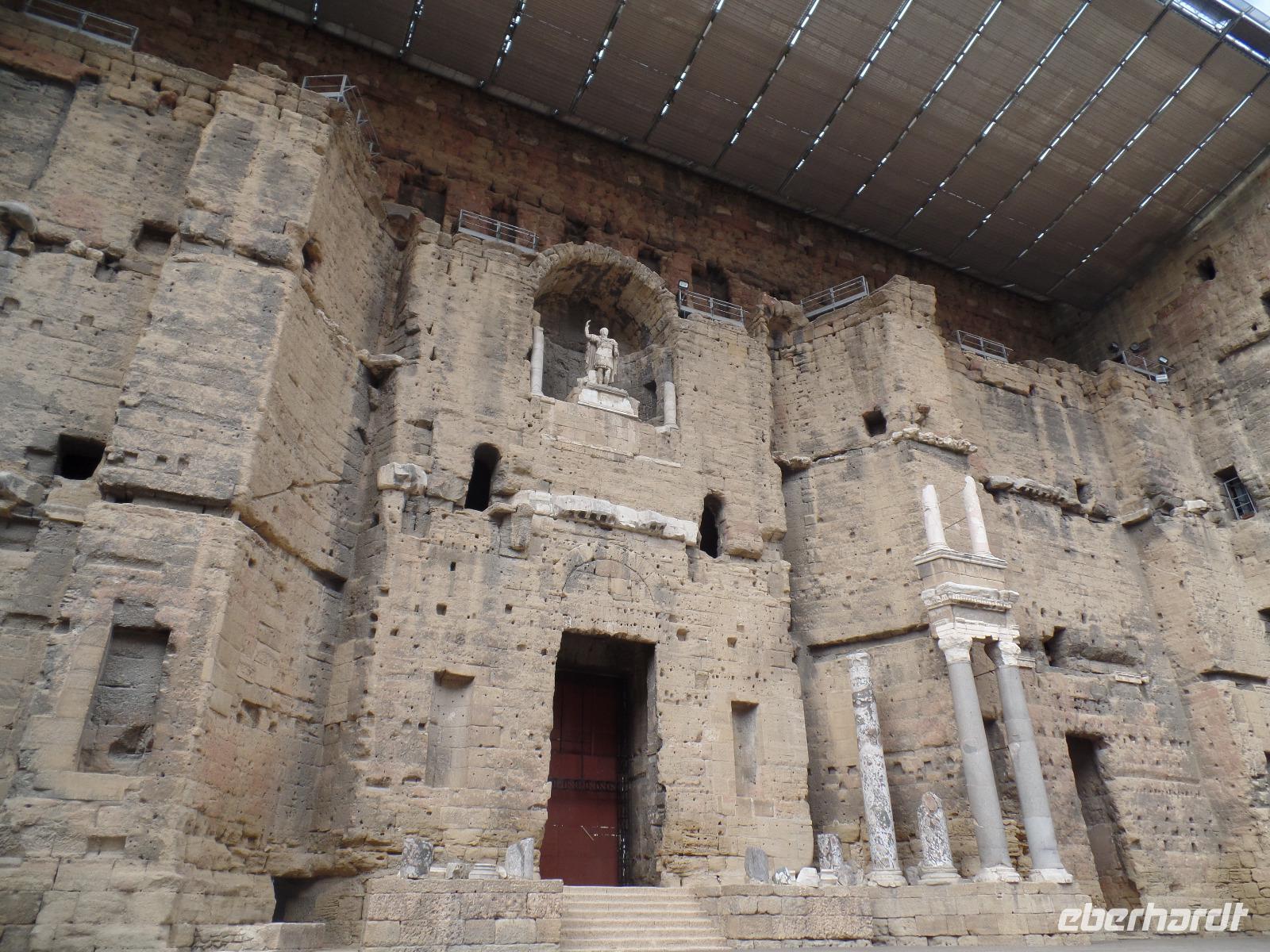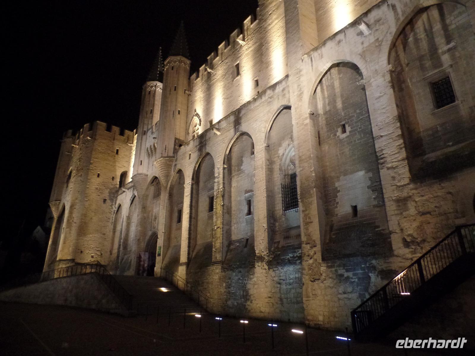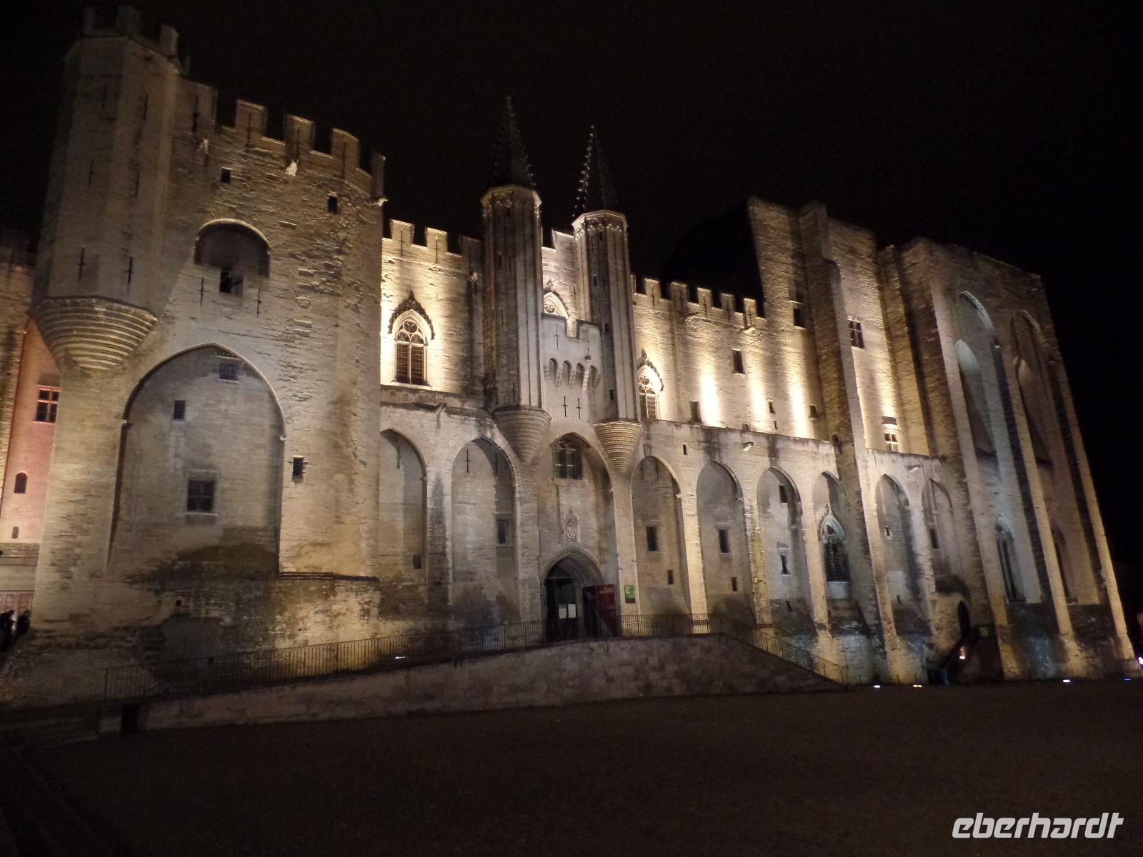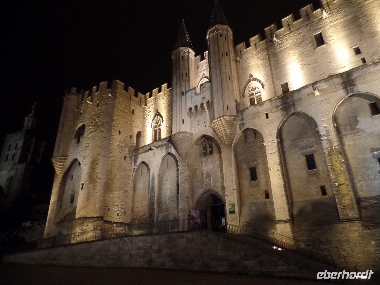 Gegen Nachmittag erreichten wir den Weinort Chateauneuf-du-Pape. Dieser Stopp diente nur zur Ausflugsabwicklung. Einige Gäste gingen mit mir von Bord um die Stadt Orange zu entdecken. Das Schiff vor weiter nach Avignon. In Chateauneuf-du-Pape fuhren wir durch den kleinen Weinort hinauf zum ehemaligen Sommerresidenz der Päpste. Leider sind nur noch einige Mauerreste erhalten. Doch von dort hatten wir einen schönen Blick in das Rhonetal, den Mont Ventoux, mit 1912 m der höchsten Berg der Provence und die Weinberge. Der Ort ist besonders durch den Weinanbau bekannt und berühmt. Allein 350 Winzer sind vor Ort. Vor allem Rotweine ca. 80% werden angebaut und in der ganzen Welt vermarktet. Nun fuhren wir weiter nach Orange. Besonders bekannt ist der Ort durch die zwei römischen Bauwerke, dem Triumphbogen das antike Amphitheater. Das Theater gehört zu den besterhaltenen in Europa. Jedes Jahr im Sommer finden Veranstaltungen statt und erfreuen ca. 9000 Besucher. Es ist schon beeindruckend wenn man mitten drin steht und auf die Bühne schaut. Beide Bauwerke gehören zum UNESCO Weltkulturerbe. Nach einem kurzen Stadtbummel fuhren wir weiter nach Avignon. Die AROSA legte gerade an und ein tolles Buffet erwartete uns. Da wir über Nacht in Avignon blieben nutzten wir die Gelegenheit für einen abendlichen Ausflug durch das beleuchtete Avignon. Wir waren alle begeistert.