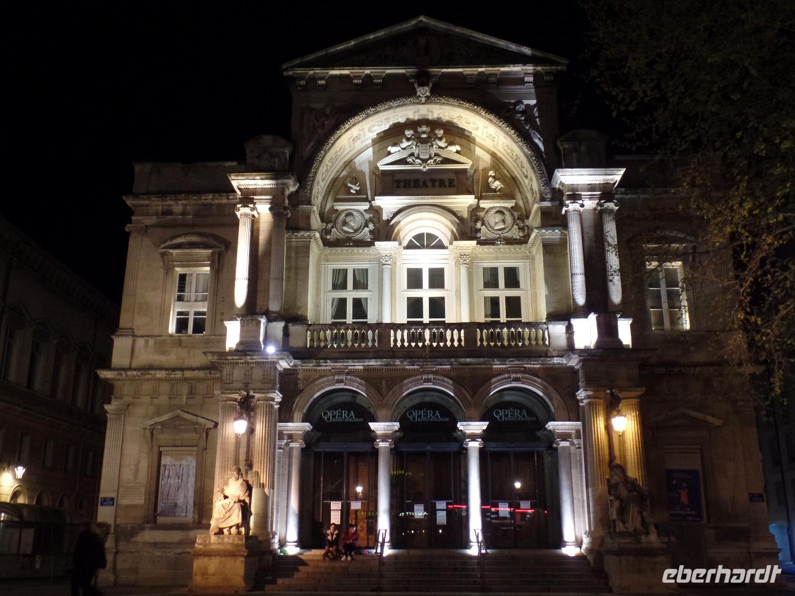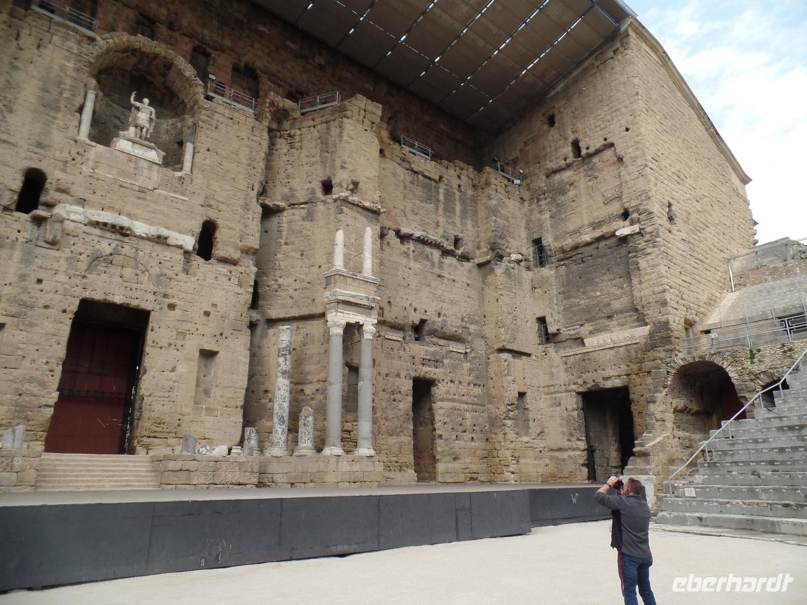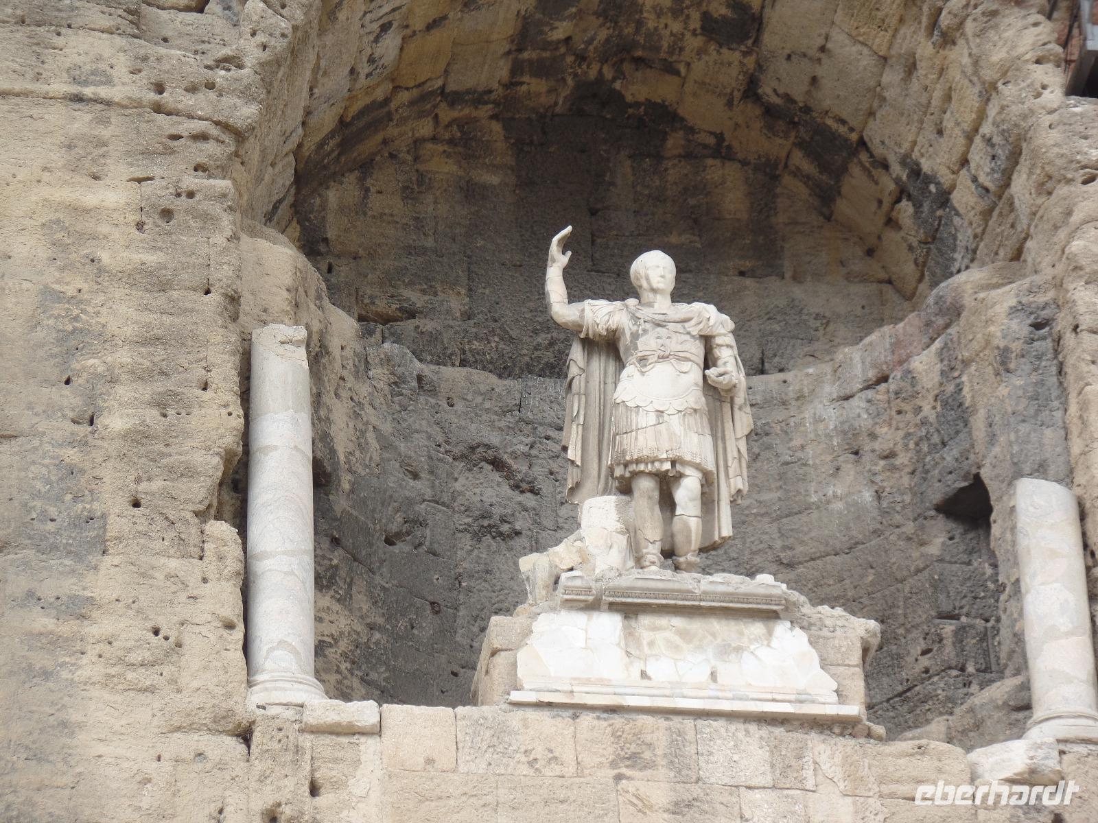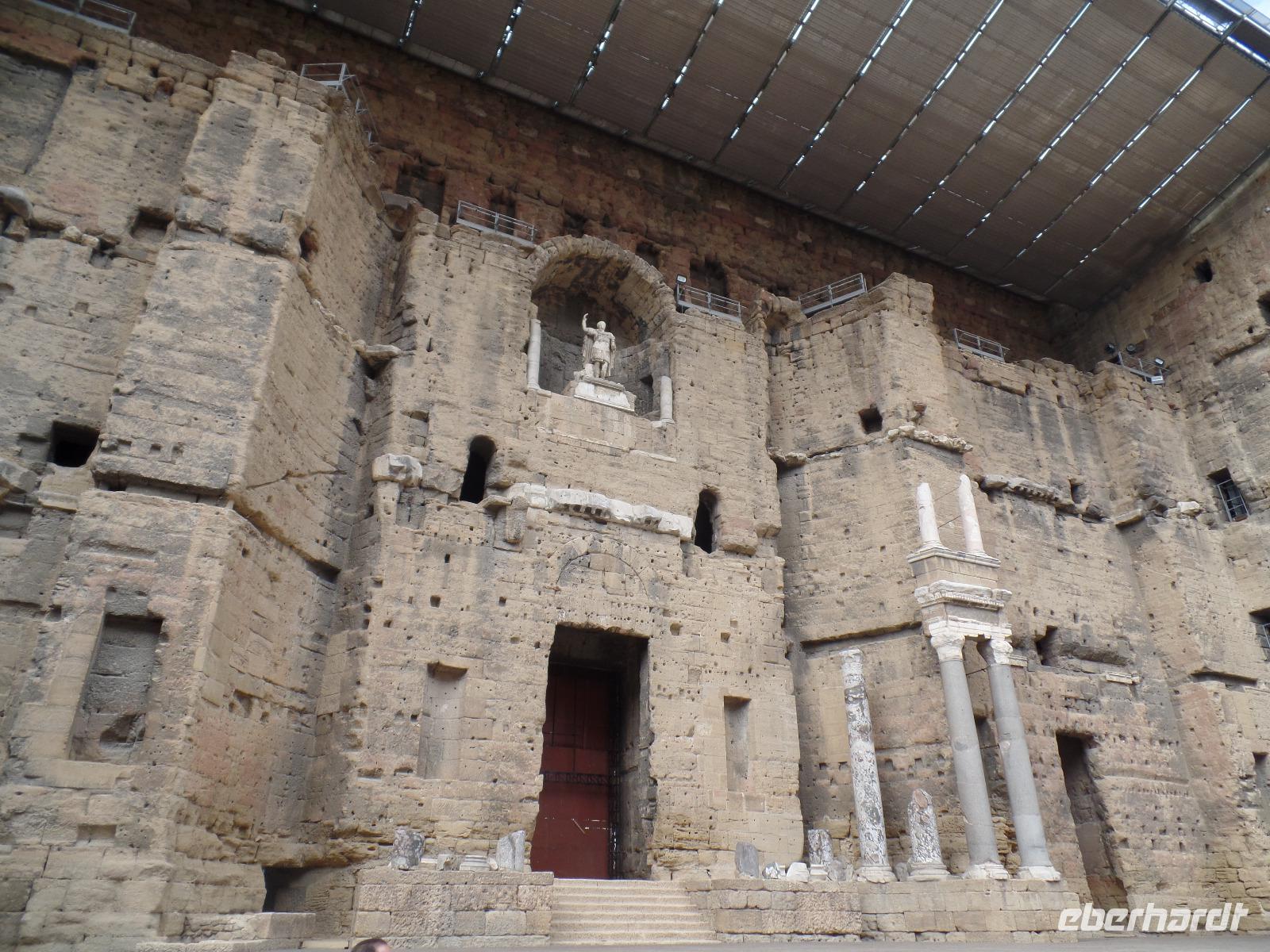 Gegen Nachmittag erreichten wir den Weinort Chateauneuf-du-Pape. Dieser Stopp diente nur zur Ausflugsabwicklung. Einige Gäste gingen mit mir von Bord um die Stadt Orange zu entdecken. Das Schiff vor weiter nach Avignon. In Chateauneuf-du-Pape fuhren wir durch den kleinen Weinort hinauf zum ehemaligen Sommerresidenz der Päpste. Leider sind nur noch einige Mauerreste erhalten. Doch von dort hatten wir einen schönen Blick in das Rhonetal, den Mont Ventoux, mit 1912 m der höchsten Berg der Provence und die Weinberge. Der Ort ist besonders durch den Weinanbau bekannt und berühmt. Allein 350 Winzer sind vor Ort. Vor allem Rotweine ca. 80% werden angebaut und in der ganzen Welt vermarktet. Nun fuhren wir weiter nach Orange. Besonders bekannt ist der Ort durch die zwei römischen Bauwerke, dem Triumphbogen das antike Amphitheater. Das Theater gehört zu den besterhaltenen in Europa. Jedes Jahr im Sommer finden Veranstaltungen statt und erfreuen ca. 9000 Besucher. Es ist schon beeindruckend wenn man mitten drin steht und auf die Bühne schaut. Beide Bauwerke gehören zum UNESCO Weltkulturerbe. Nach einem kurzen Stadtbummel fuhren wir weiter nach Avignon. Die AROSA legte gerade an und ein tolles Buffet erwartete uns. Da wir über Nacht in Avignon blieben nutzten wir die Gelegenheit für einen abendlichen Ausflug durch das beleuchtete Avignon. Wir waren alle begeistert.