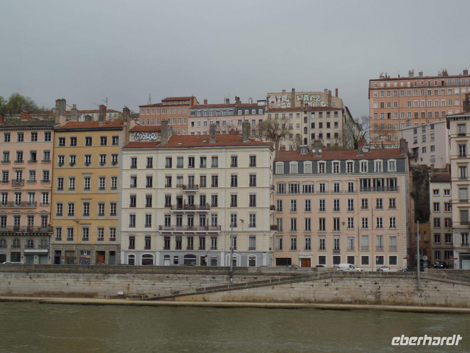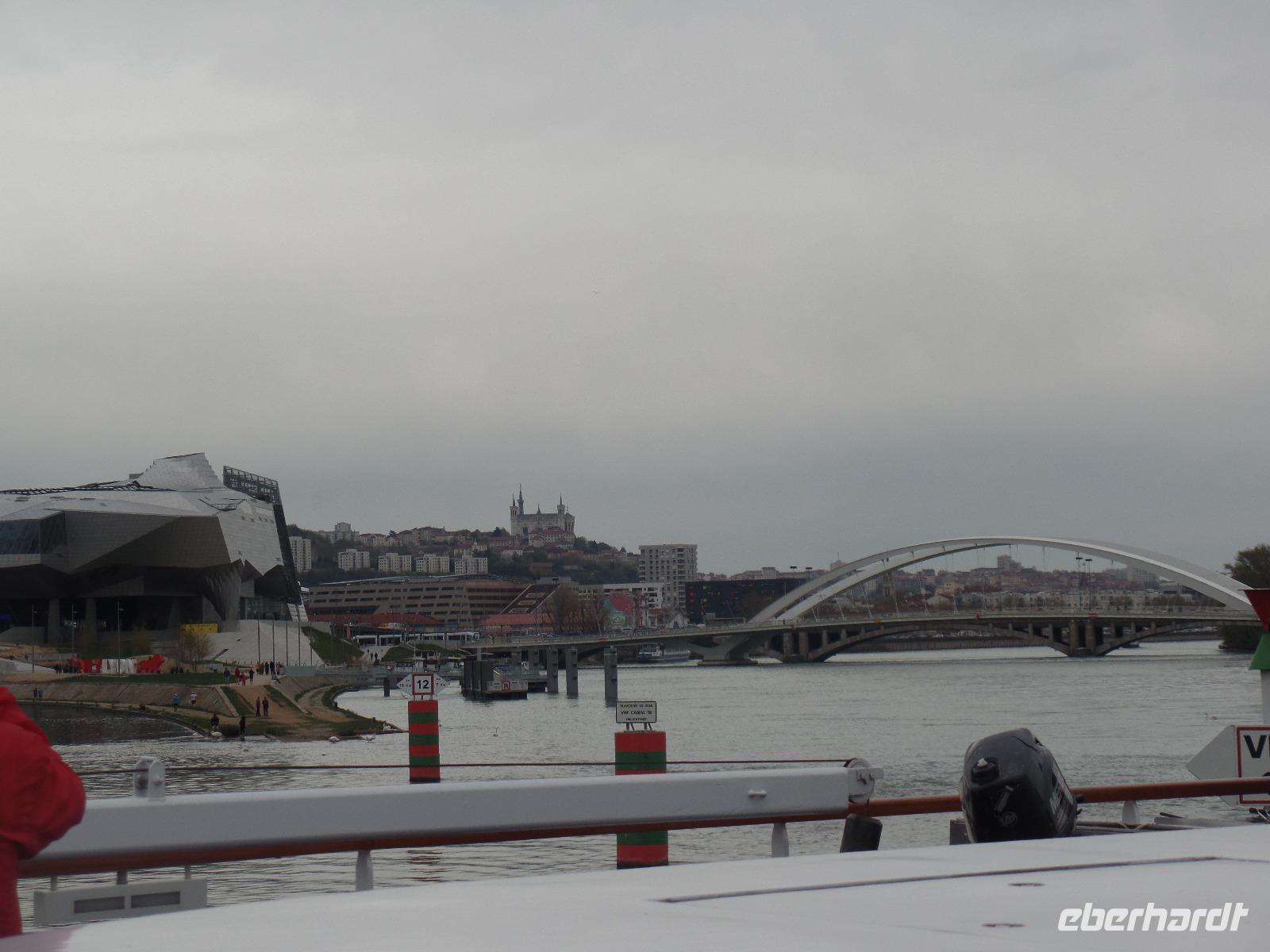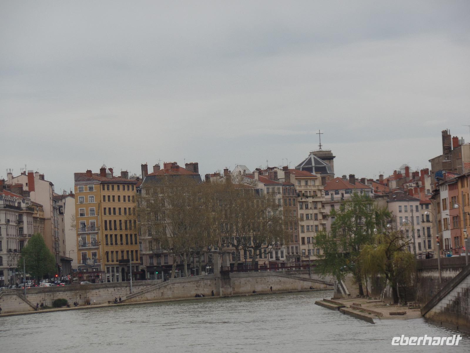 Am frühen Morgen erreichten wir wieder Lyon. Wir unternahmen eine Stadtrundfahrt. Doch zuerst besuchten wir eine Seidendruckerei. Die Seide hat Lyon reich und berühmt gemacht. Auf einem Hügel der Stadt befindet sich der Stadtteil der ehemaligen Seidenweber. In der Druckerei konnten wir sehen wie an Hand von Schablonen die Seidentücher gedruckt werden. Für jede Farbe gibt es eine eigene Schablone. Je nach Motiv benötigt man bis zu 10 Schablonen. Am Platz des Terreaux wo sich auch das Rathaus befindet, wartete der Bus. Nun fuhren wir auf den Hügel Fourviere. An einem Model der Stadt hatte man einen guten Überblick über die Aufteilung der Stadt. Nach der Besichtigung der Kathedrale Notre Dame de Fourviere fuhren wir in die Altstadt Vieux Lyon. Dabei bestaunten wir die schönen Renaissance Bauten und die verwinkelten Gassen. Besonders interessant waren die Trabouliers, die versteckten Gänge. Nach dem Mittagessen konnte man Lyon noch auf eigene Faust erkunden. Gegen 18.00 Uhr legte unser Schiff ab und eine romantische Fahrt erwartete uns. Wir fuhren als erstes AROSA Schiff in dieser Saison auf die Saone. Der Hotelmanager teilte uns mit das wir auf Grund von Hochwasser nur bis Marcon fahren konnten. Aber das konnte unsere Freude nicht trüben. Begleitet von schöner Musik und einigen Erläuterungen von Monika verlassen wir Lyon vorbei an der Altstadt und einer kleinen Insel.