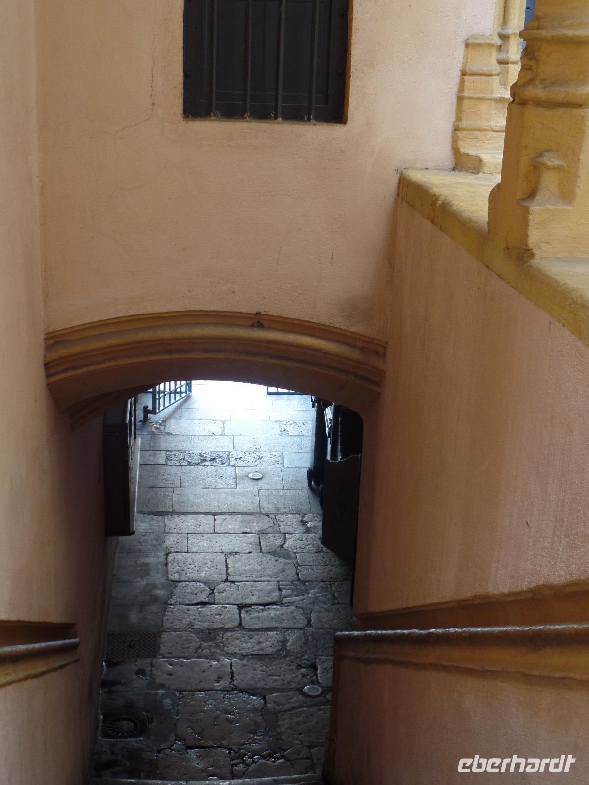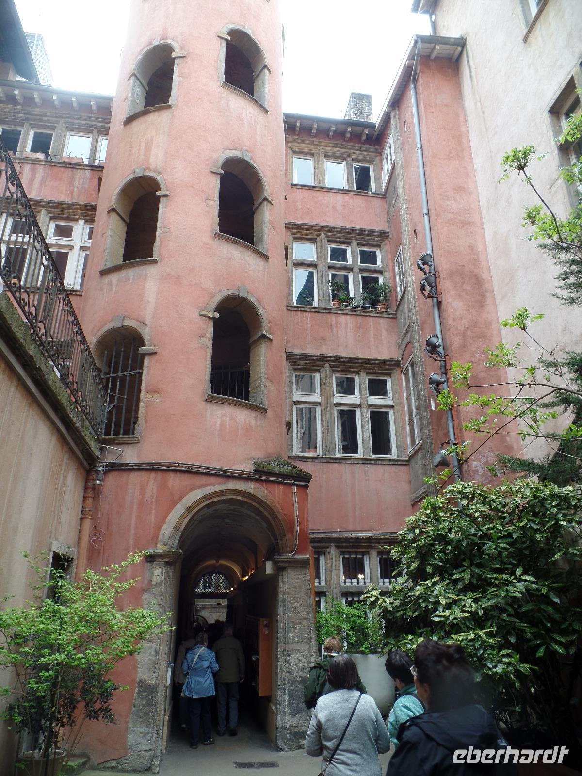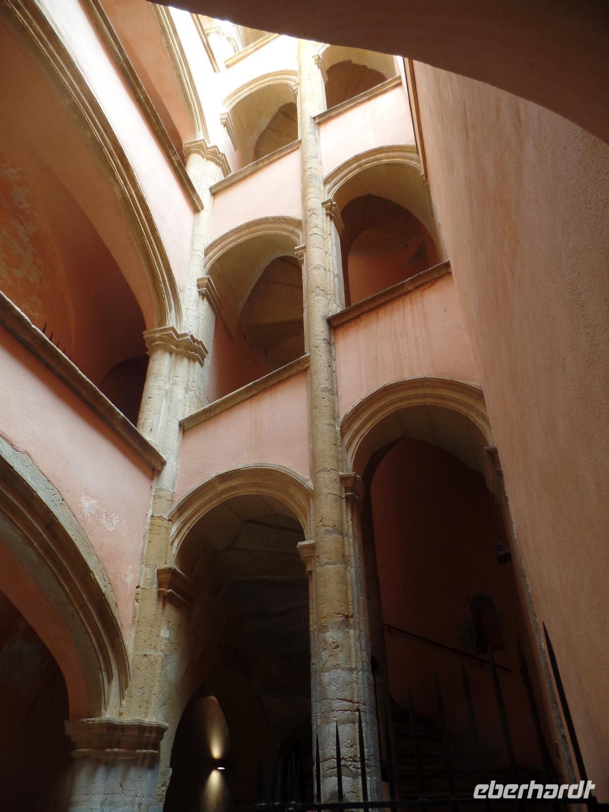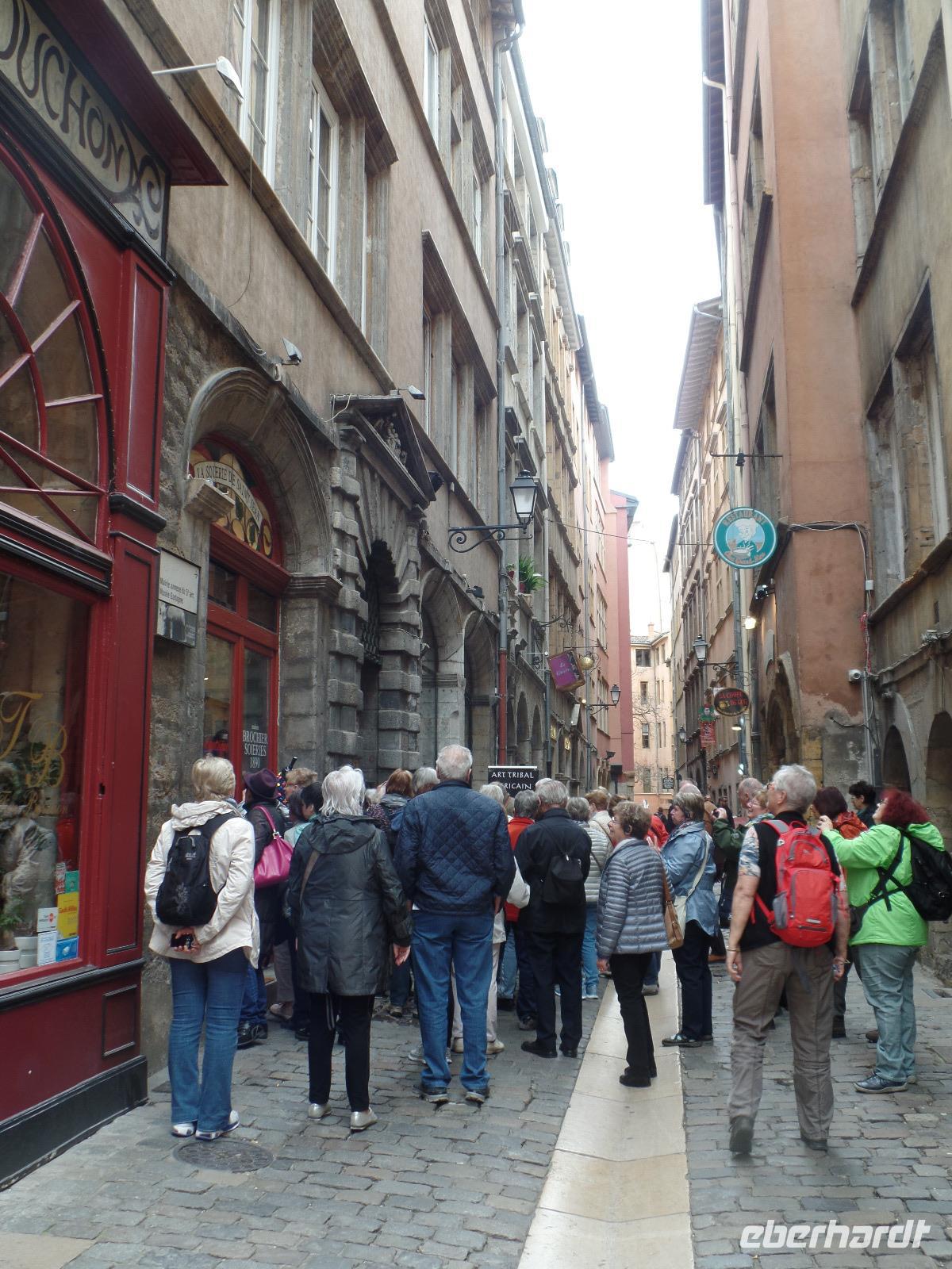 Am frühen Morgen erreichten wir wieder Lyon. Wir unternahmen eine Stadtrundfahrt. Doch zuerst besuchten wir eine Seidendruckerei. Die Seide hat Lyon reich und berühmt gemacht. Auf einem Hügel der Stadt befindet sich der Stadtteil der ehemaligen Seidenweber. In der Druckerei konnten wir sehen wie an Hand von Schablonen die Seidentücher gedruckt werden. Für jede Farbe gibt es eine eigene Schablone. Je nach Motiv benötigt man bis zu 10 Schablonen. Am Platz des Terreaux wo sich auch das Rathaus befindet, wartete der Bus. Nun fuhren wir auf den Hügel Fourviere. An einem Model der Stadt hatte man einen guten Überblick über die Aufteilung der Stadt. Nach der Besichtigung der Kathedrale Notre Dame de Fourviere fuhren wir in die Altstadt Vieux Lyon. Dabei bestaunten wir die schönen Renaissance Bauten und die verwinkelten Gassen. Besonders interessant waren die Trabouliers, die versteckten Gänge. Nach dem Mittagessen konnte man Lyon noch auf eigene Faust erkunden. Gegen 18.00 Uhr legte unser Schiff ab und eine romantische Fahrt erwartete uns. Wir fuhren als erstes AROSA Schiff in dieser Saison auf die Saone. Der Hotelmanager teilte uns mit das wir auf Grund von Hochwasser nur bis Marcon fahren konnten. Aber das konnte unsere Freude nicht trüben. Begleitet von schöner Musik und einigen Erläuterungen von Monika verlassen wir Lyon vorbei an der Altstadt und einer kleinen Insel.