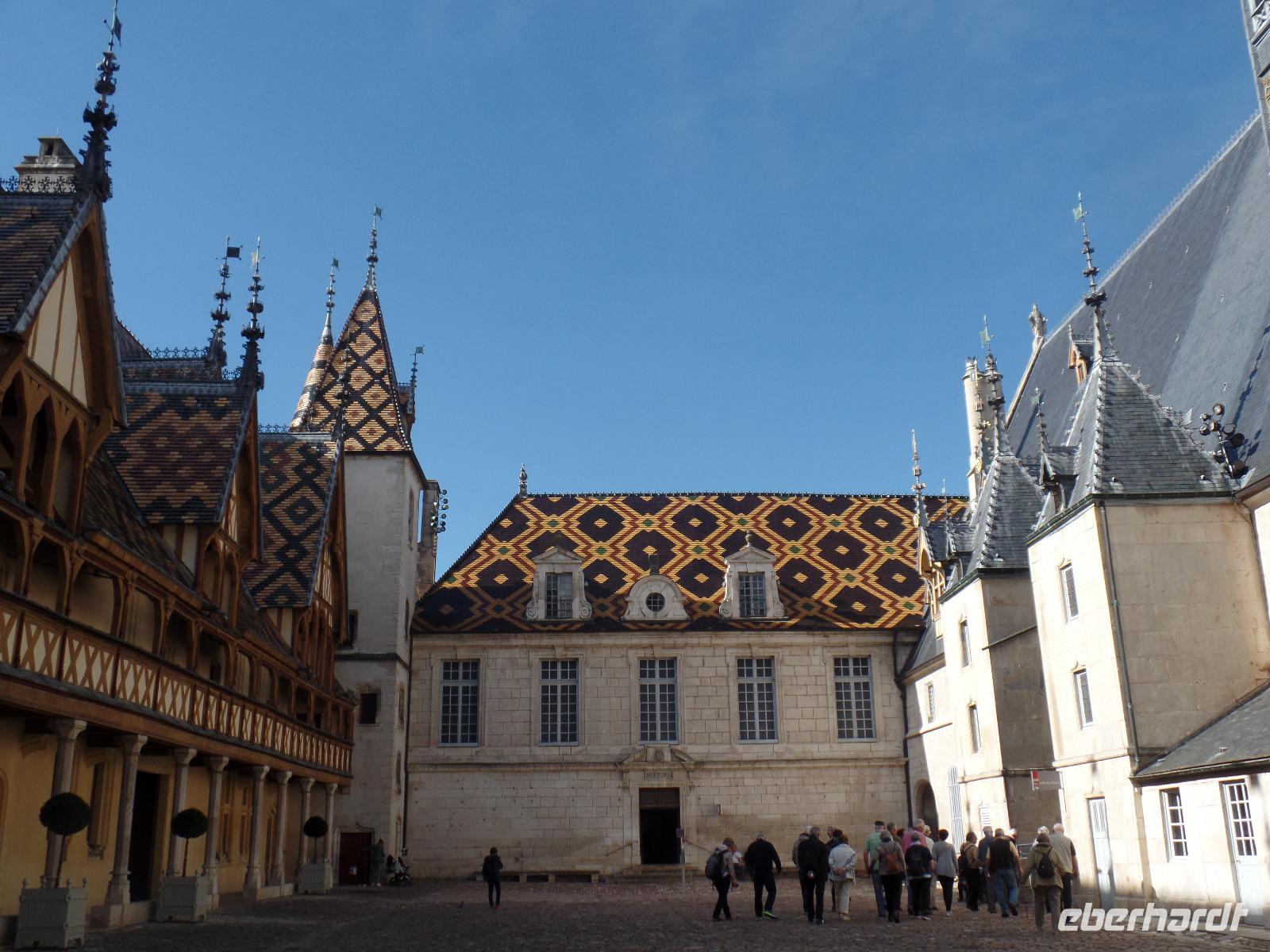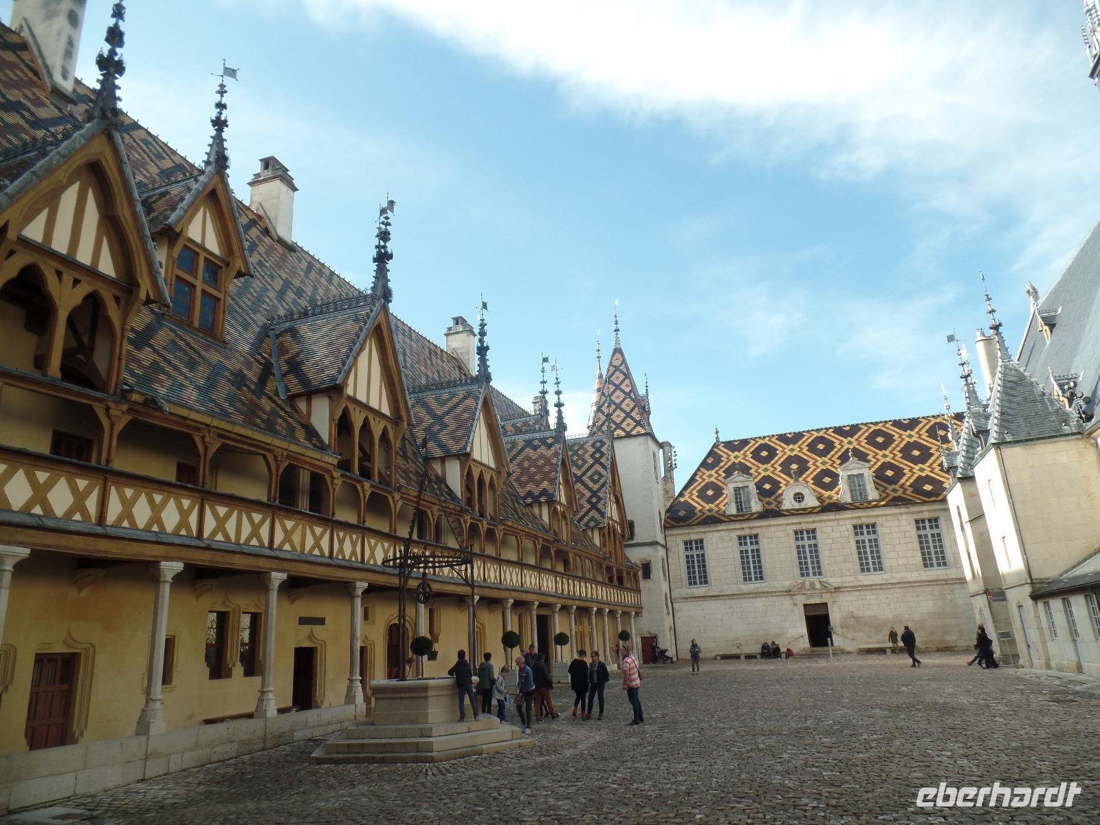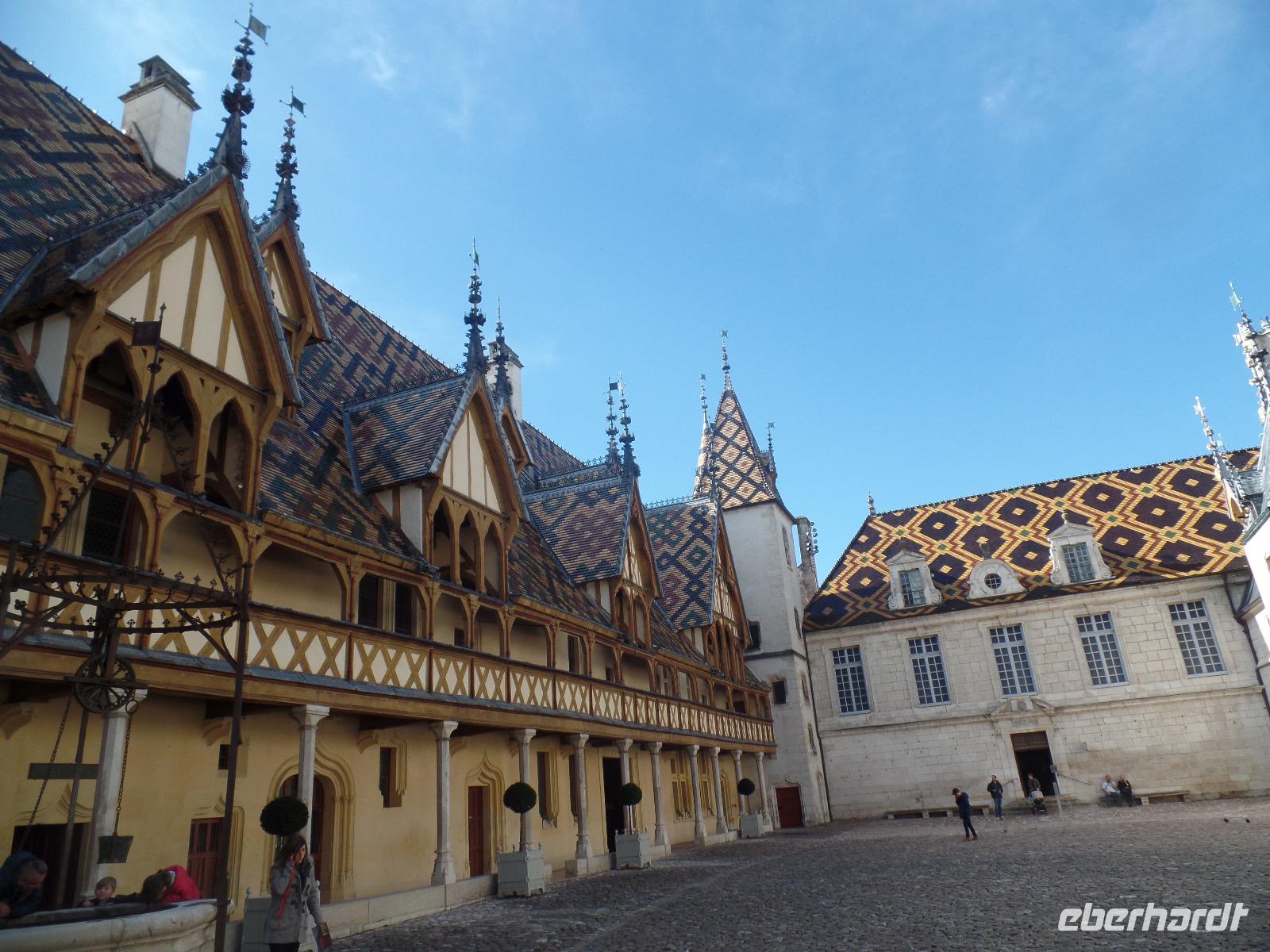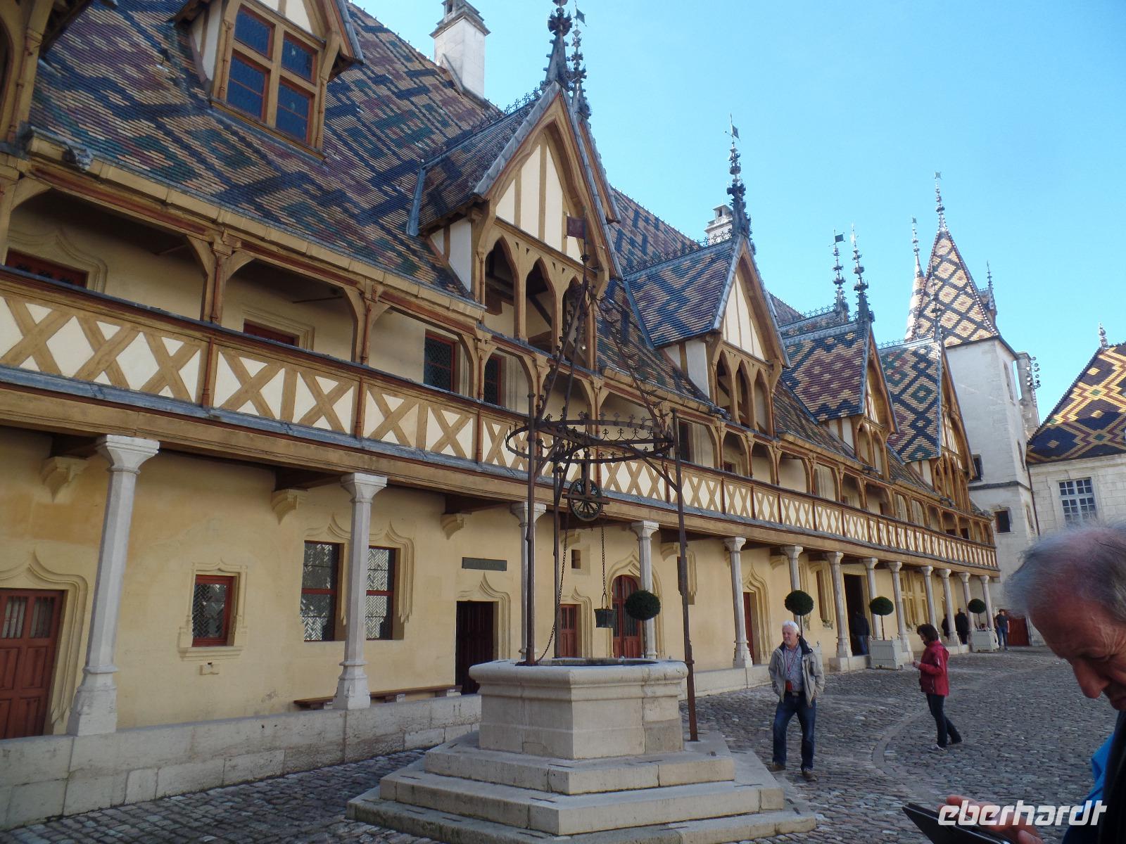 Am Morgen lagen wir in der Nähe von der Altstadt von Marcon. Damit hatten wir Zeit die Stadt zu entdecken. Am Nachmittag führte unser Ausflug in das Weinanbaugebiet des Burgund. Wir genossen die schöne Landschaft und die Weinberge. Wir erreichten Beaune und besichtigten das berühmte Hotel-Dieu. So nennt man die ehemaligen Krankenhäuser. Diese gab es in vielen Städten. Da jedoch dieses noch bis 1971 als Krankenhaus genutzt wurde war es gut erhalten und wurde zum Museum ausgebaut. Beindruckend waren die farbigen Dächer und die schönen Dachgauben die schon von weitem zu sehen waren. Sehenswert waren die Krankenzimmer besonders der große Armensaal mit seiner buntbemalten Decke. Kaum vorstellbar das hier die Kranken untergebracht wurden. Oft mussten sich jeweils zwei ein Bett teilen. In einem anderen Seitenflügel befinden sich die Küche und die Alte Apotheke. Ein lohnenswerter Ausflug.