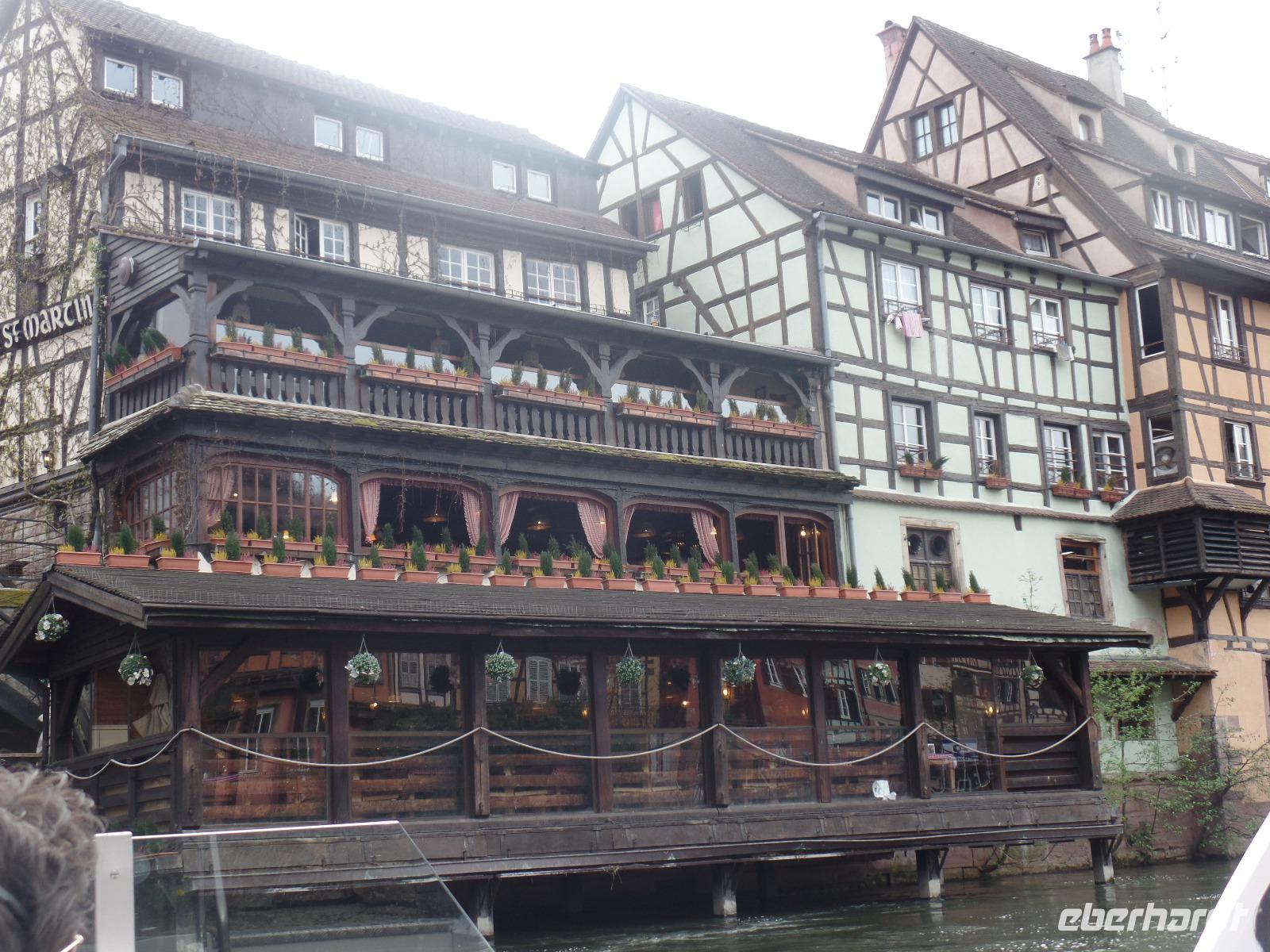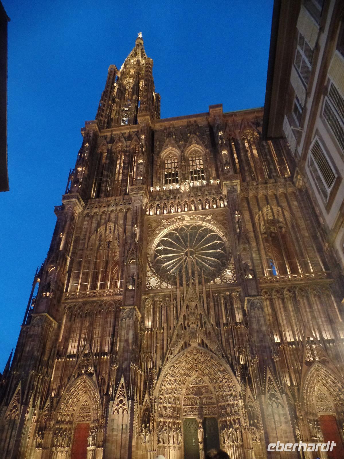 Leider mussten wir Abschied nehmen von unserem schwimmenden Hotel. Unser Busfahrer Jan war pünktlich am Schiff und wir fuhren zurück nach Straßburg. Gemeinsam spazierten wir zum berühmten Straßburger Münster. Wir nutzten die Zeit für einen Besuch des Münsters mit seiner Silbermann Orgel und der Astronomischen Uhr. Nun freuten wir uns auf die Bootsfahrt auf der Ill. Neben den verschieden Stilepochen war natürlich das Viertel La Petite France sehr sehenswert. Im Restaurant Le Flamm kehrten wir zum Flammkuchenessen ein. Flammkuchen so viel wir wollten ob herzhaft oder süß. Die verschiedenen Arten waren sehr lecker. Ein besonderer Höhepunkt war das beleuchtete Straßburg. Besonders das wunderschön angestrahlte Münster. Untermalt wurde das ganze durch eine Gruppe Musiker. Ein toller Abschluss unserer schönen Reise.