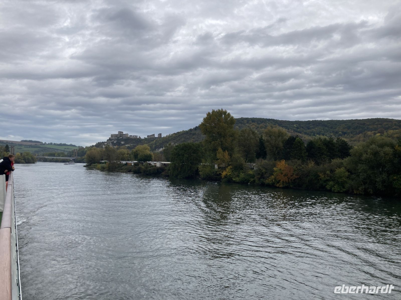 Auf der Hinfahrt haben einige sie es schon gesehen: Über Les Andelys thront das Château Gaillard - besser, was davon übrig geblieben ist. Denn heute sehen wir nur noch einen kleinen Teil dieser mächtigen Verteidigungsanlage. Richard Löwenherz nutzte den vom Papst angeordneten Frieden, um das Bauprojekt 1196 zu starten. In nur wenigen Jahren, es wird von zwei Jahren gesprochen, wurde der Bau vollendet. Mit dem Tod Richards folgte auch schon die erste Belagerung. Johann Ohneland folgte auf den Thron. Philipp August musste am 22.Mai 1200 Johann als Erben anerkennen. Doch diese Ruhe währte nicht lang. Im Jahre 1202 beginn erneut ein Krieg zwischen den Franzosen und Normannen. Ob die Franzosen tatsächlich durch die Latrine in die Festung vorgedrungen sind, wie es eine Legende übermittelt oder doch eher durch ein Fenster in der Kapelle, bleibt im Bereich der Spekulation. Tatsächlich ergab sich die Garnison im März 1204, womit das Ende der Verteidigungsanlage und Schicksal der Normannen in der Normandie besiegelt war. Im weiteren Verlauf geriet sie im Hundertjährigen Krieg nochmals in die Händen der Engländer. Château Gaillard wurde im 17. Jahrhundert geschleift und diente als Steinbruch. Nach einem kleinen Rundgang geht es wieder auf das Schiff, welchen nun den Weg nach Vernon einschlägt.Der Nachmittag steht im Zeichen des Impressionismus. Für viele in der Garten von Claude Monet ein weiterer Höhepunkt der Reise. Viele seiner Gemälde, allen voran die Seerosen, haben hier ihren Ursprung. In der jetzigen Jahreszeit haben die spätsommerlichen Blumen die Oberhand gewonnen. Orange und dunkle Rottöne bestimmen die Farbpalette. Der Himmel ist mit uns gnädig. Nur auf dem kurzen Weg vom Bus zum Schiff erwischen uns einige Tropfen. Bis in den frühen Morgen verbleibt das Schiff in Rouen. Einige Gäste lassen sich heute Abend beim Wine und Dine verwöhnen. Gemeinsam genießen wir einen weiteren Auftritt der Gastkünstlerin Desirée Neumann.