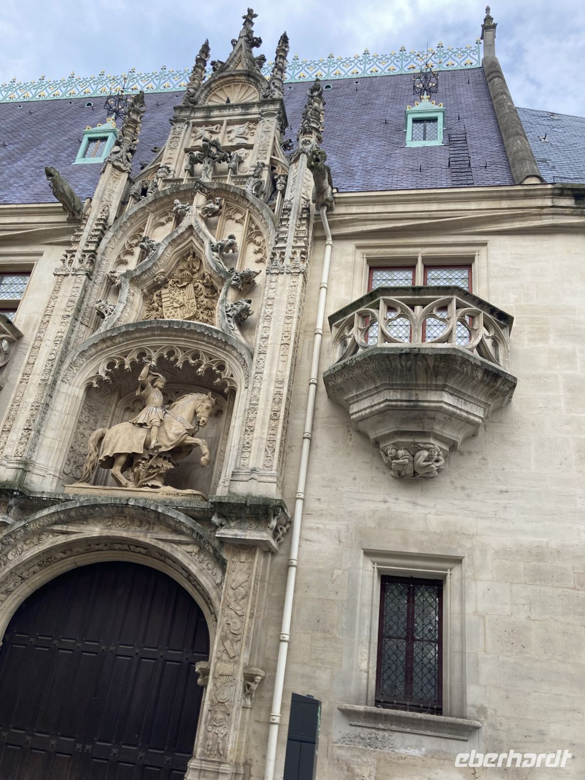 Da wir es heute bis zur Einschiffung im Nordosten von Paris nicht sehr weit haben, wollen wir die Zeit nutzen um Reims ein wenig besser kennenzulernen. Immerhin sind wir in der Stadt, wo die meisten französischen Könige gekrönt wurde und ein edles Getränk hat hier auch eine Heimat gefunden. Wir verbinden den kurzen Weg zur Kathedrale mit einer kleinen Stadtrundfahrt. Die Place Royale auf der das Denkmal für Ludwig XV. Zuerst trug er den Beinamen „der Vielgeliebte“. Doch später sollte er zum „Ungeliebten“ werden. Geliebt wurde er, da er durch eine geschickte Heiratspolitik die Fede mit Österreich beendete. Zum Ungeliebten wurden er wegen der Missstände, die dann schließlich zur Revolution führten. Unser Bus parkiert dann direkt an der Kathedrale und schon der Fußweg zum Westportal eröffnet uns den Blick auf die wunderbaren Steinmetzarbeiten. Für unsere Flusskreuzfahrt in die Normandie ist Reims ein ausgezeichneter Auftakt. Schließlich führte die junge Jeanne d’Arc hier den Dauphin zur Krönung. Als Charles VII. sollte er dann ab 1429 die Geschicke Frankreichs lenken.Für Jeanne d’Arc wird die Geschichte ein anderes Schicksal bereithalten. In Rouen werden wir ihr erneut begegnen.