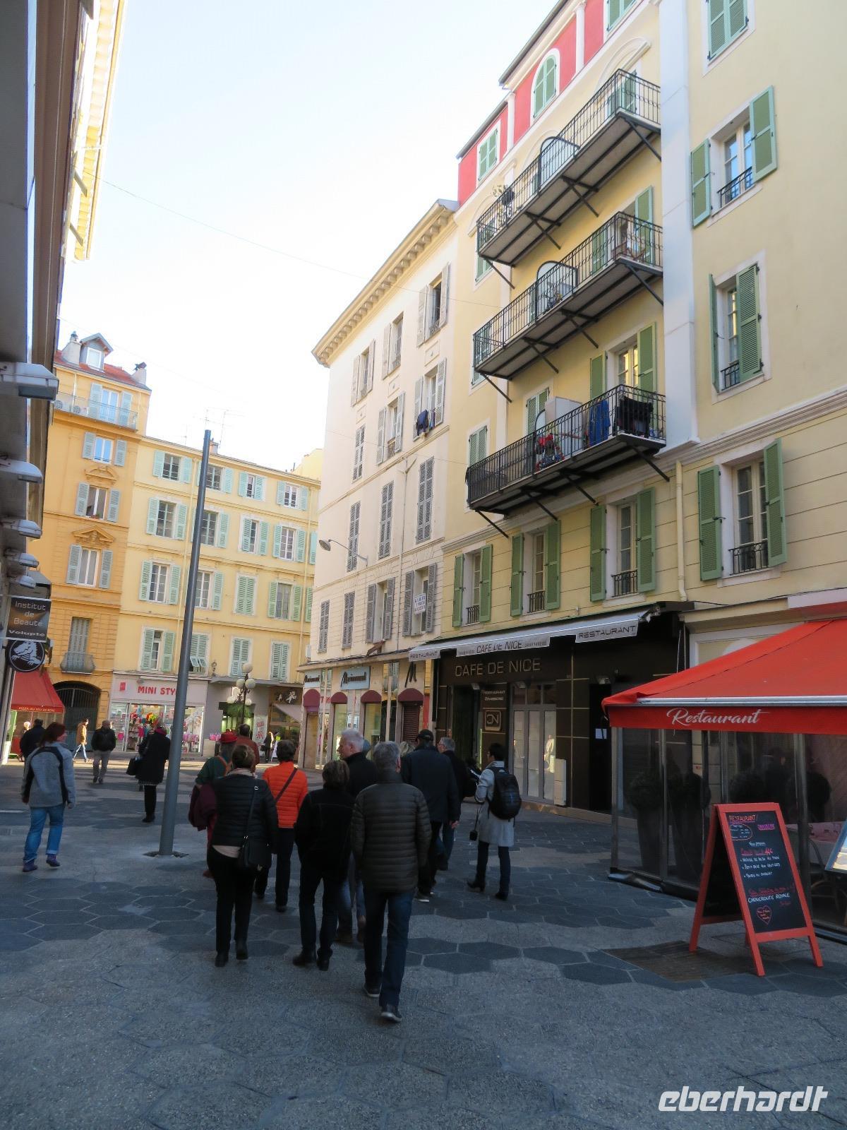 Nach dem Einchecken in unser Boutique-Hotel in einem vornehmen Stadtviertel der Neustadt von Nizza tauchen wir in die engen Gassen der „Vieille Ville" (Altstadt) ein, wo wir den Eindruck haben, in einer italienischen Stadt zu sein! Kein Wunder, denn bis 1860 gehörte Nizza zu Savoyen-Piemont beziehungsweise zum Königreich Sardinien.