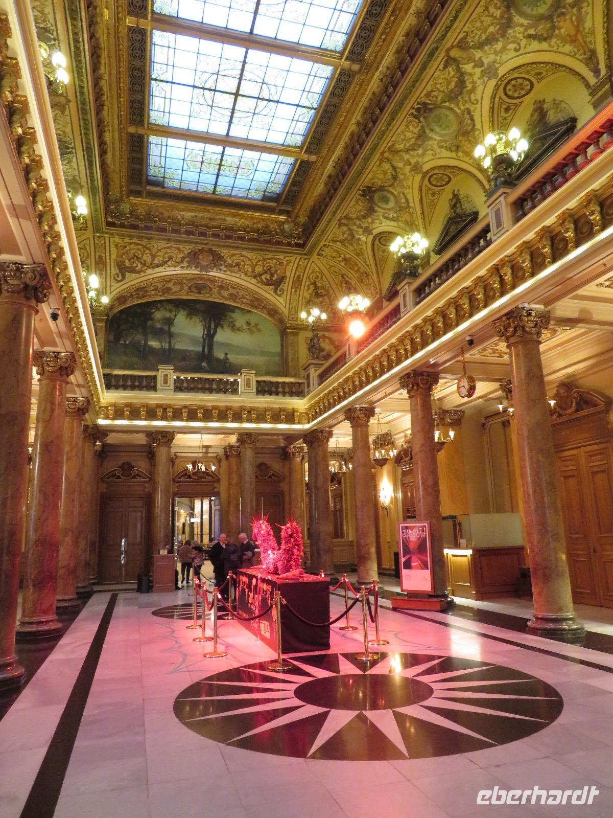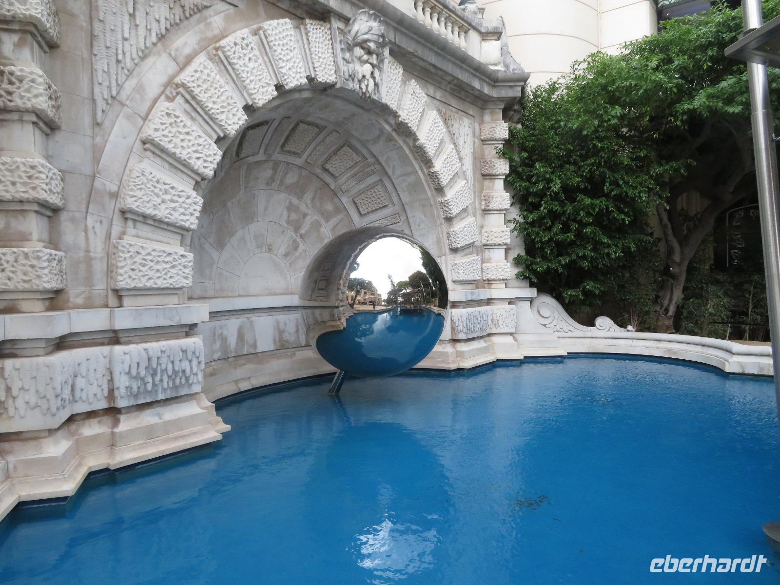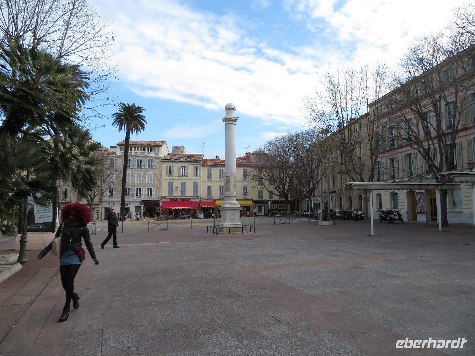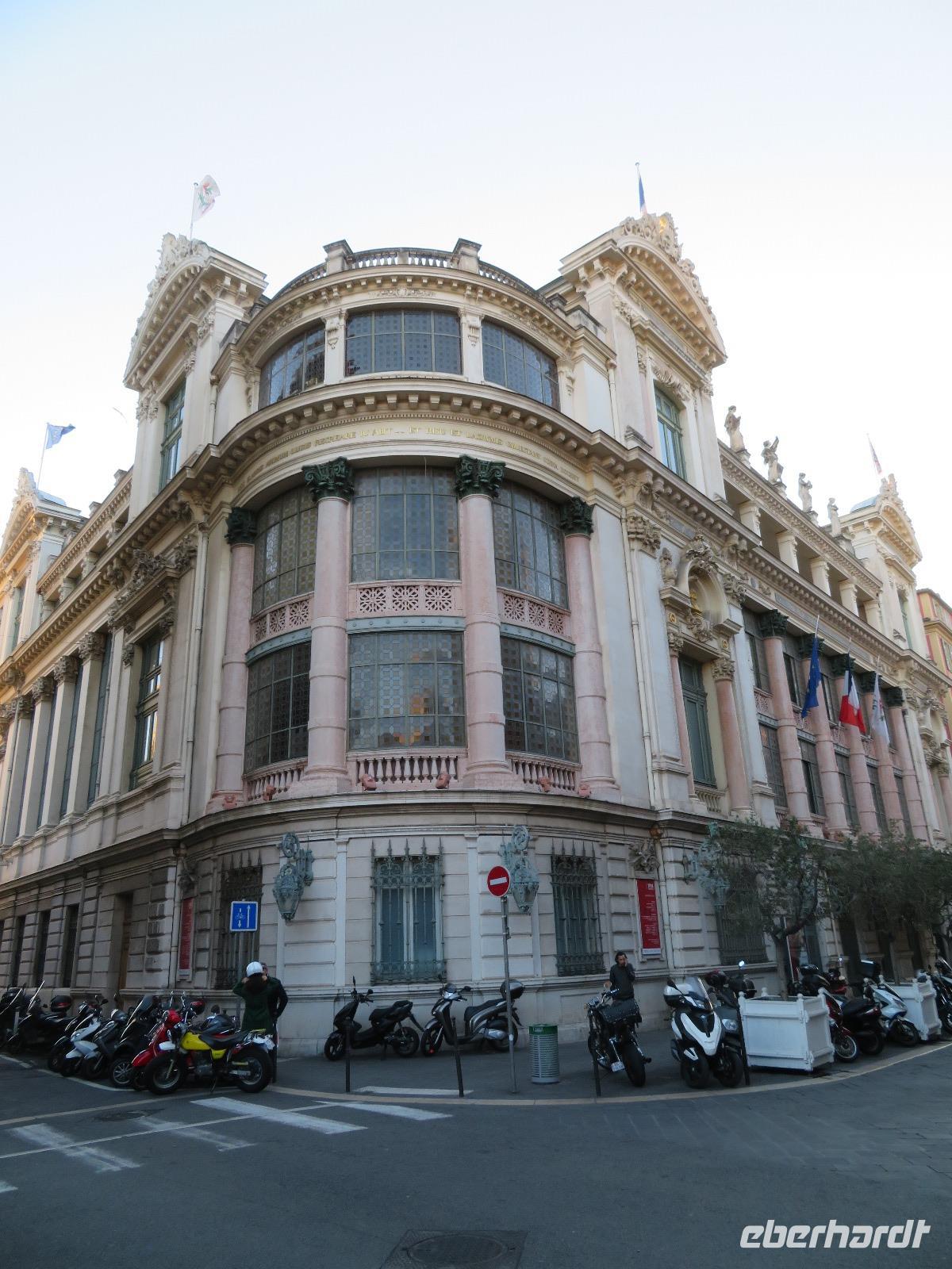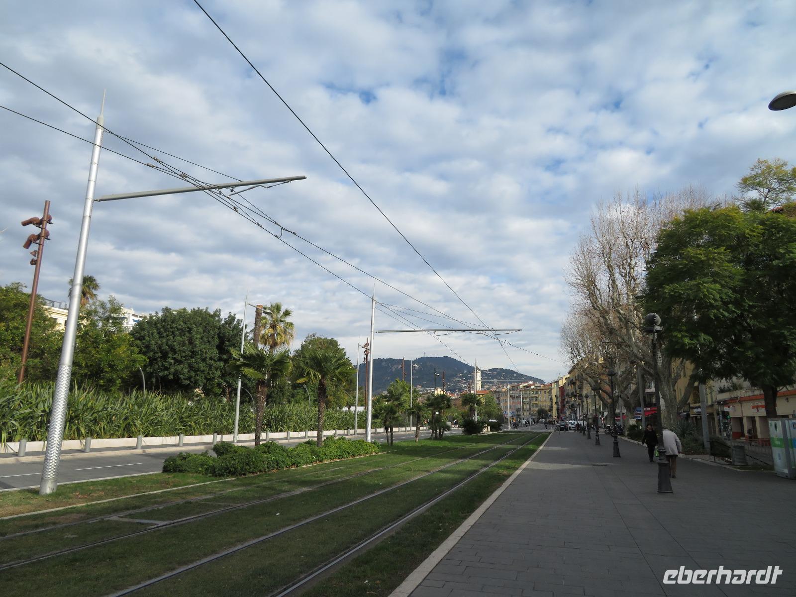 Nur ein kurzer Fußweg trennt unser Hotel von der Fußgängerzone „Rue Masséna", über welche wir in westlicher Richtung in wenigen Minuten das Herzstück der Stadt, „Place Masséna" erreichen. Herrschaftliche Gebäude des 17.Jahrhunderts mit Fassaden und malerischen Arkadenbögen in Rot und Ocker rahmen den wichtigsten und größten Platz Nizzas und tragen zum italienischen Flair der Stadt bei. Seit der Neugestaltung des Stadtraumes vor etwa zehn Jahren ist der Autoverkehr aus der Altstadt verbannt, eine hochmoderne Straßenbahn steht als preiswertes Transportmittel zur Verfügung und an allen Haltestellen bereichert moderne Kunst den Stadtraum. Am schönsten finde ich persönlich die Installation „Conversation à Nice" vom katalanischen Künstler Jaume Plensa: Sieben in wechselnden Farben beleuchtete Skulpturen auf zehn Meter hohen Masten stellen die sieben Kontinente dar.