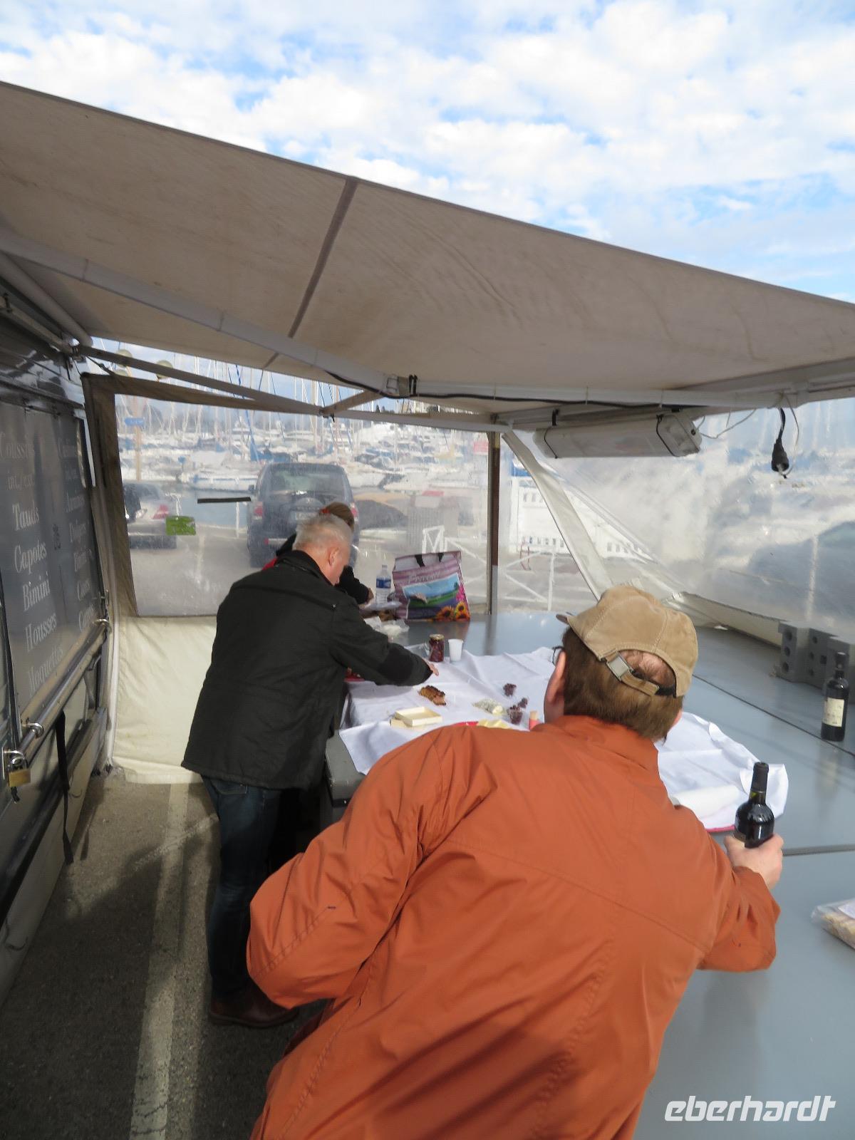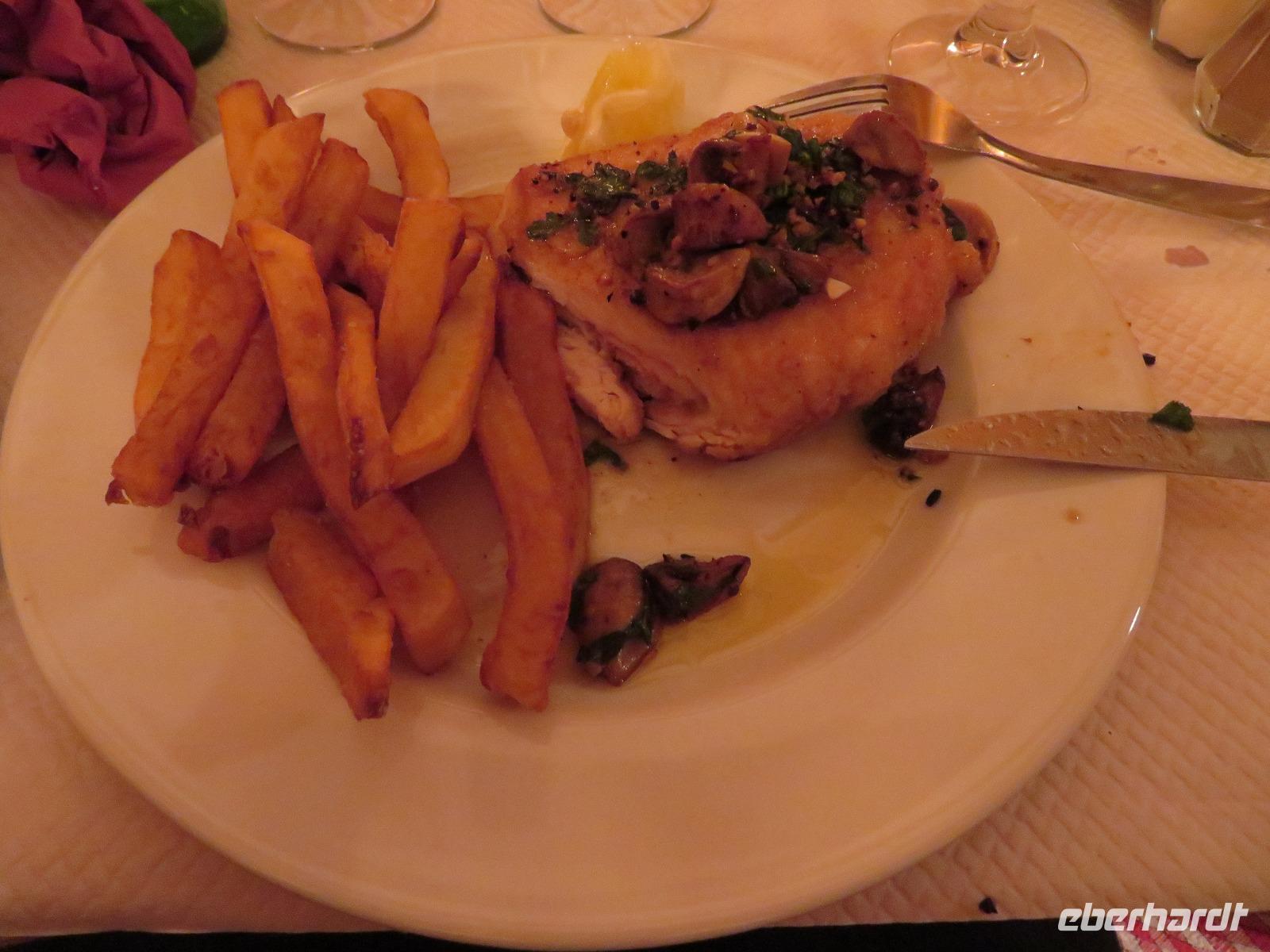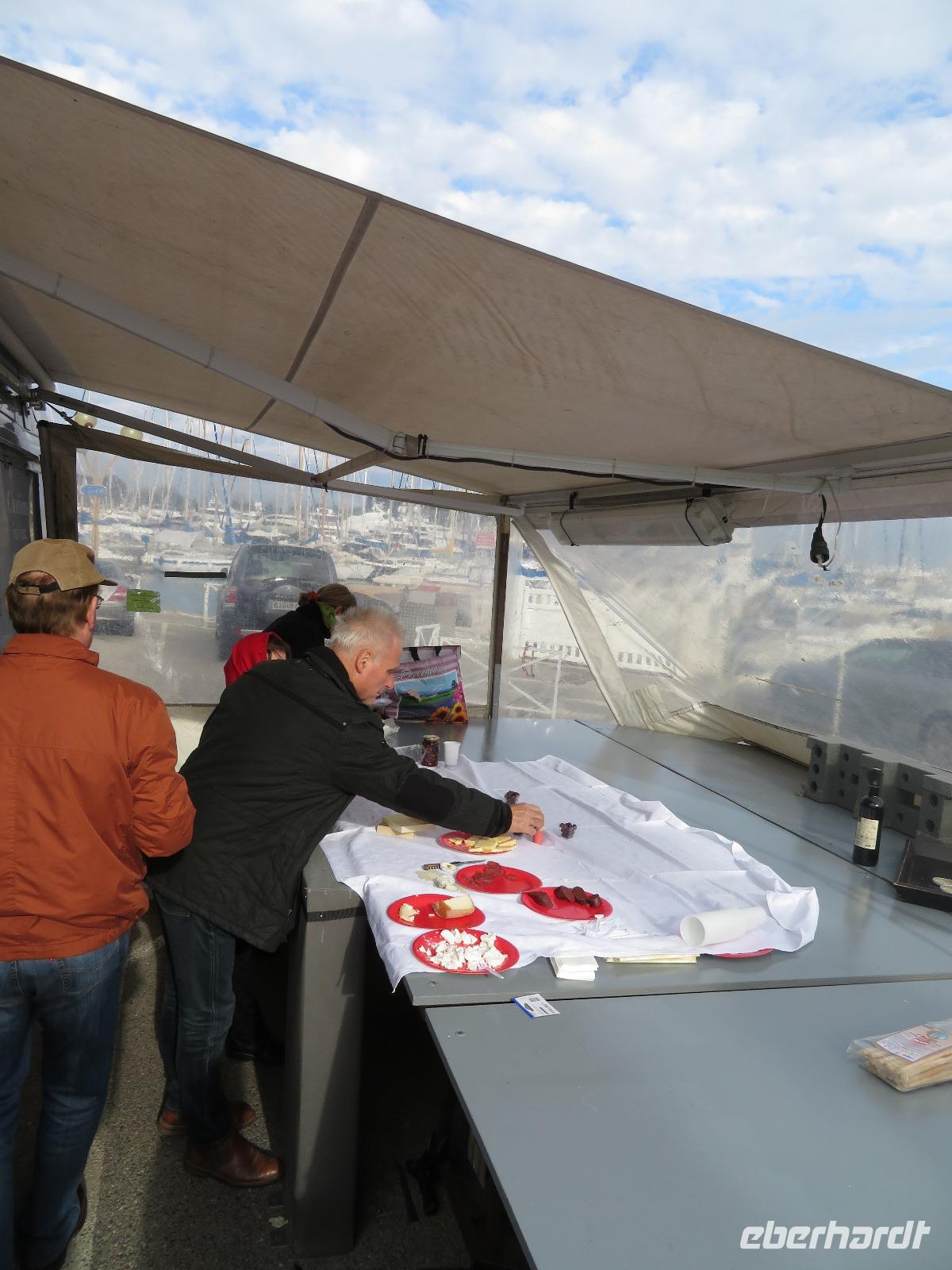 Das erste Abendessen wird uns in dem kleinen Restaurant „Davia" gleich neben dem Hotel serviert und wer möchte, kann einen ersten Eindruck von der regionalen Küche bekommen. Gefüllte Sardinen, Daube Niçoise (geschmortes Rindfleisch), Fischsuppe, ... Auf der Speisekarte stehen aber für alle, die sich lieber langsam herantasten wollen, auch vertraute Gerichte: paniertes Schnitzel nach Mailänder Art, Cordon Bleu und Zwiebelsuppe!