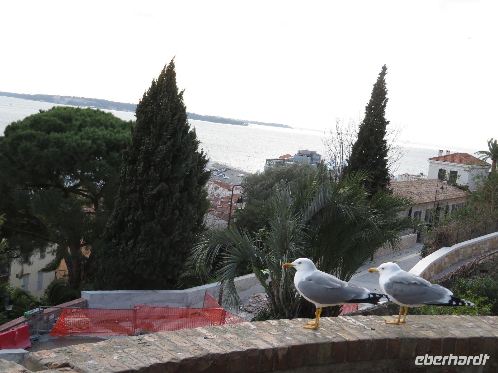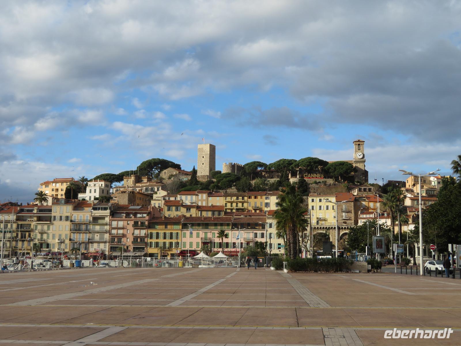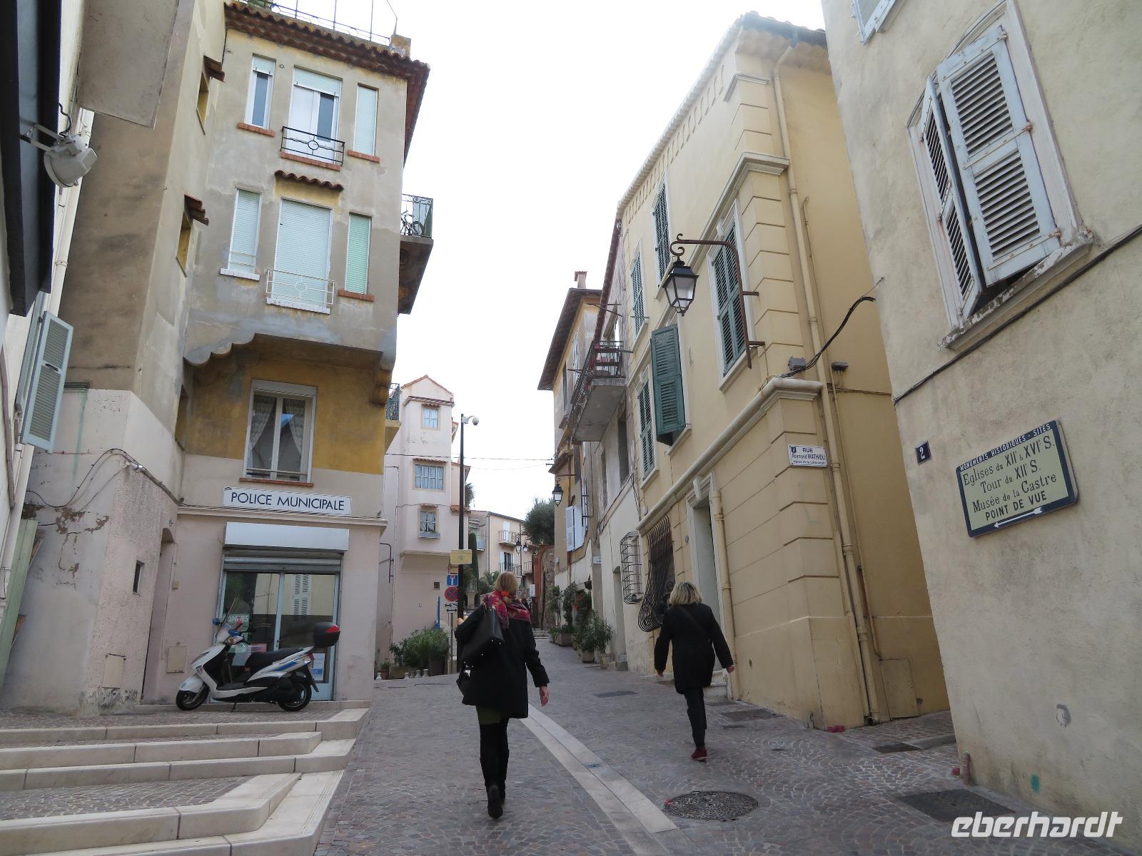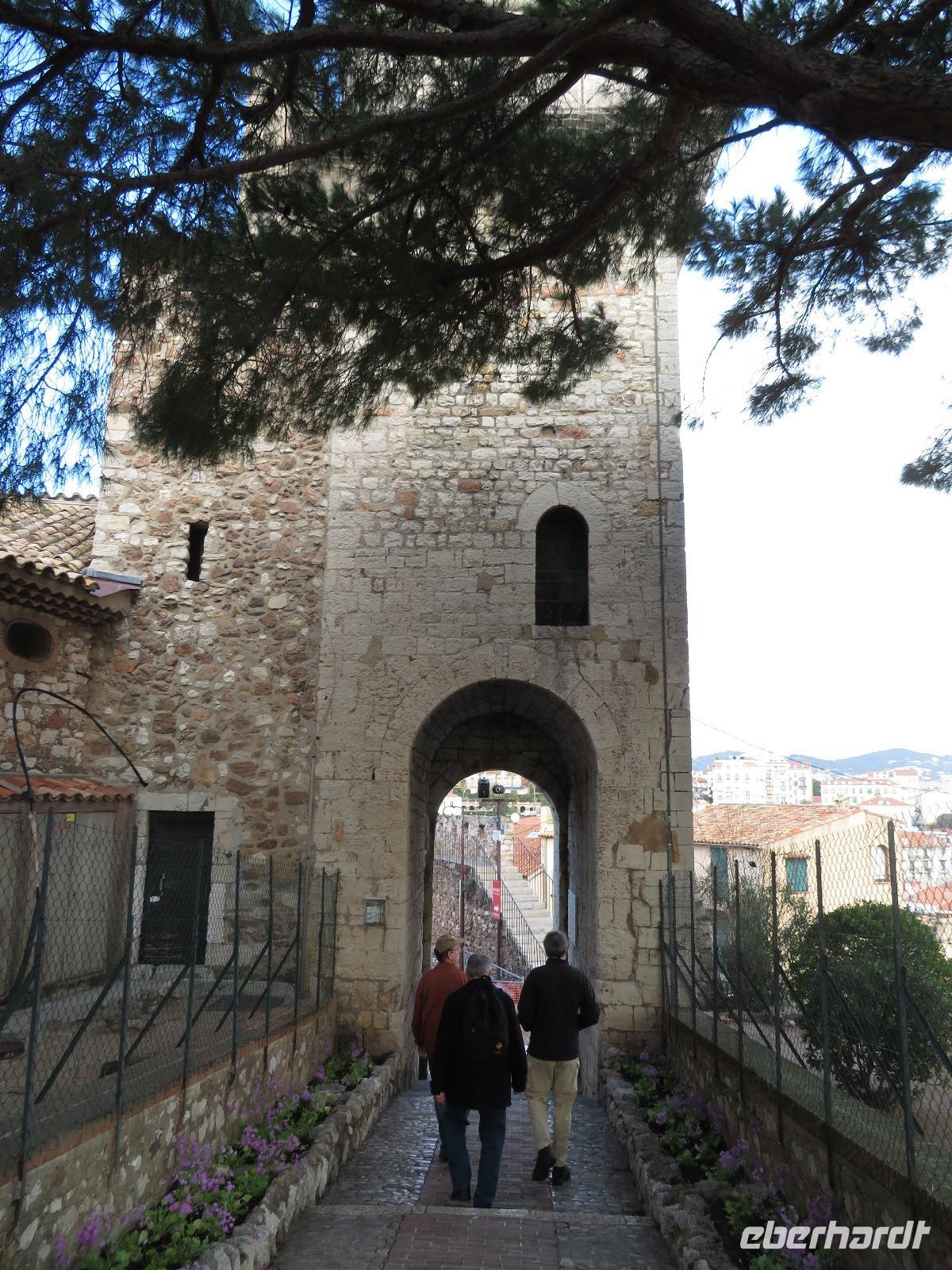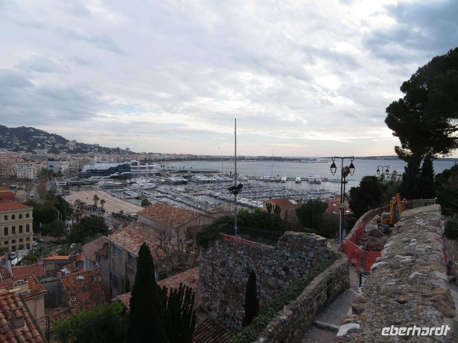 Nun geht es steile Straßen hinauf in das Altstadtviertel „Le Suquet", auf den „Mont Chevalier". Von dort würden wir gerne länger den phantastischen Ausblick auf Cannes und den weiten „Golfe de Napoule" genießen, aber der nächste Programmpunkt wartet bereits: