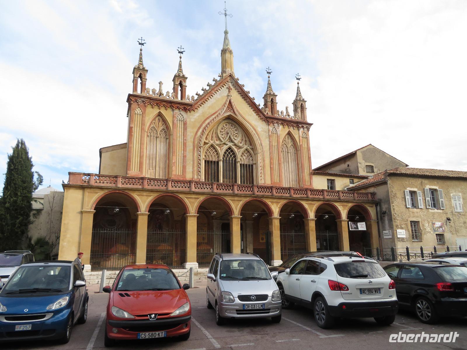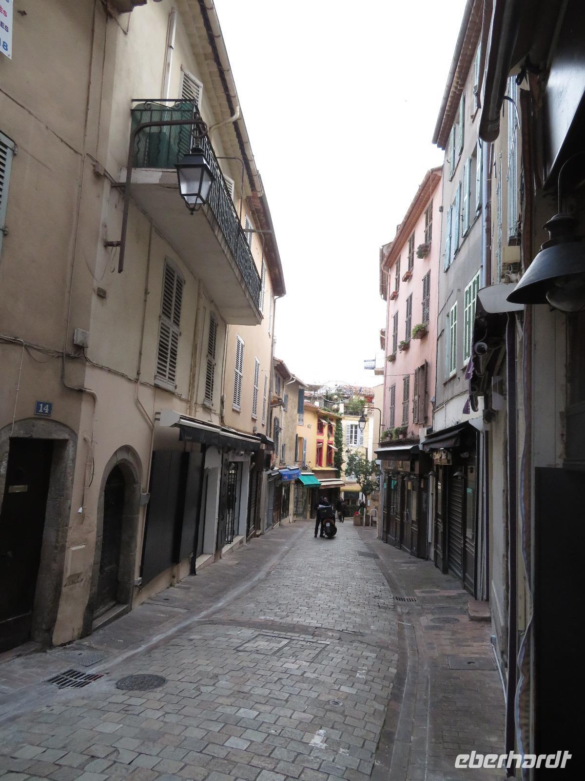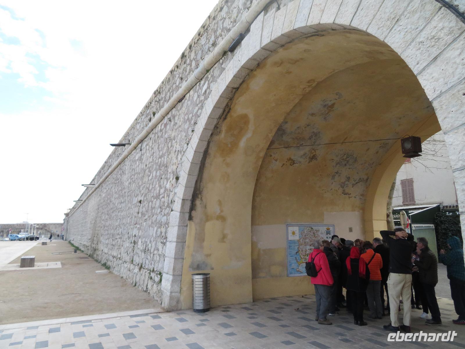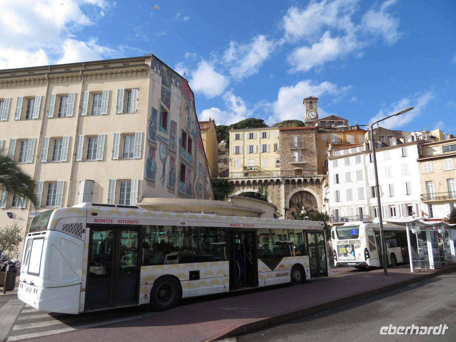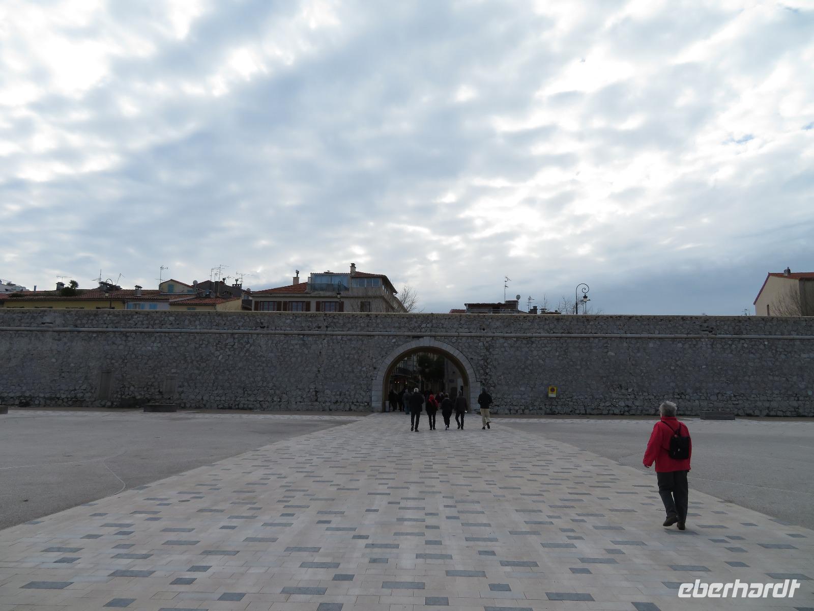 Nun geht es steile Straßen hinauf in das Altstadtviertel „Le Suquet", auf den „Mont Chevalier". Von dort würden wir gerne länger den phantastischen Ausblick auf Cannes und den weiten „Golfe de Napoule" genießen, aber der nächste Programmpunkt wartet bereits: