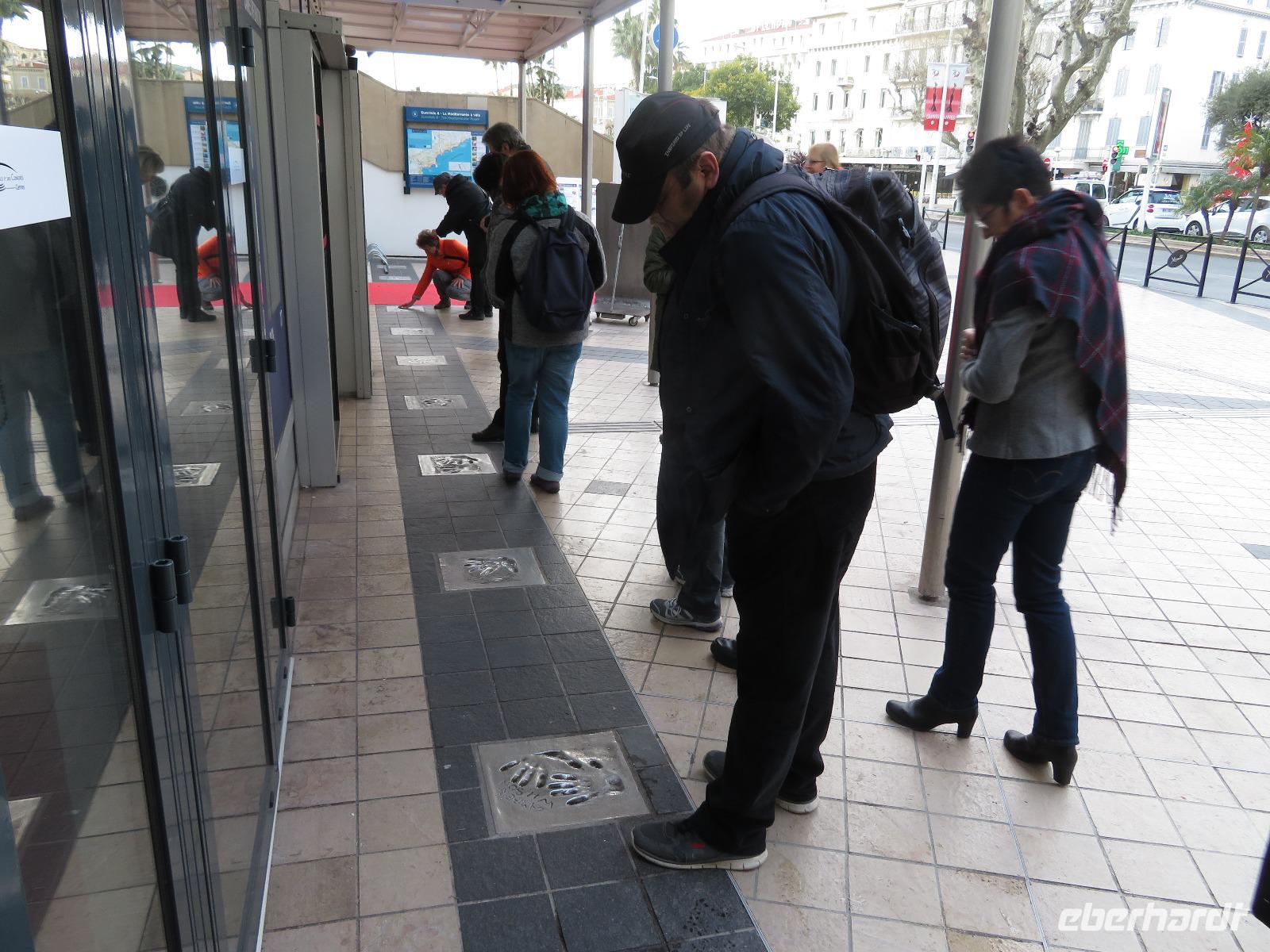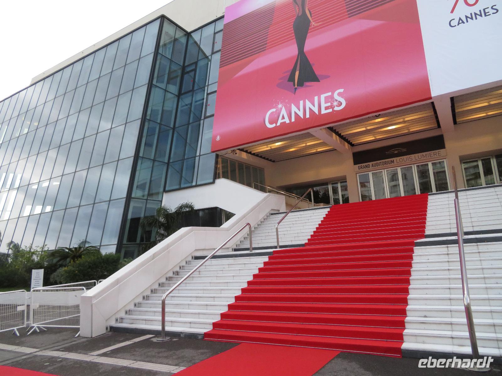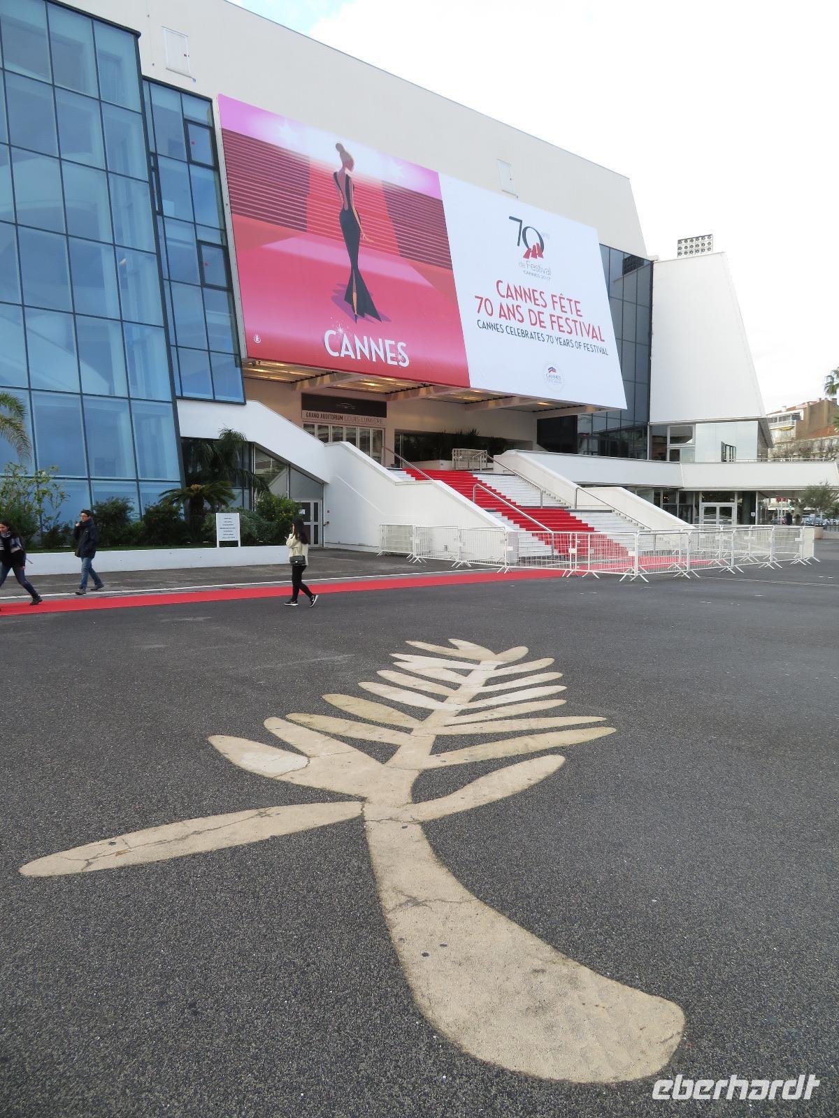 Der berühmte Filmpalast von Cannes ist seit den 80er Jahren ein moderner Zweckbau, welcher unter anderem ein Casino und ein Kongresszentrum beherbergt. Aber der Rote Teppich ist noch „ganz der Alte"! Über dreihundert Handabdrücke bekannter Schauspieler, wie zum Beispiel Claudia Cardinale, Cathérine Deneuve und Angelina Jolie sollen die Präsenz der Schauspieler auch außerhalb der Festspielzeit (von Ende bis Anfang Mai des Folgejahres!) gewährleisten.